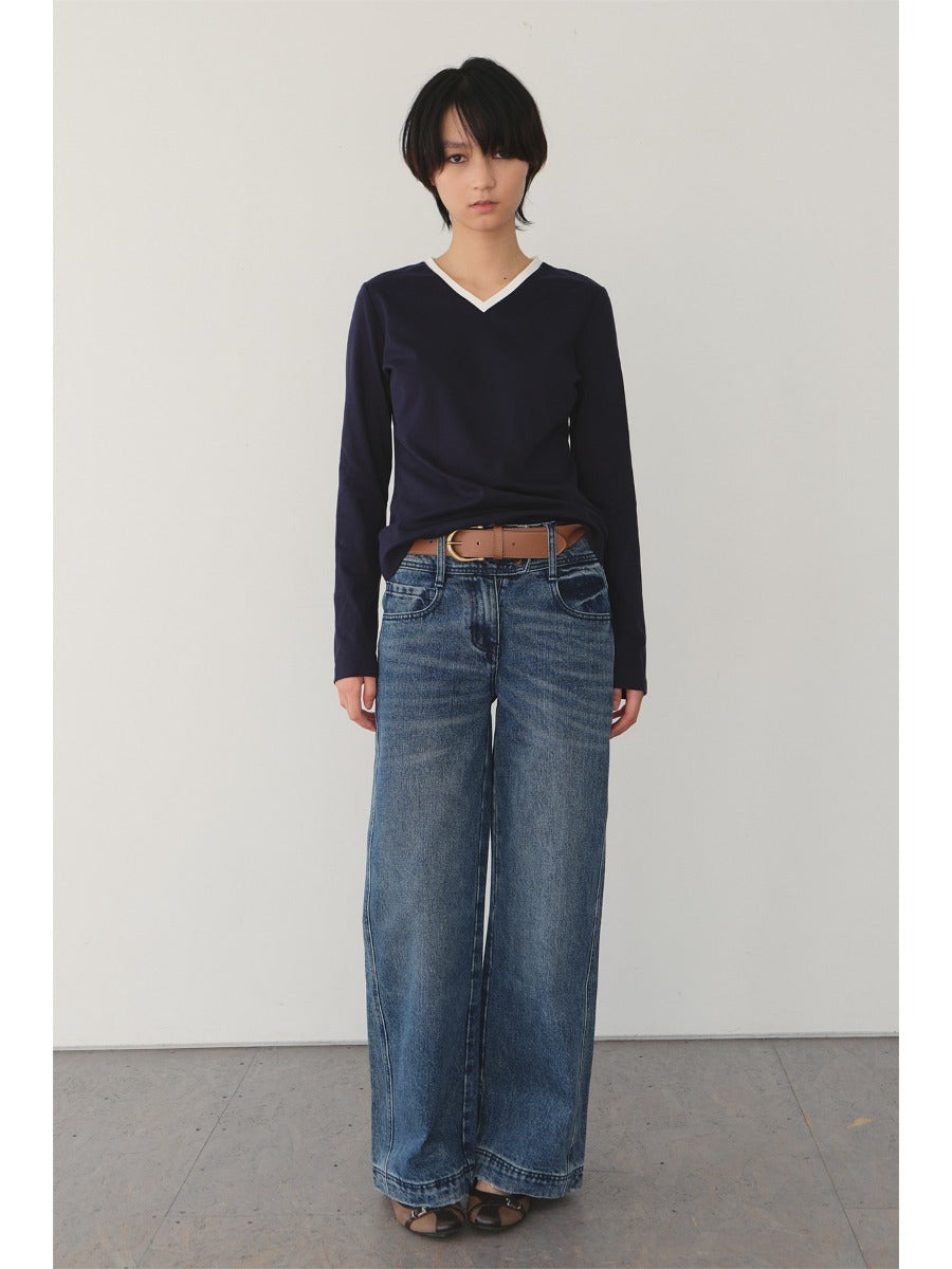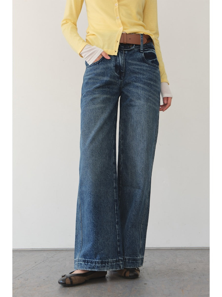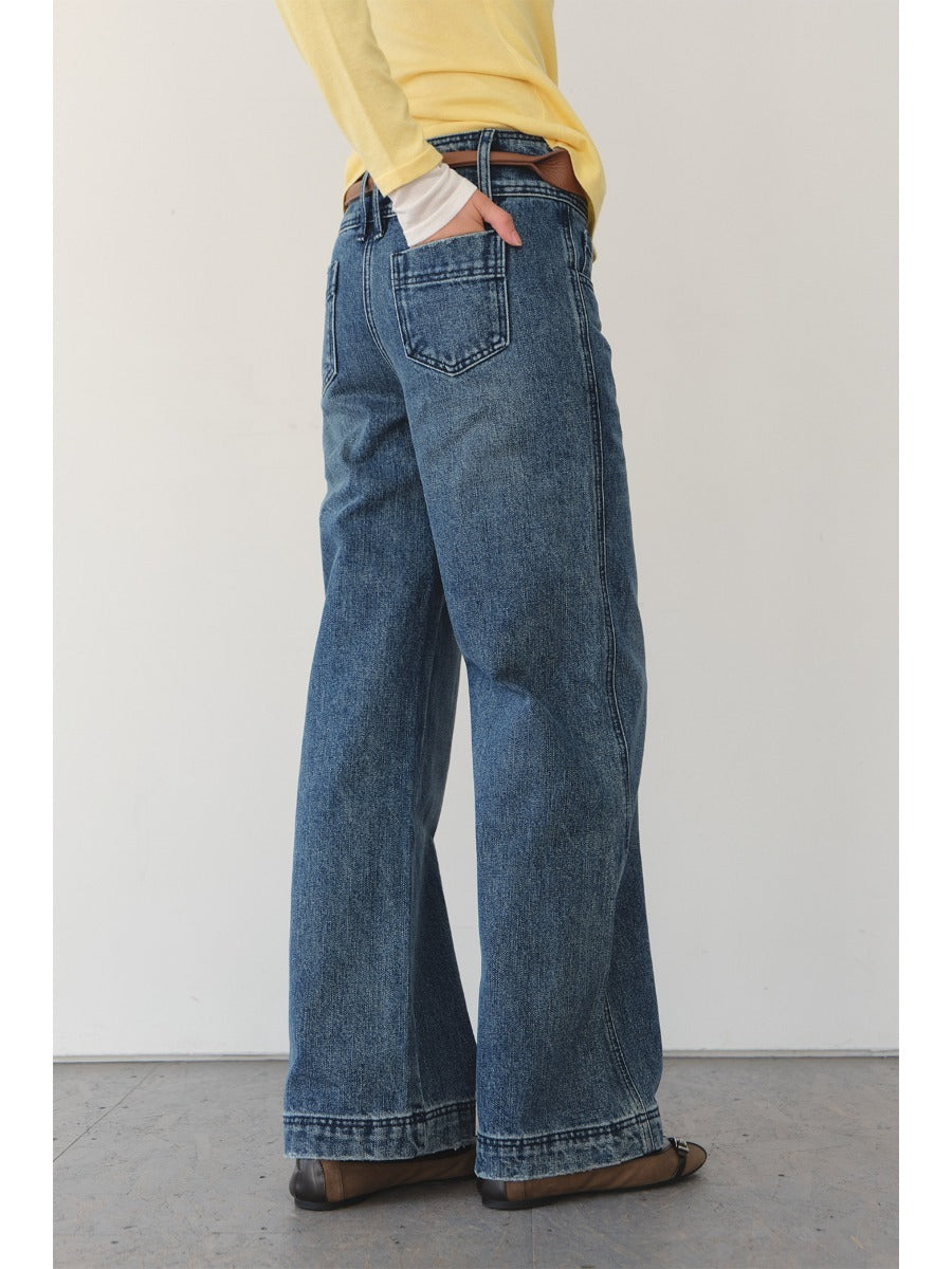 Blue Low-rise Straight Leg Jeans with Belt「NEW」