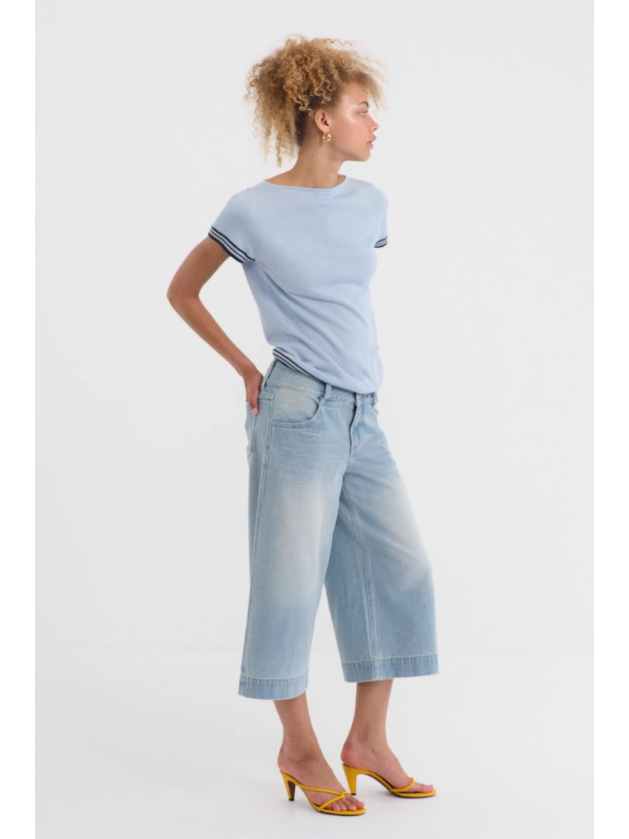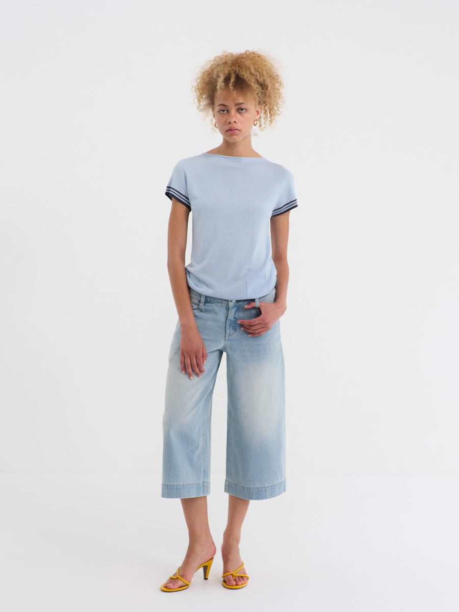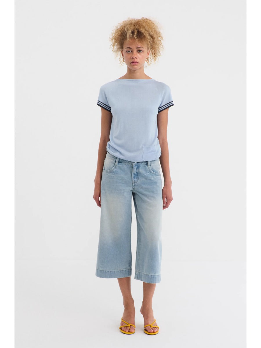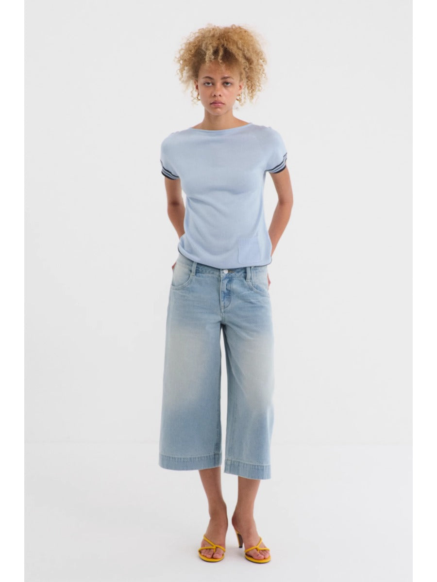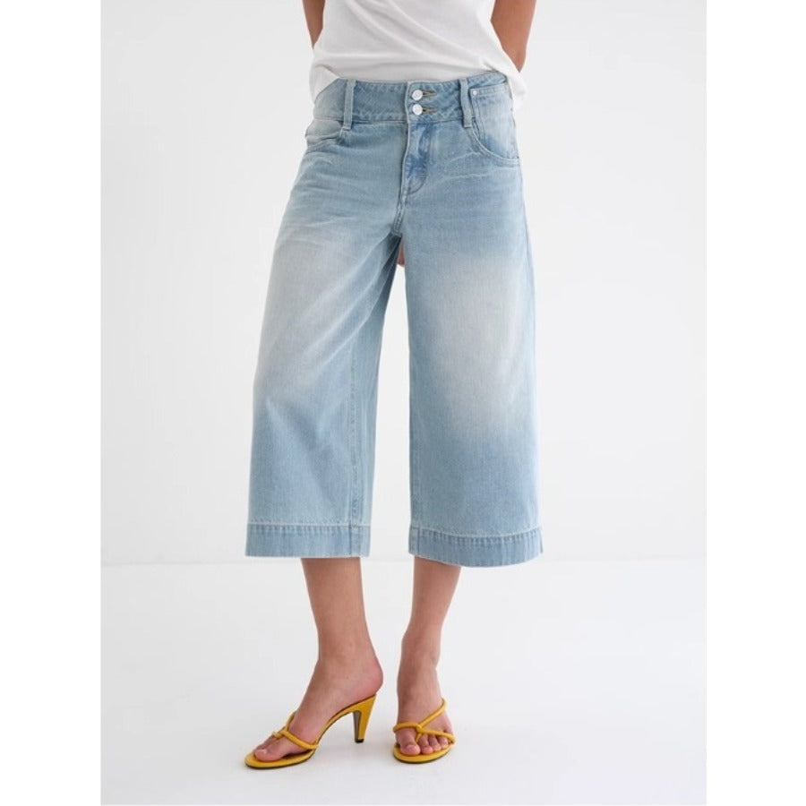 Blue Mid-rise Cropped Straight-leg Jeans
