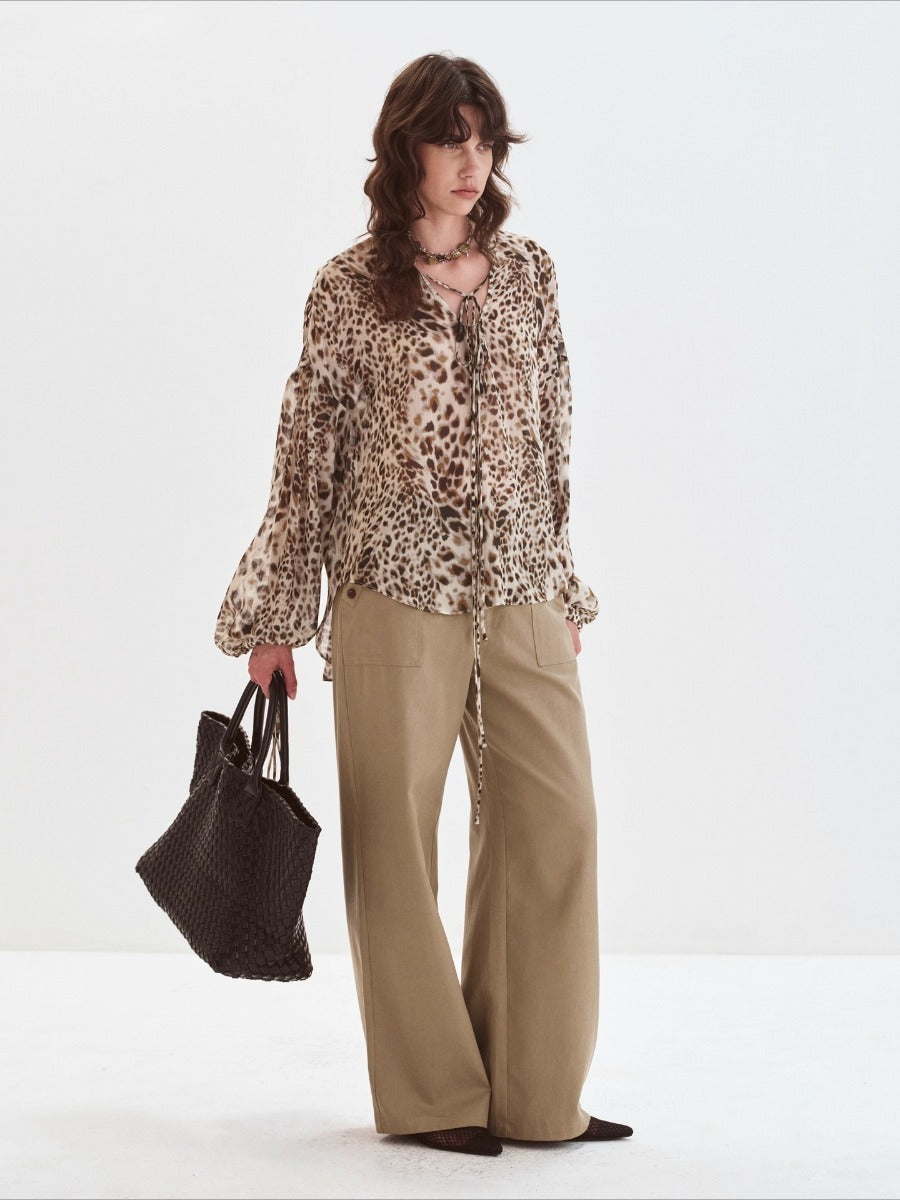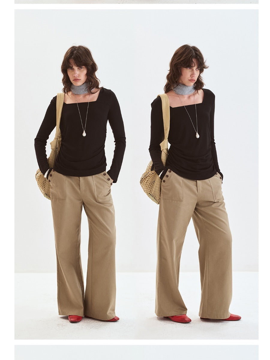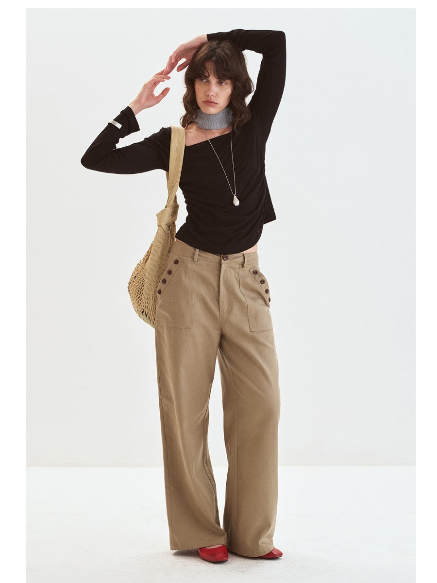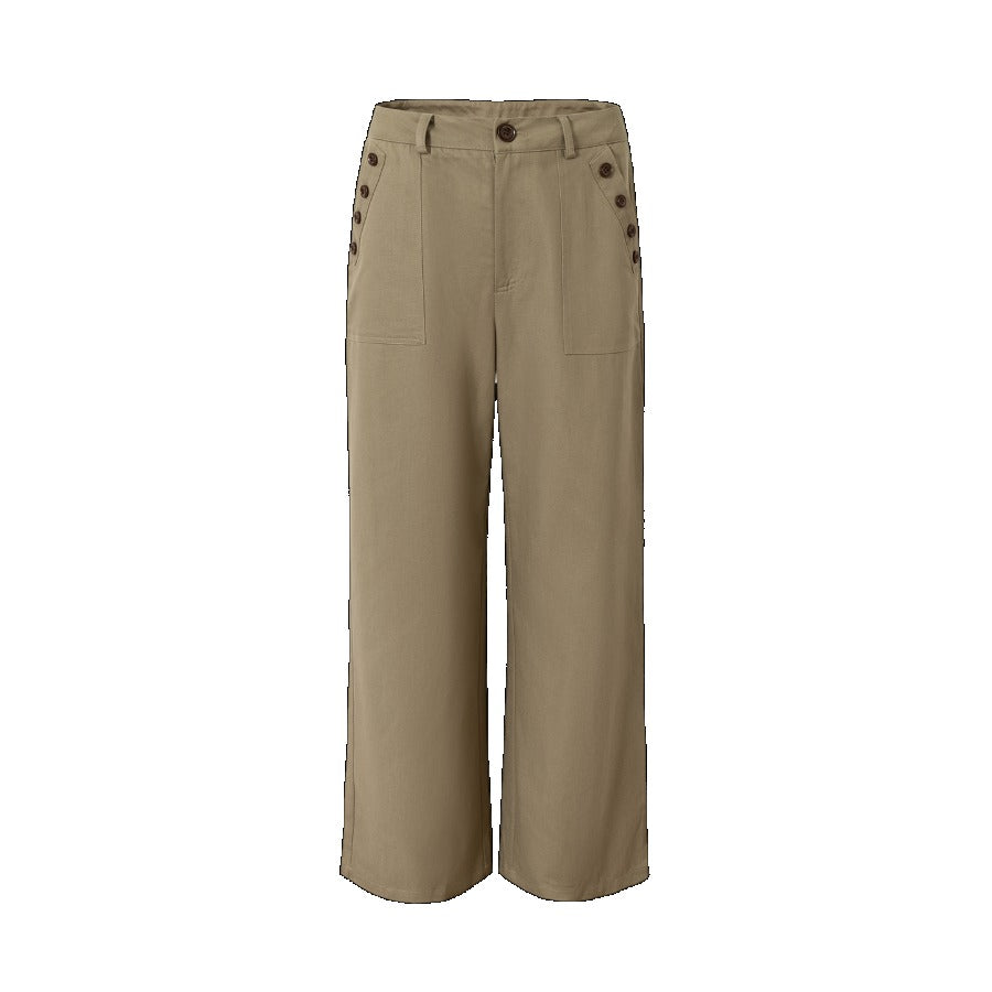 Button-up Tencel Straight Wide-Leg Pants「NEW」