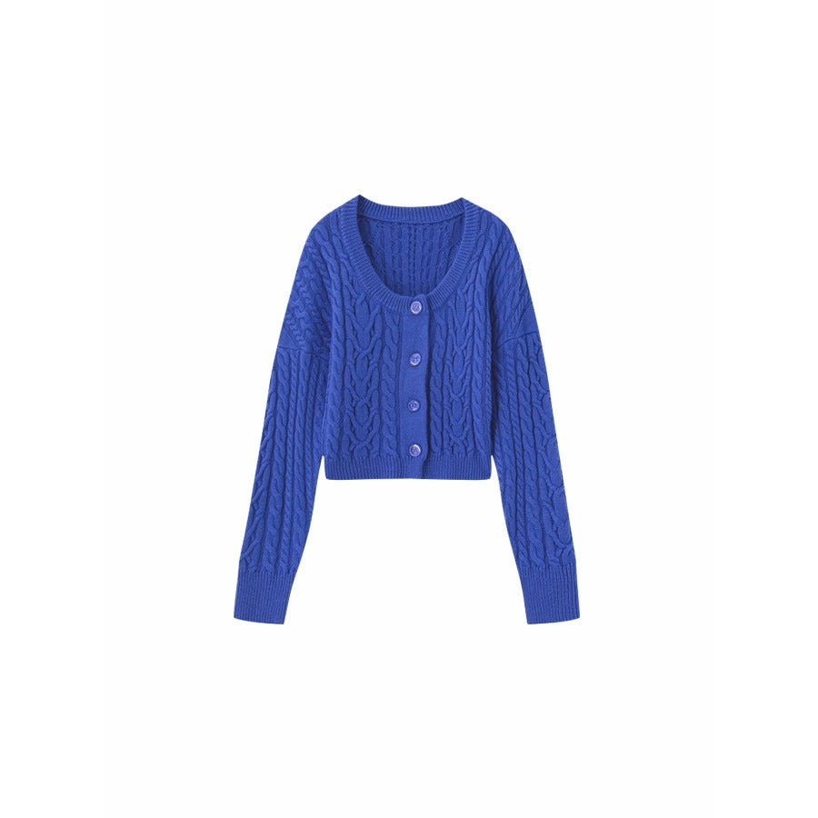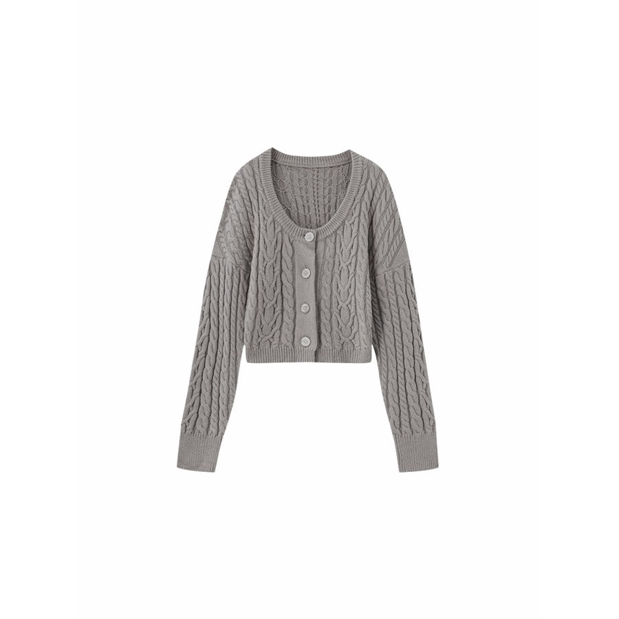 Crew Neck Twisted Knitted Cardigan「NEW」