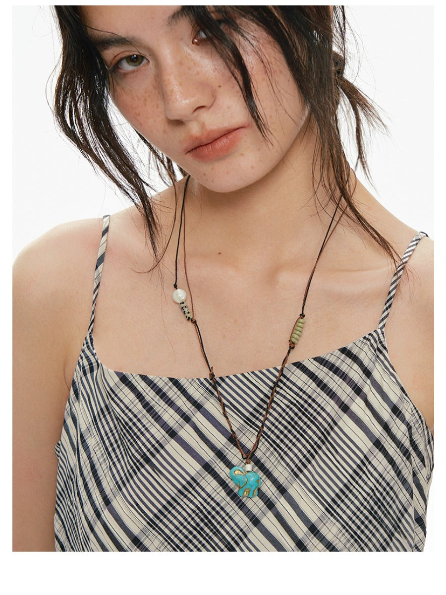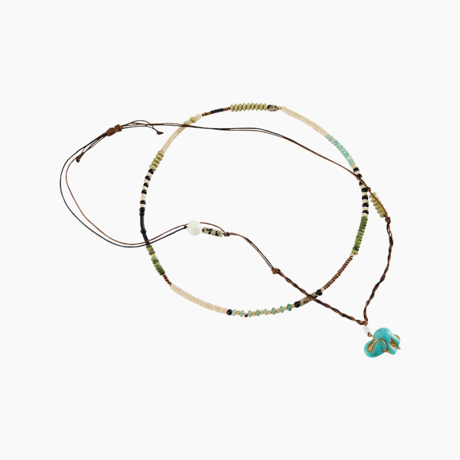 Material:Natural stone/Czech glass beads/Copper blocks/Wax thread