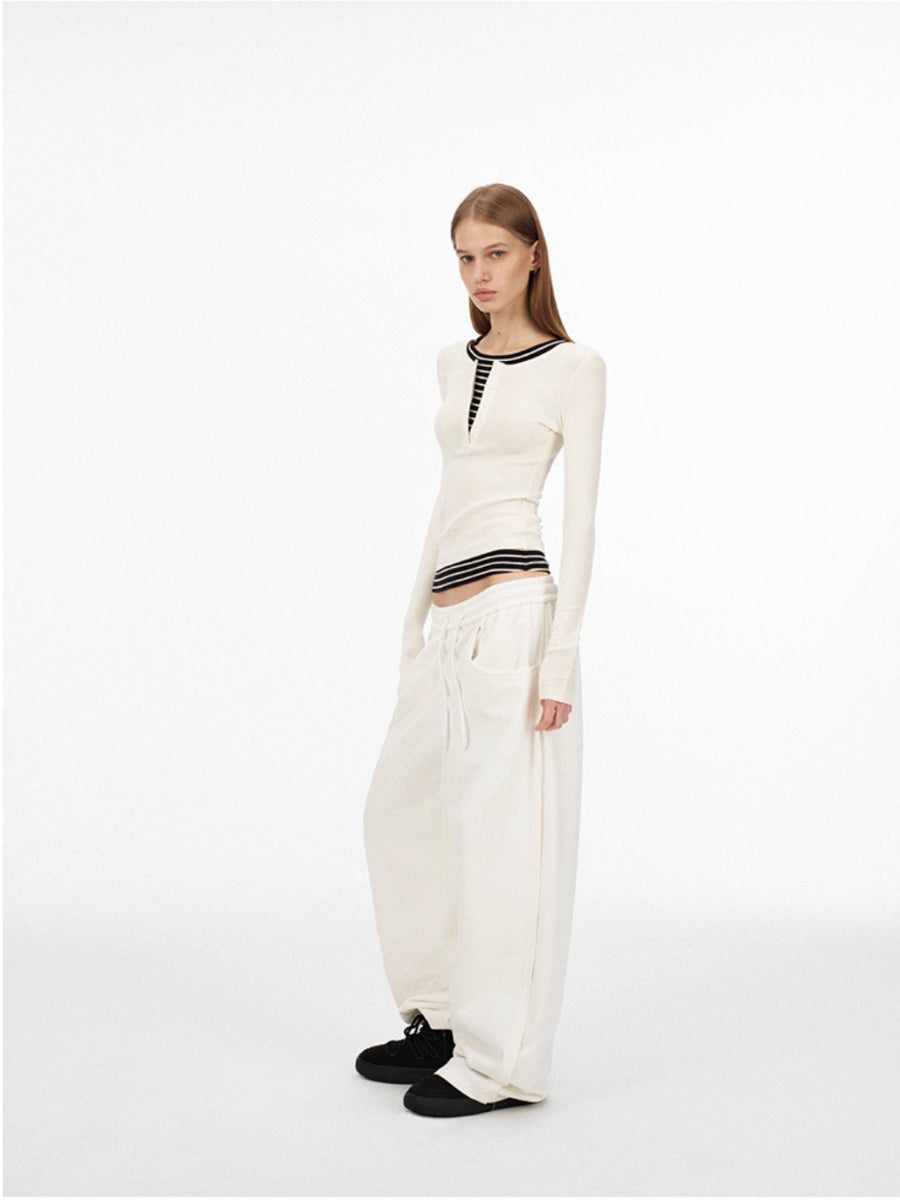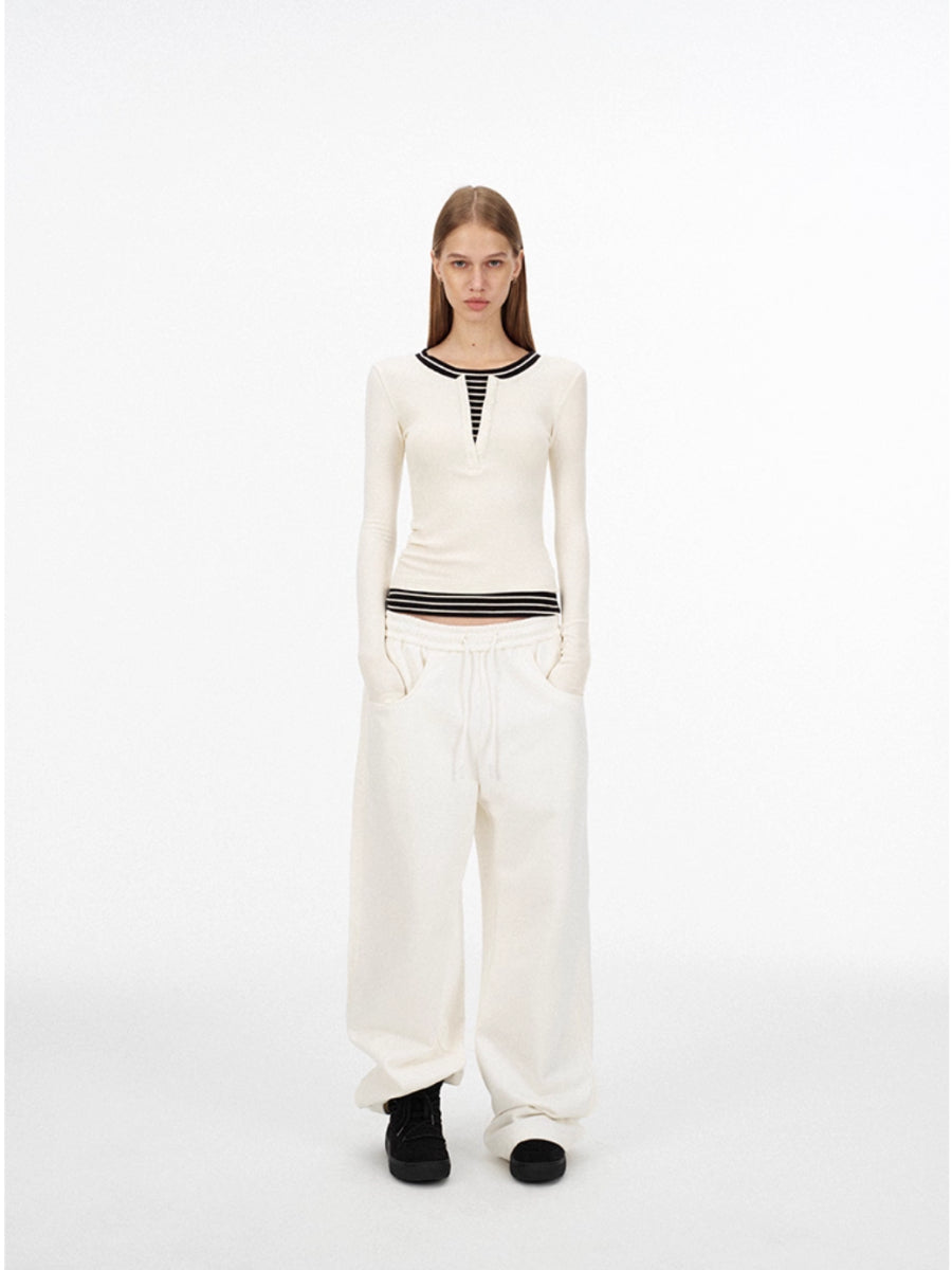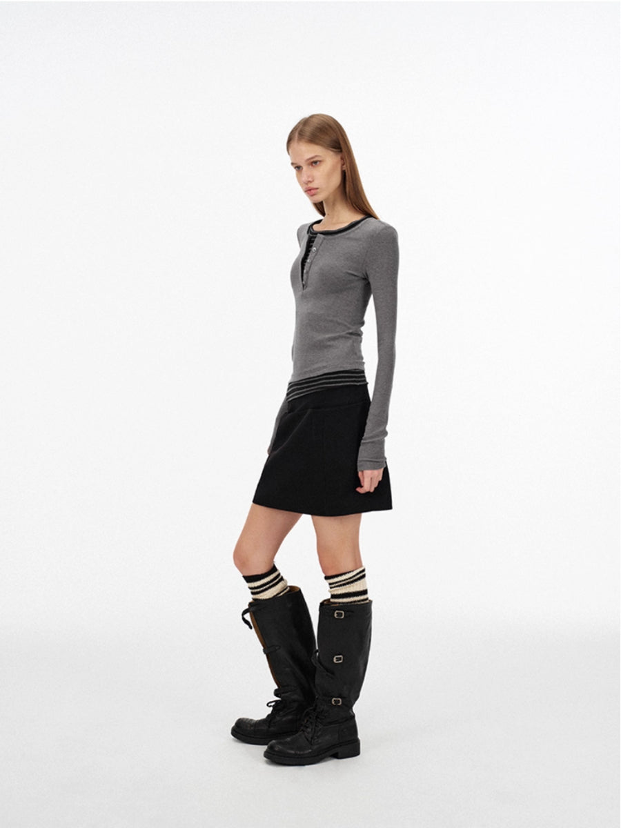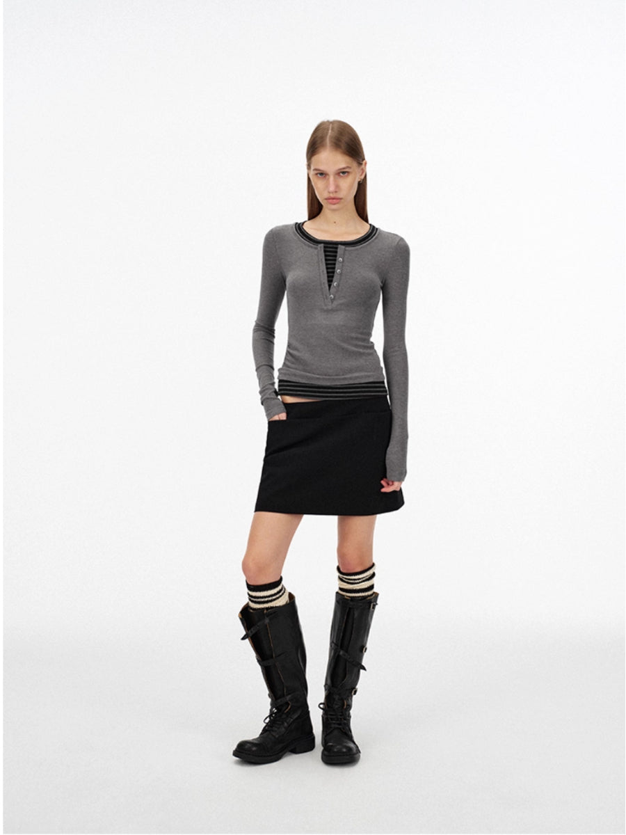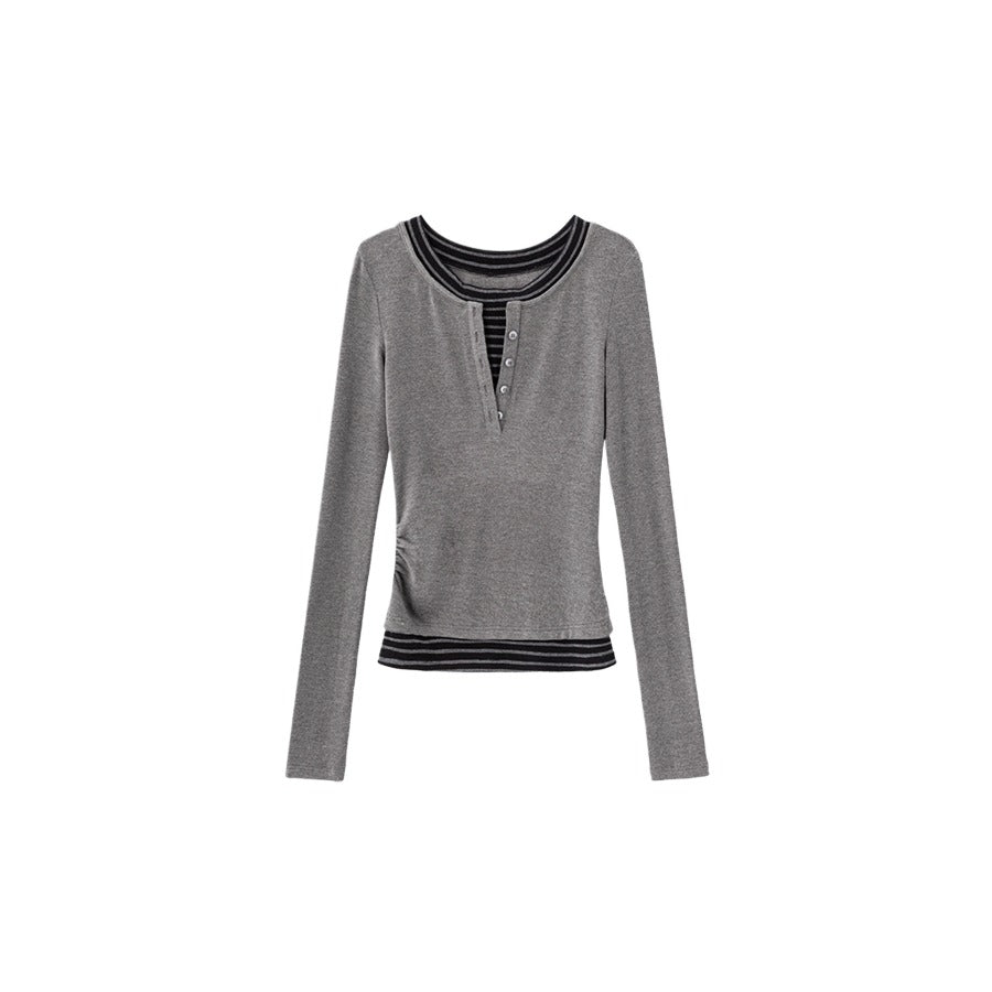 Fake Two-piece Henley Collar Long-sleeved Top「NEW」