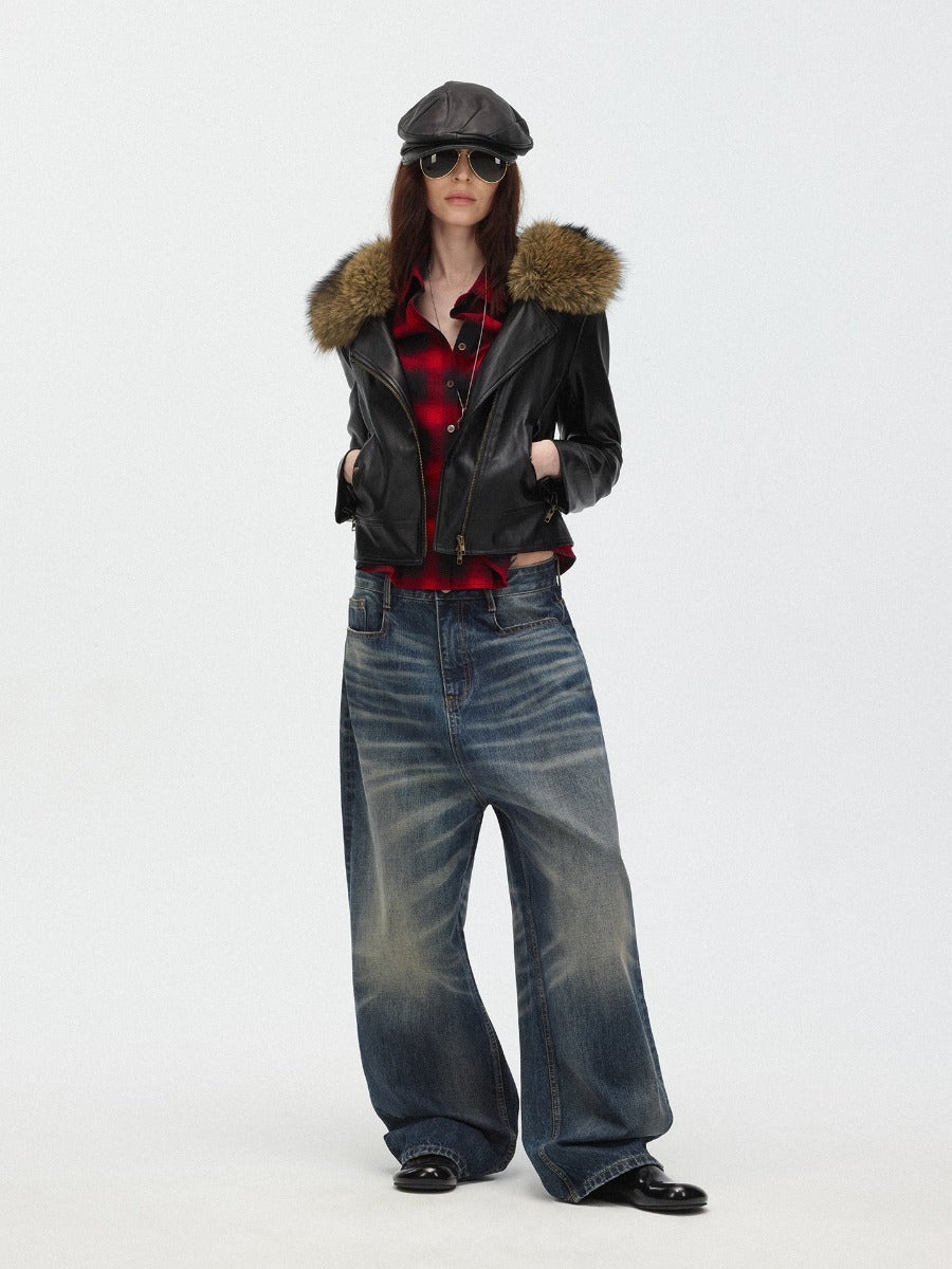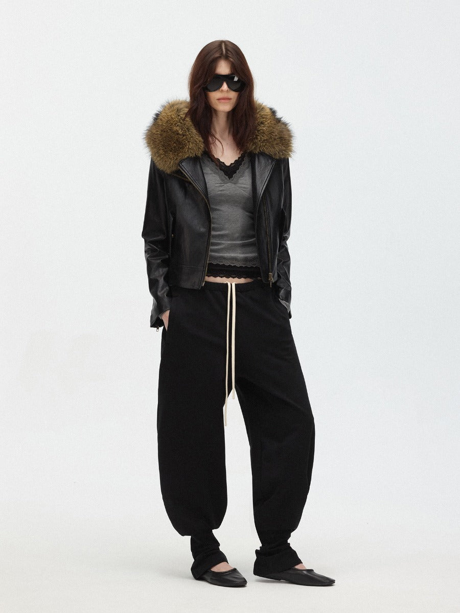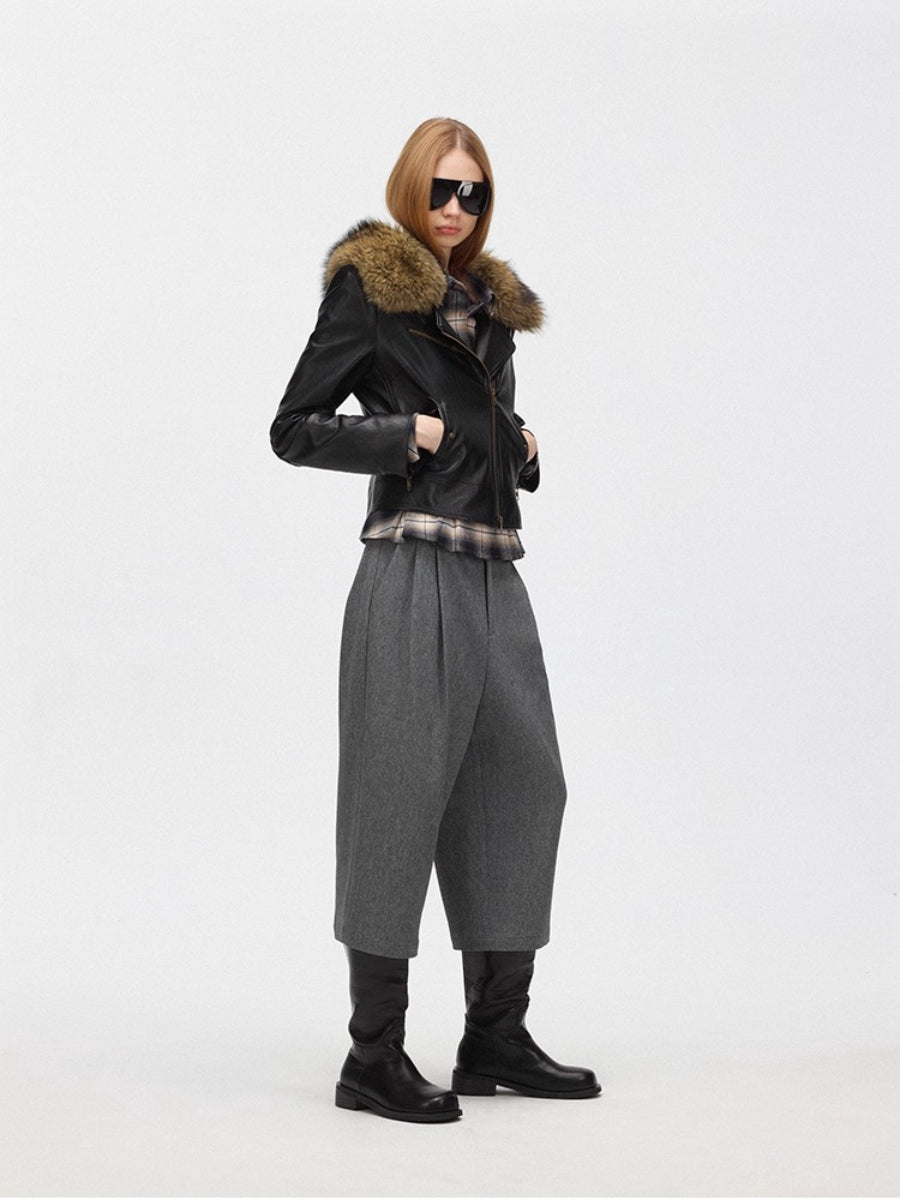 Faux Fur Hooded Slim Fit Moto Leather Jacket