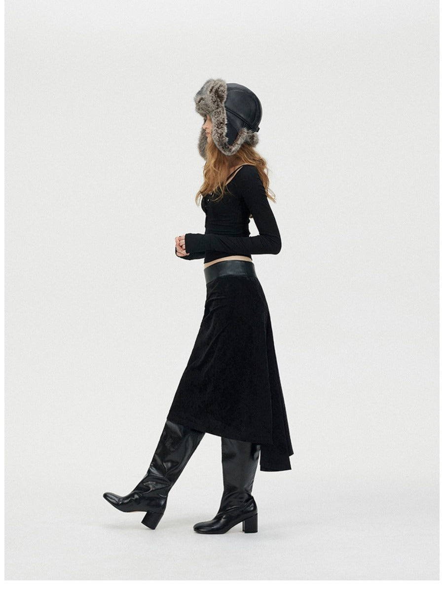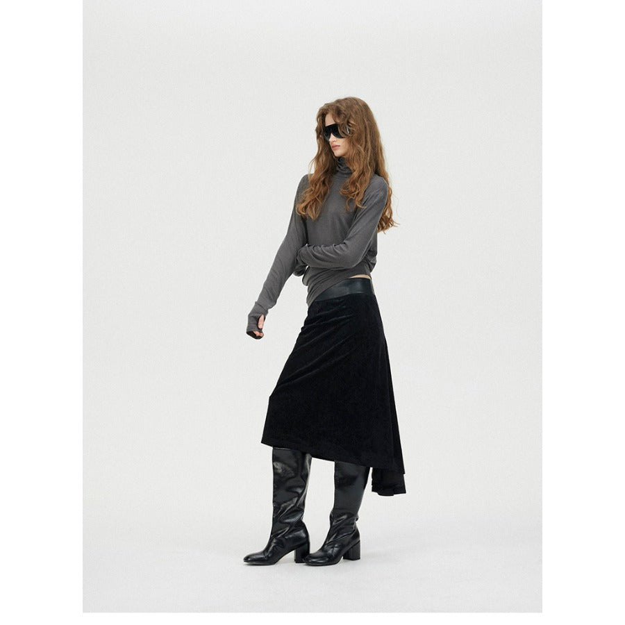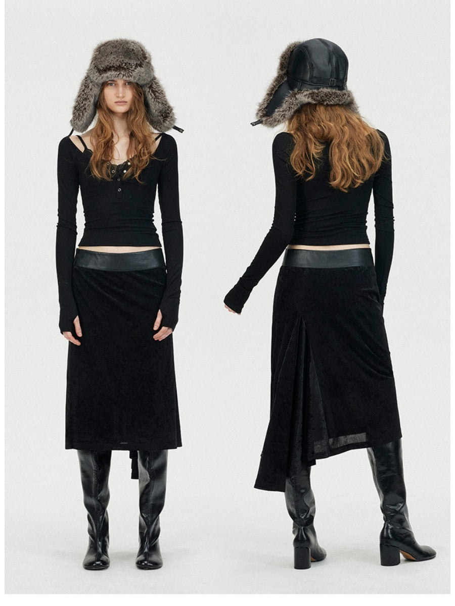 Fishtail Velvet Midi Skirt with Leather Waistband「NEW」