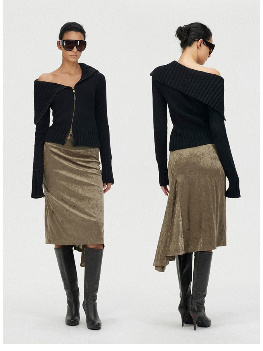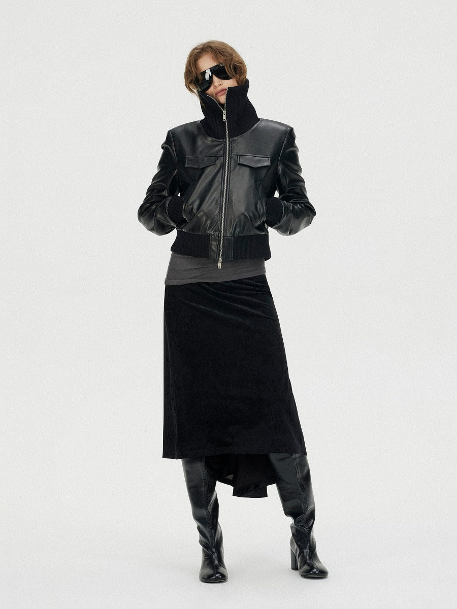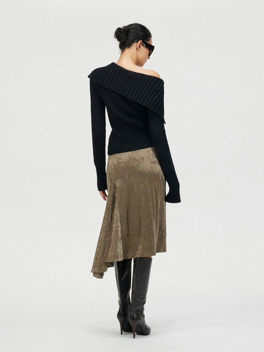 Fishtail Velvet Midi Skirt with Leather Waistband「NEW」