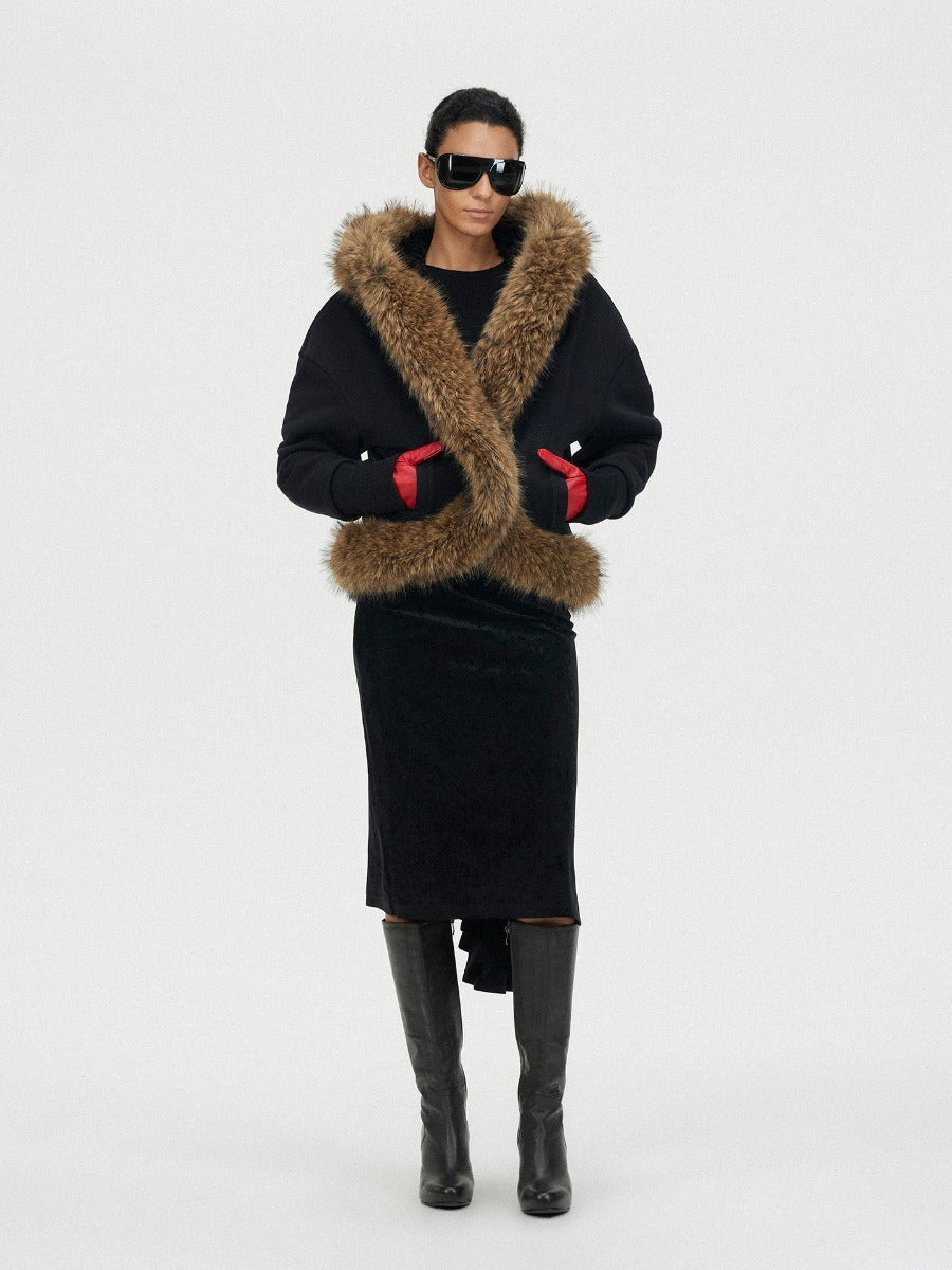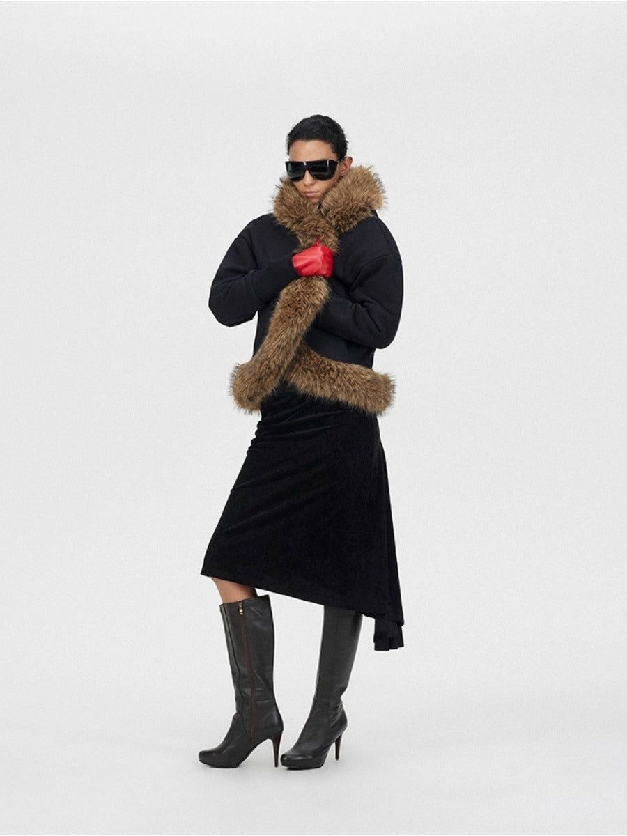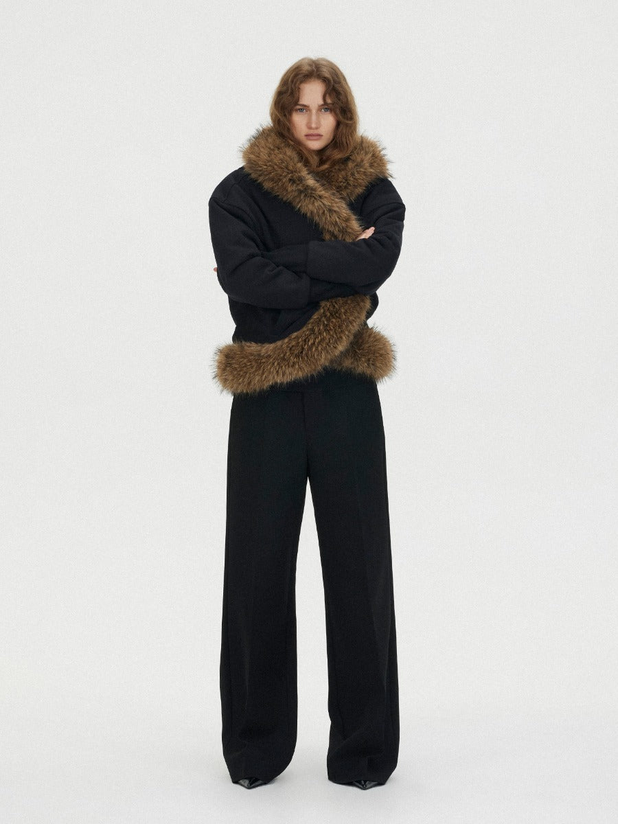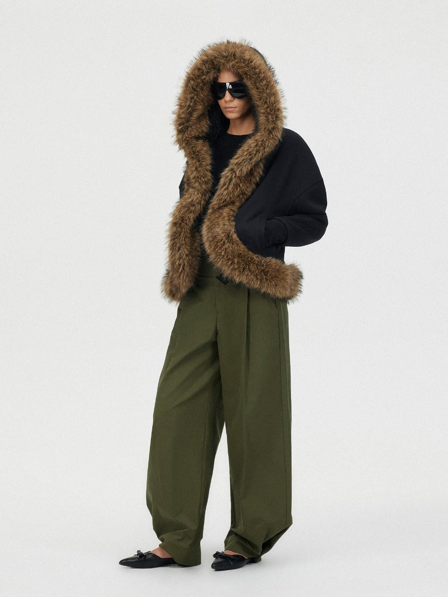 Hooded Cotton-padded Jacket with Fur Collar「NEW」