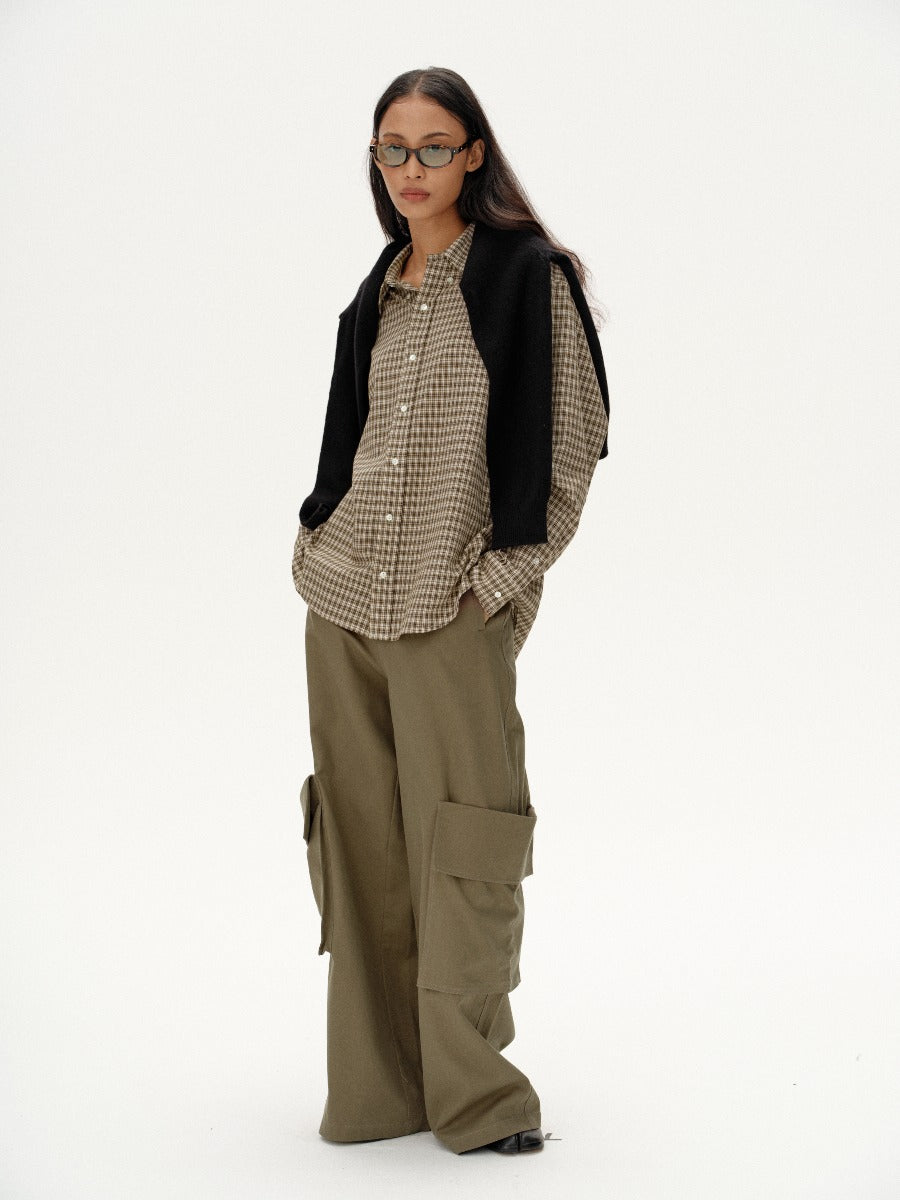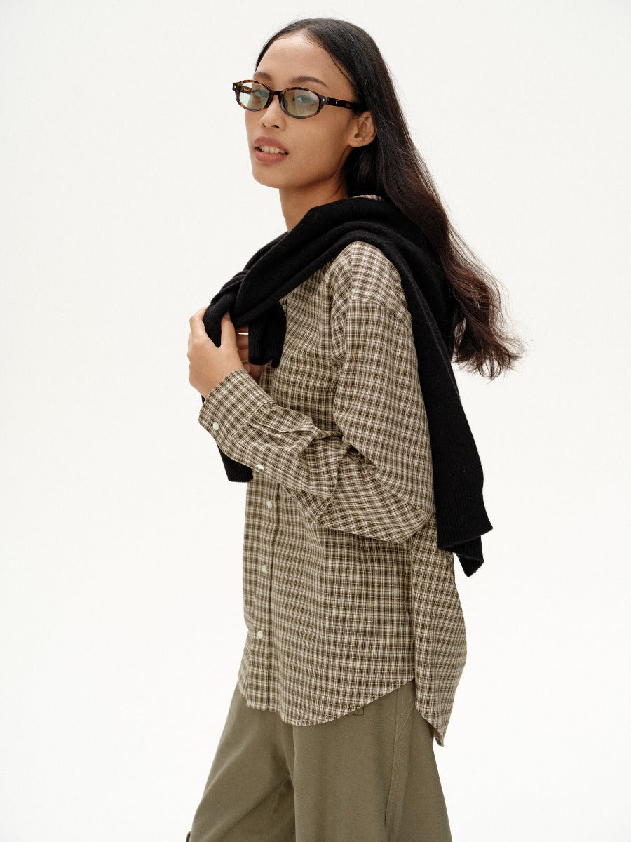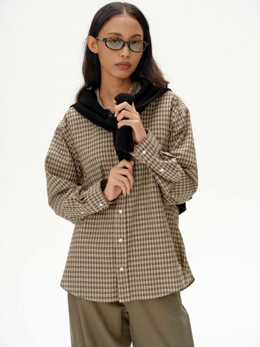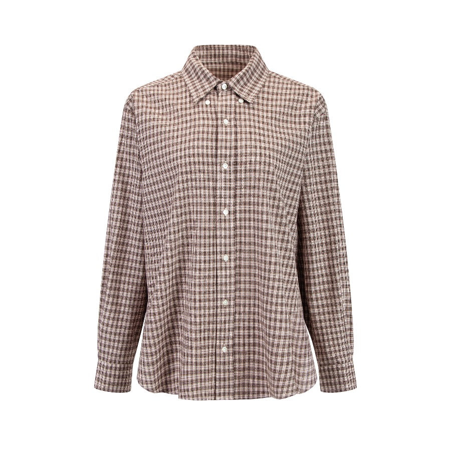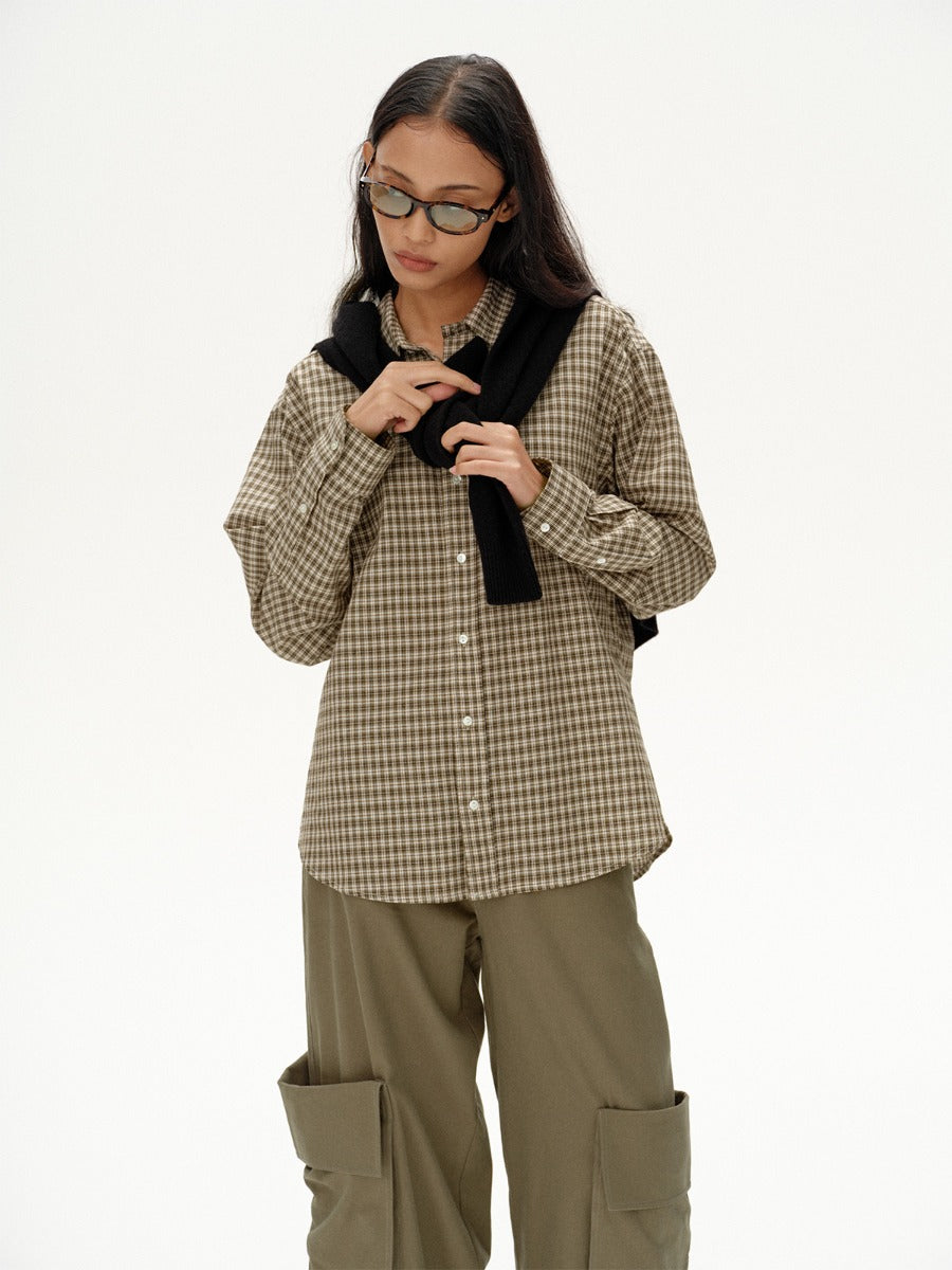 Khaki Brown Lapel Plaid Shirt「NEW」