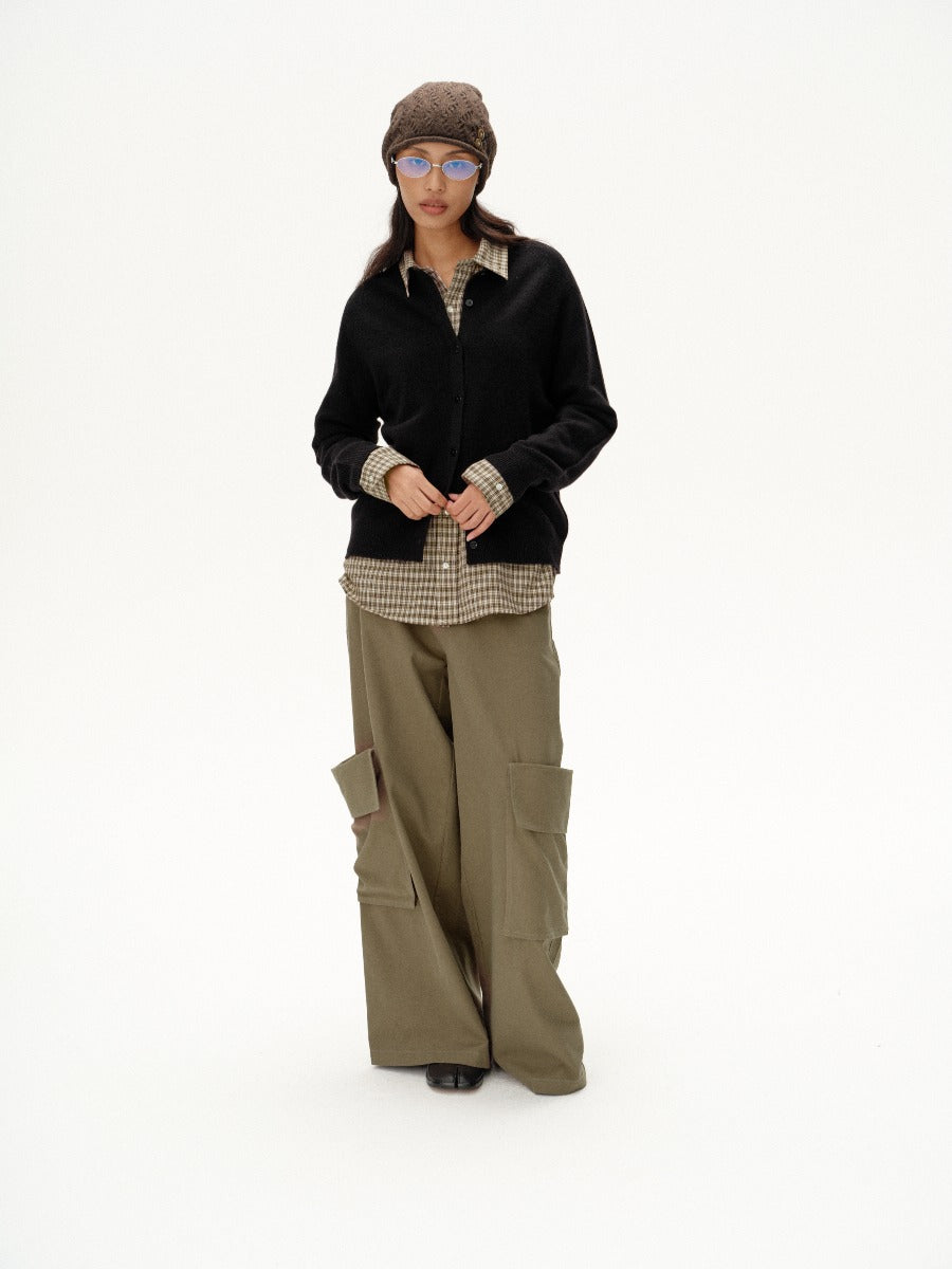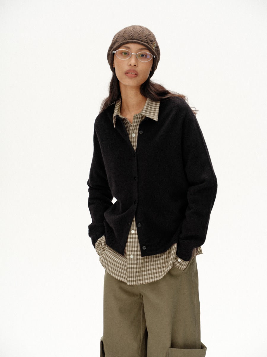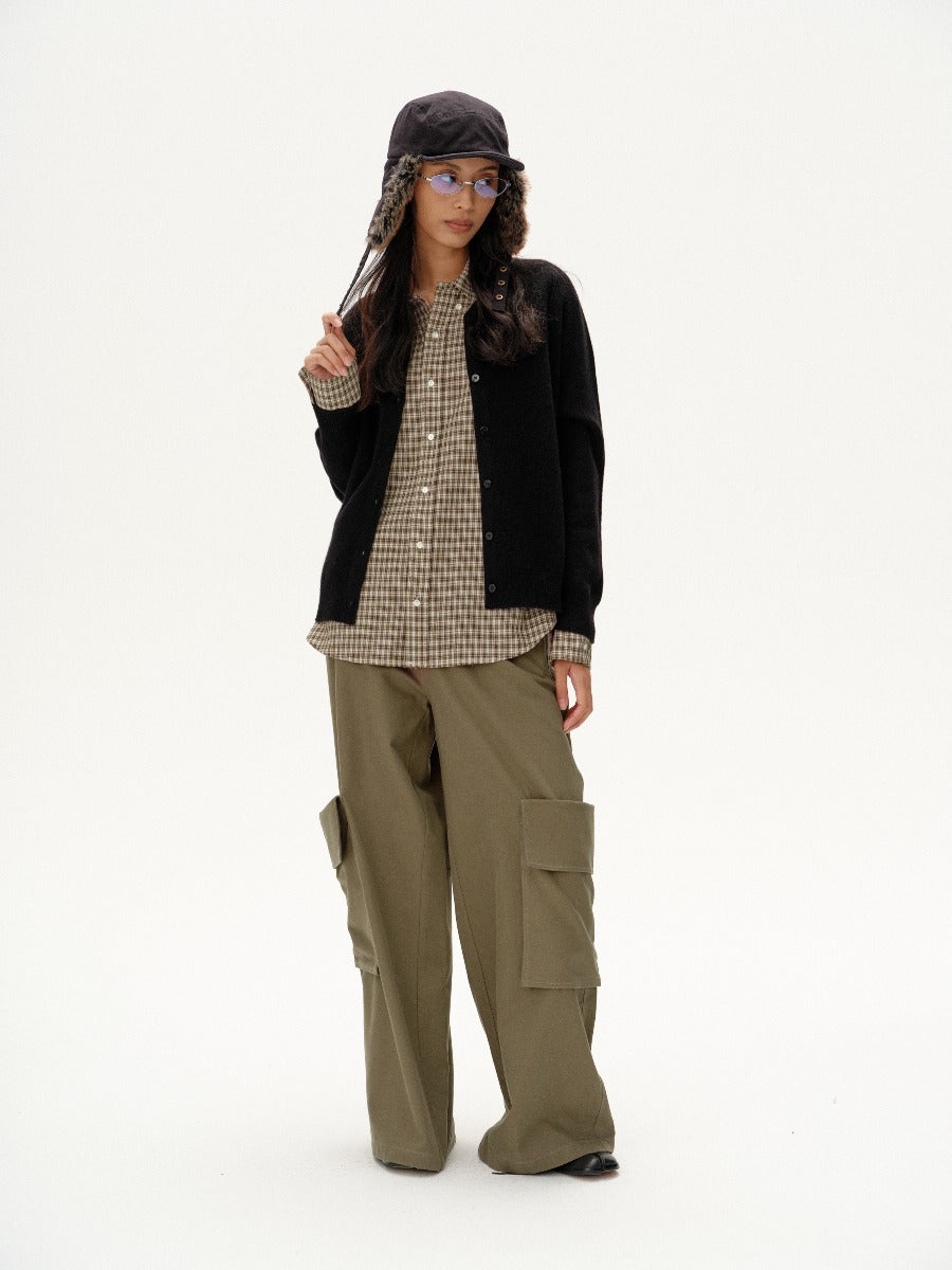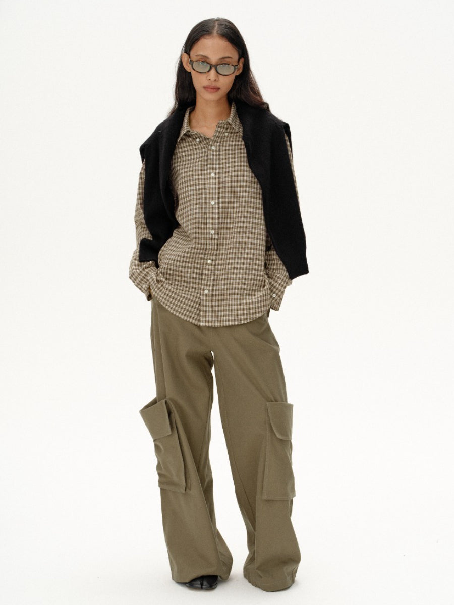 Khaki Brown Lapel Plaid Shirt「NEW」