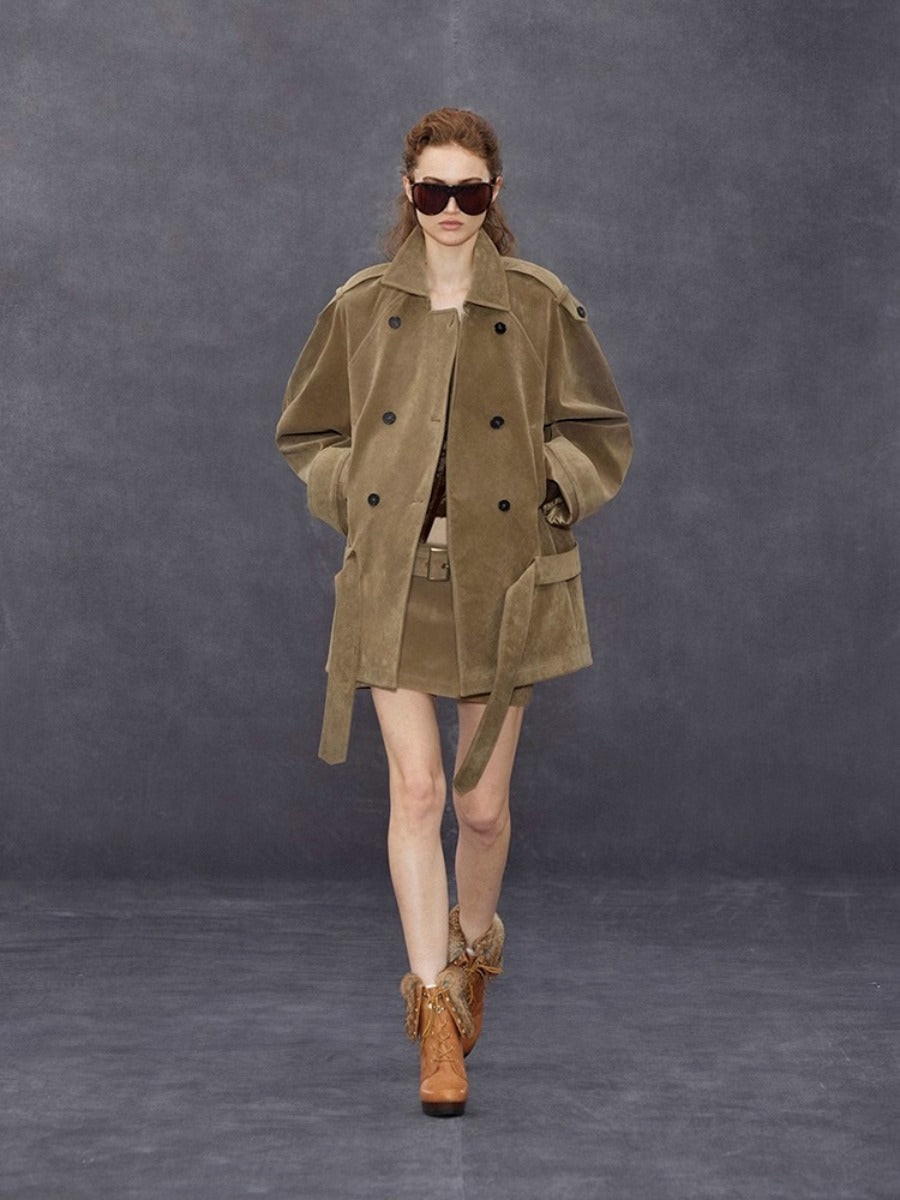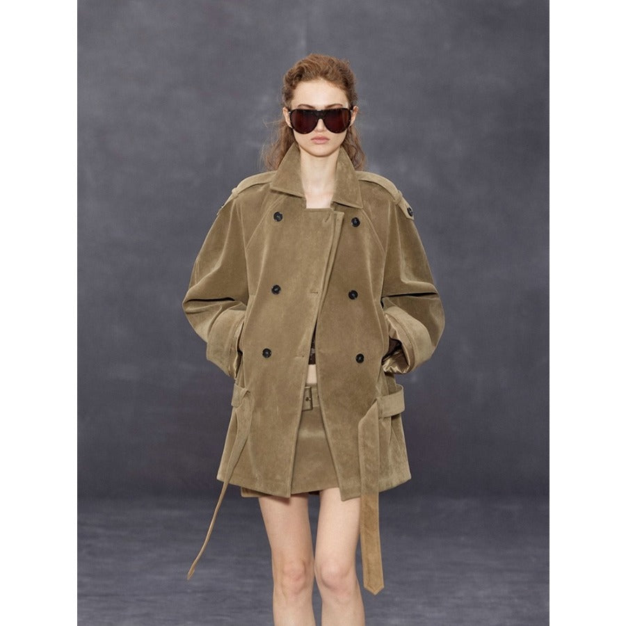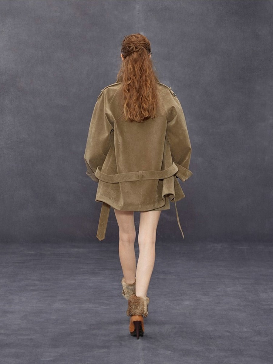 Lapel Curved Shoulder Short Suede Coat「NEW」