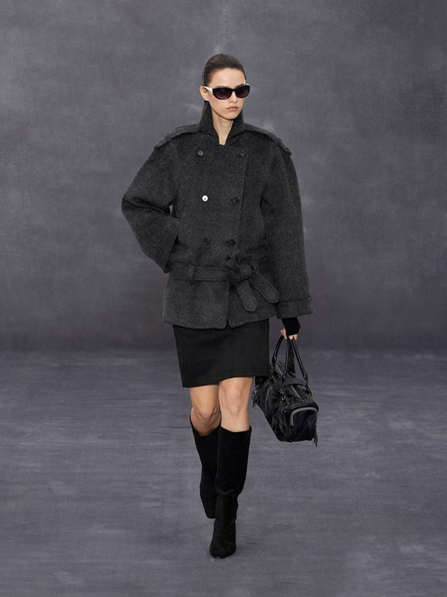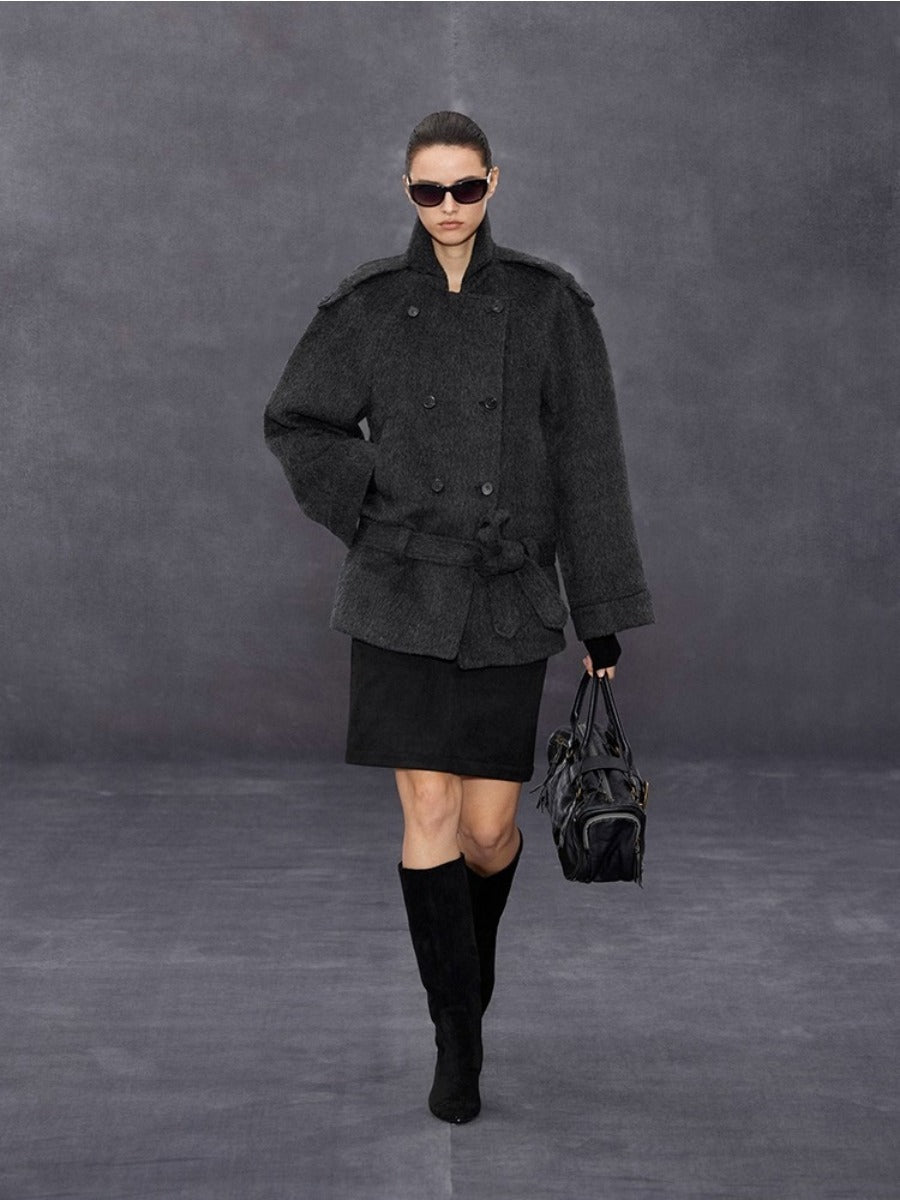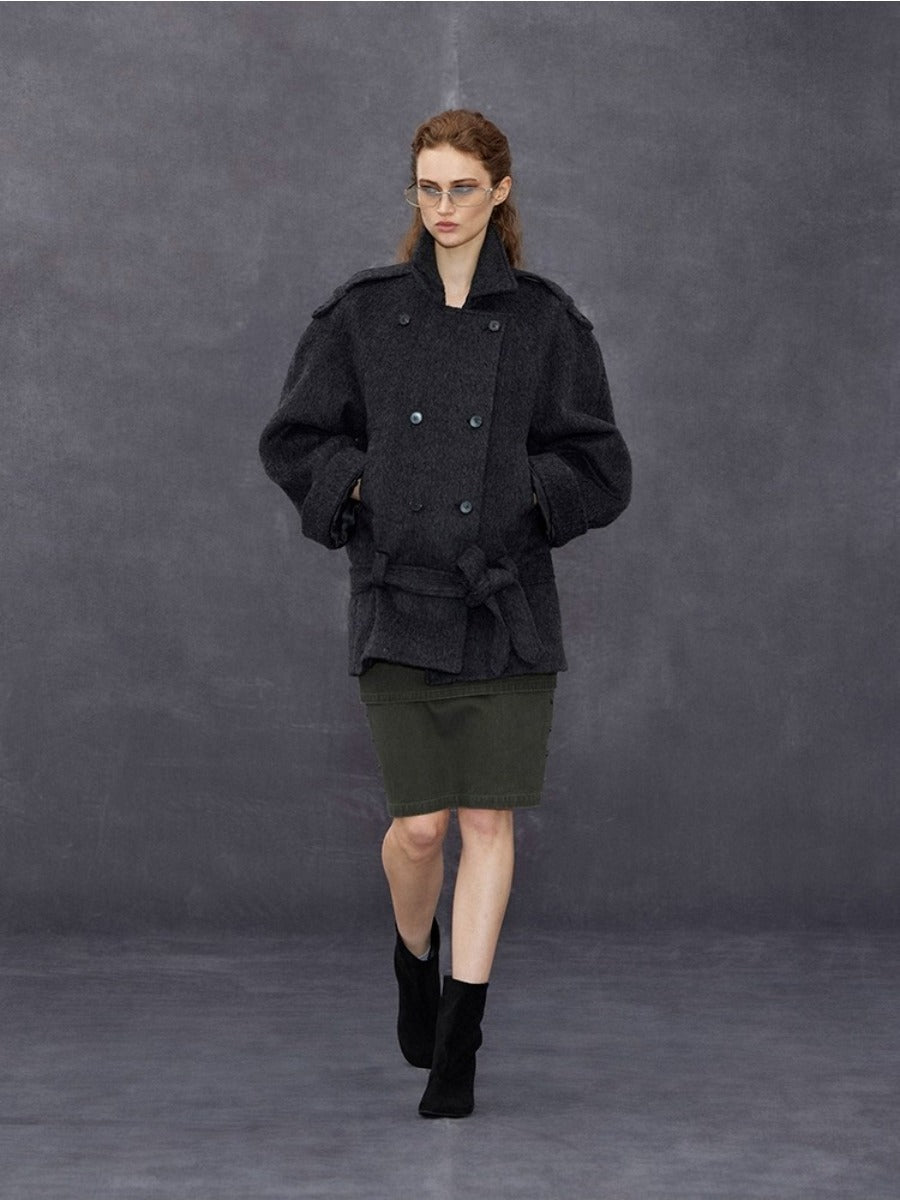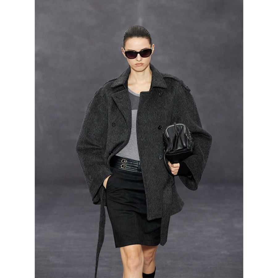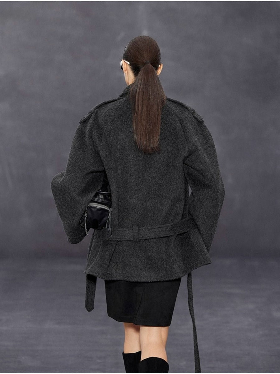 Lapel Curved Shoulders Short Wool Coat「NEW」
