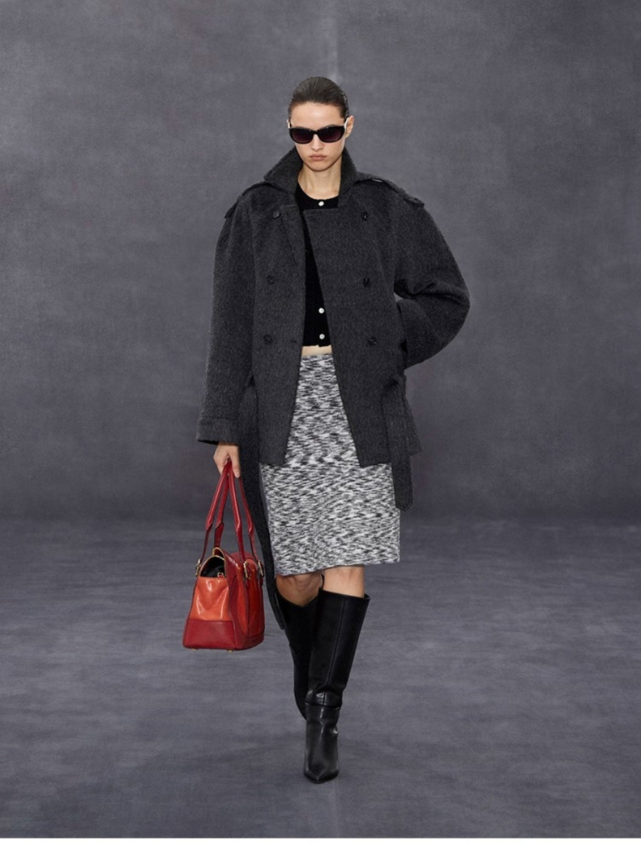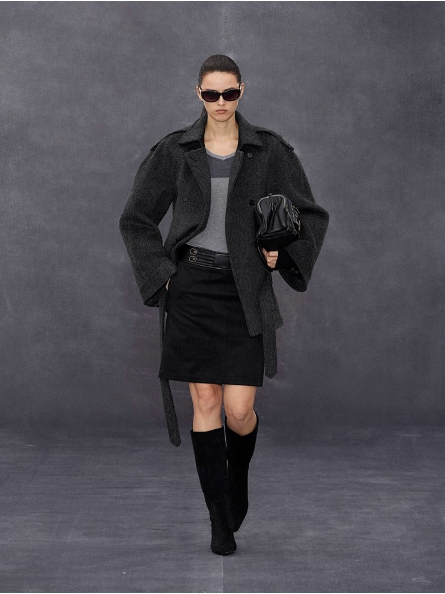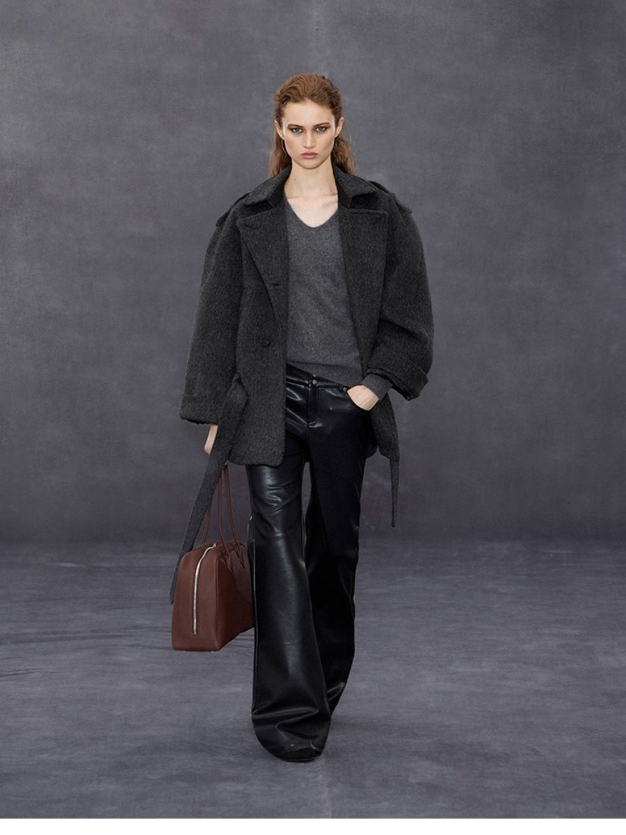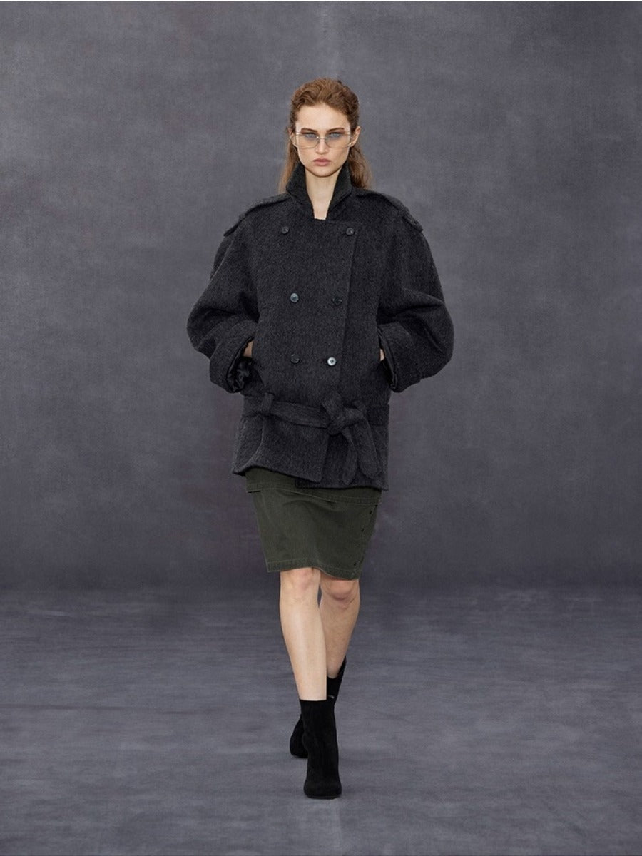 Lapel Curved Shoulders Short Wool Coat「NEW」