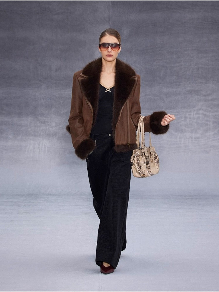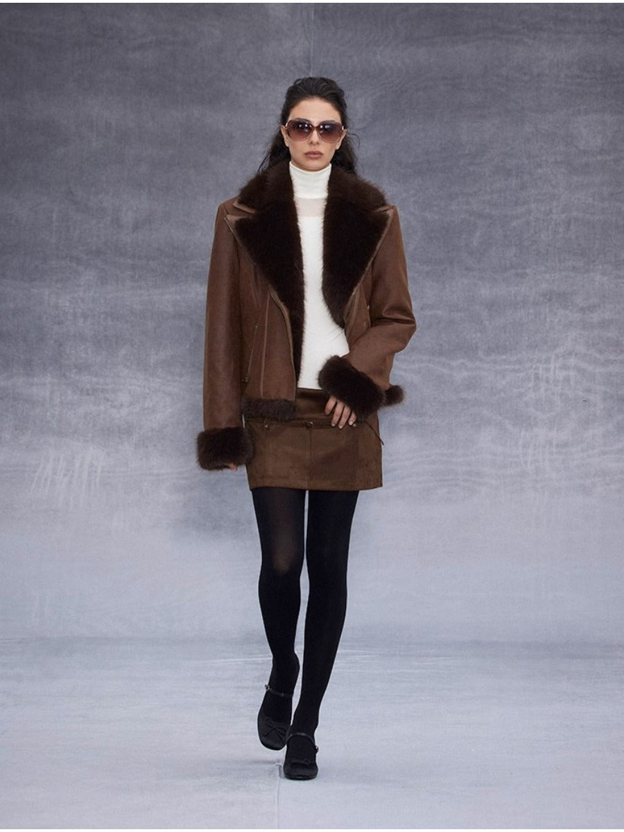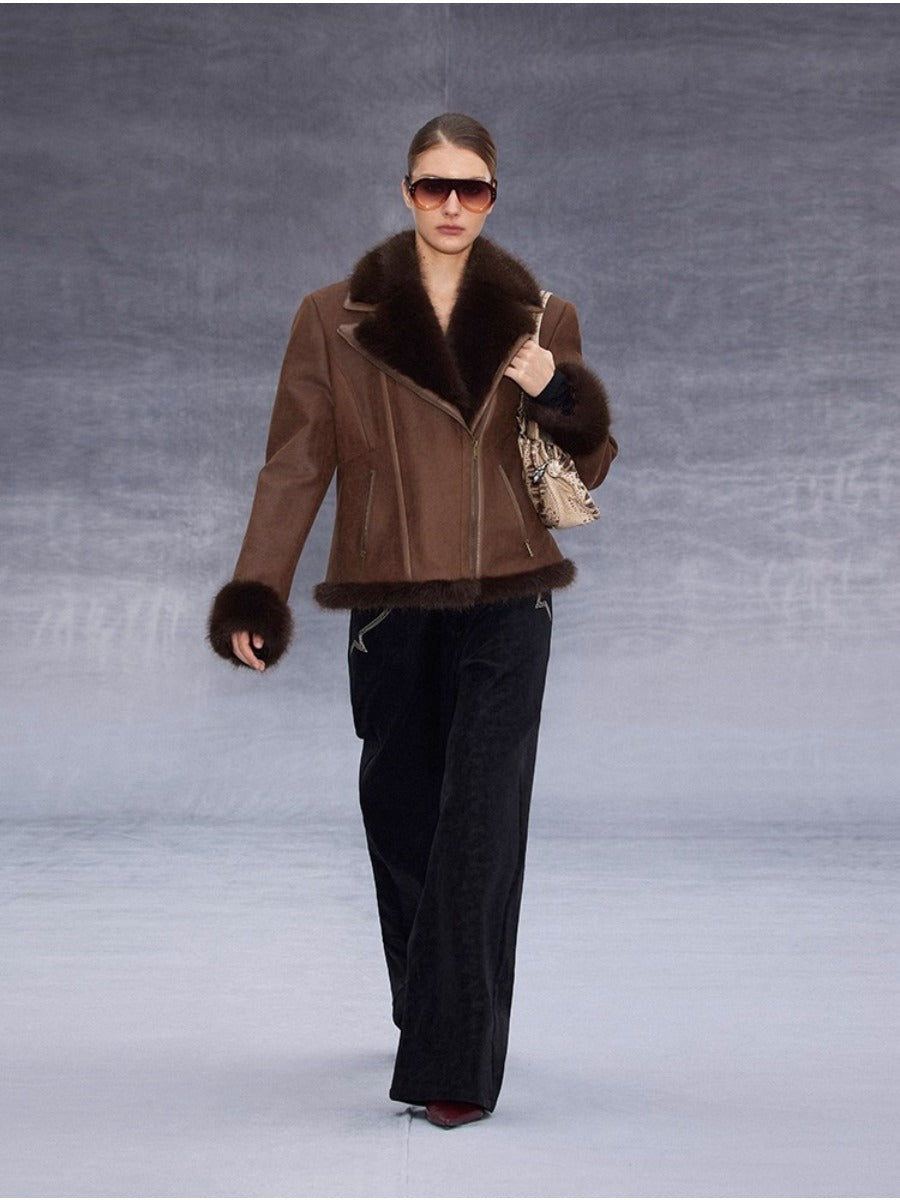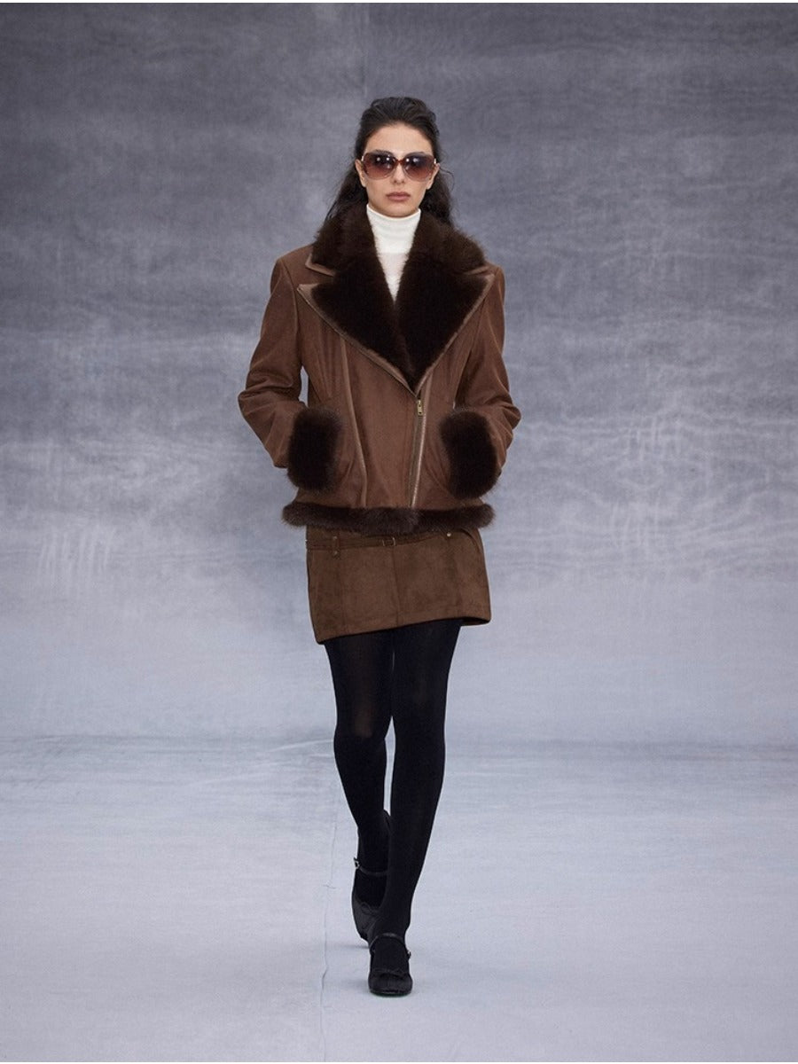 Lapel Suede Jacket with Fur Collar「NEW」