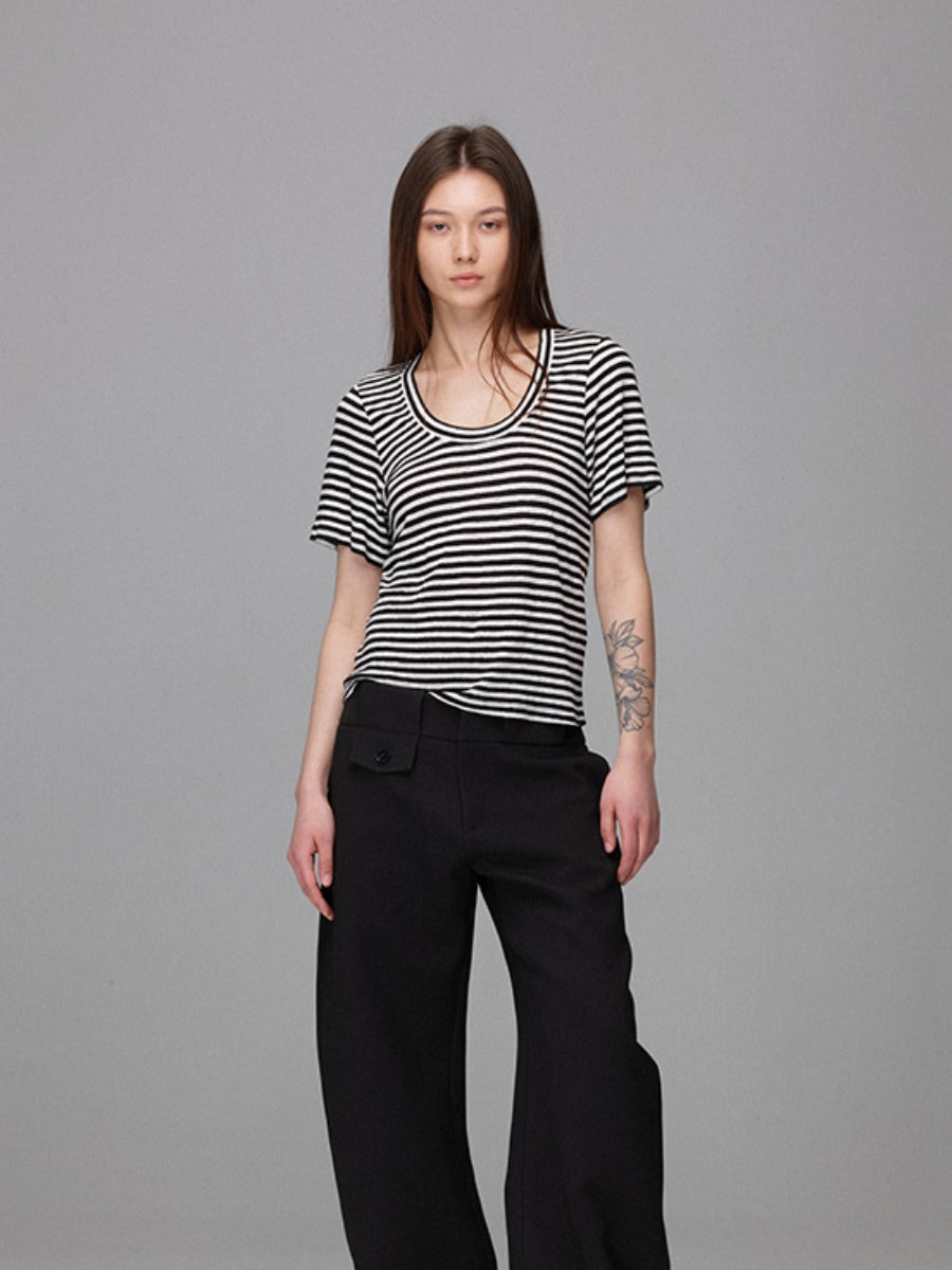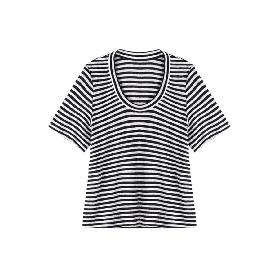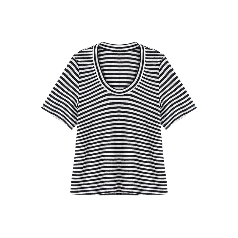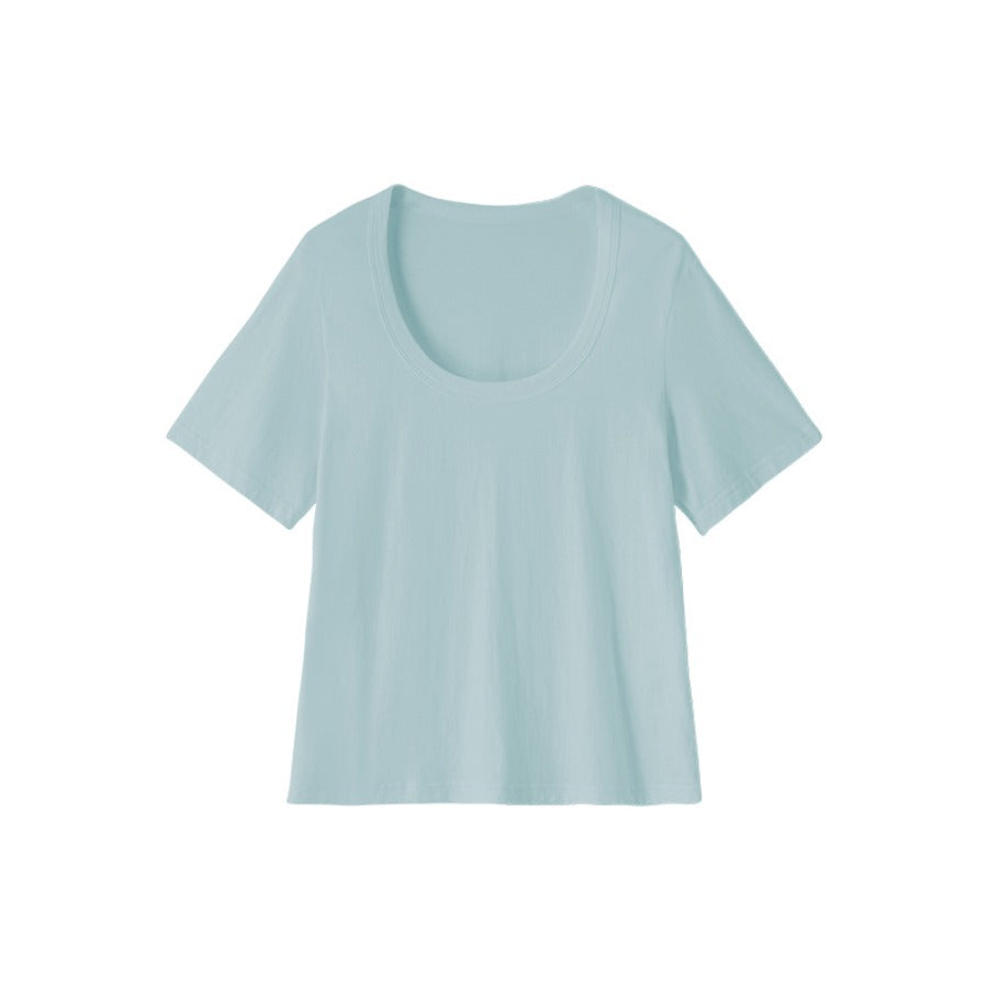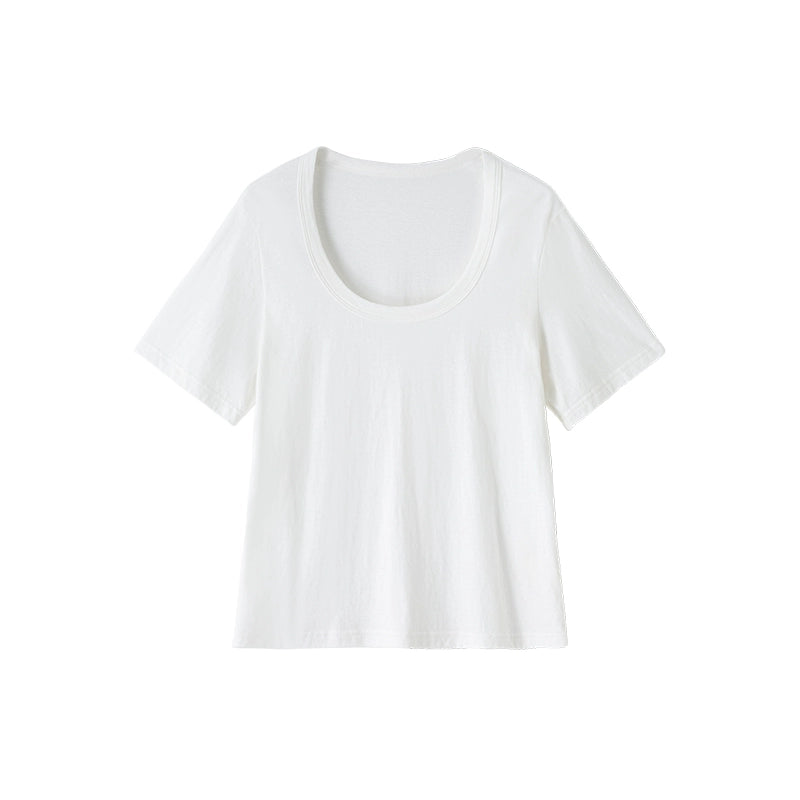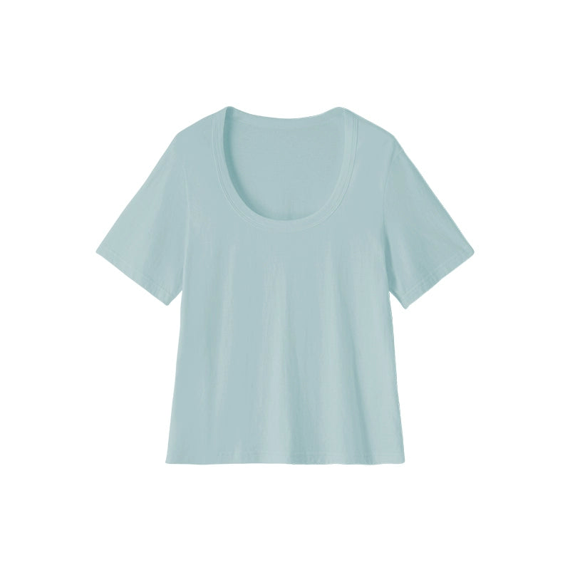 Linen Cotton U Neck Loose Fit Short Sleeve Tee
