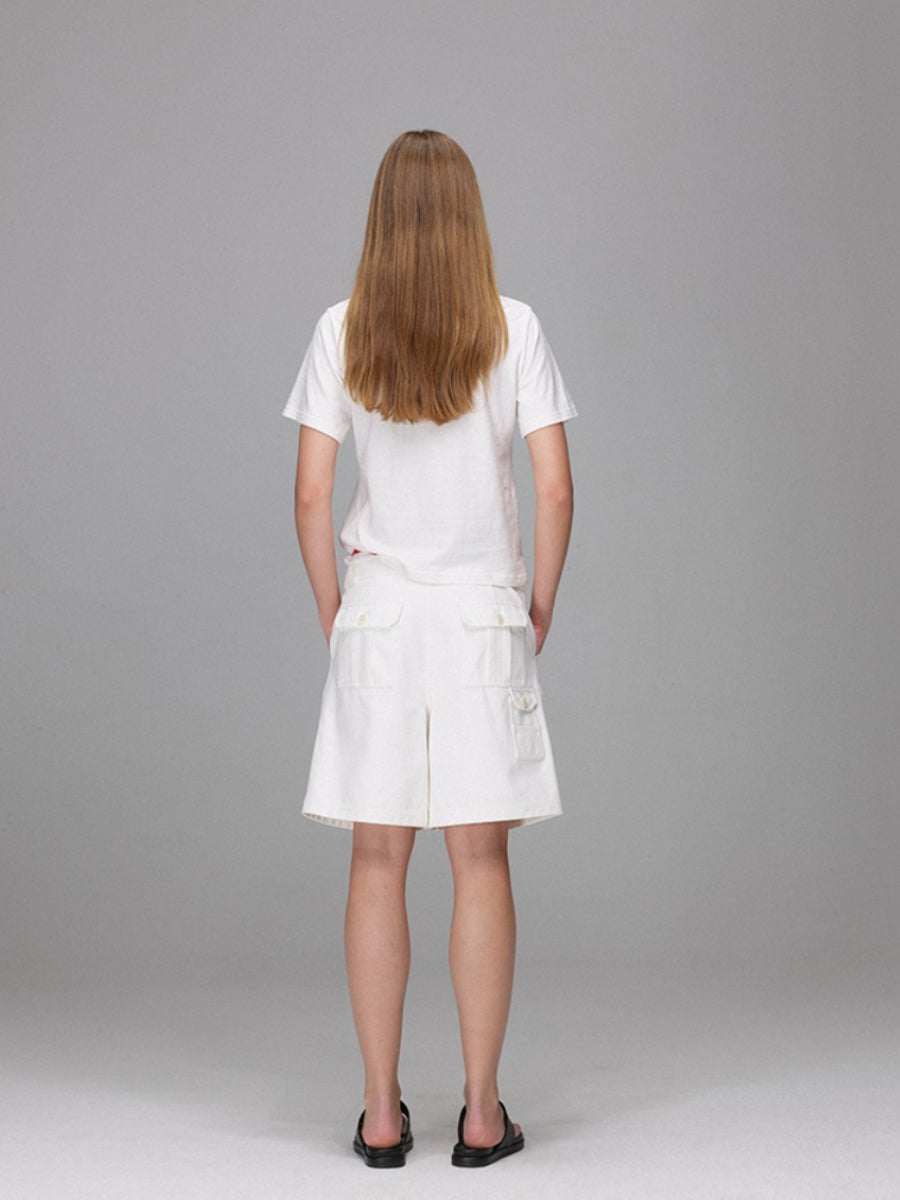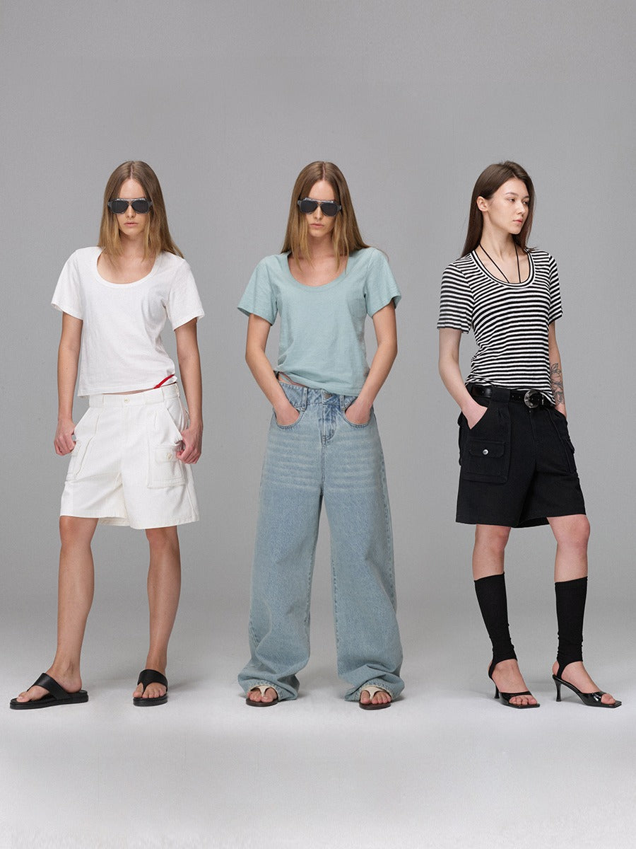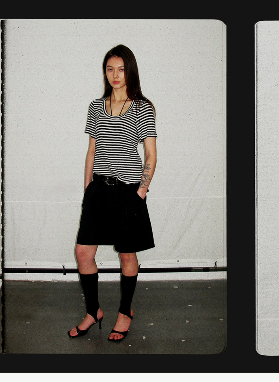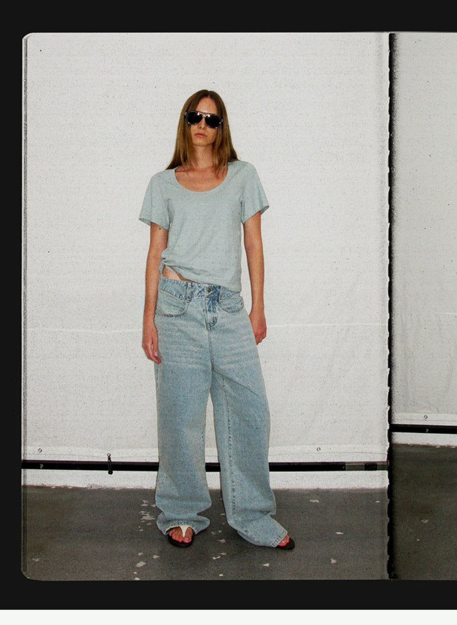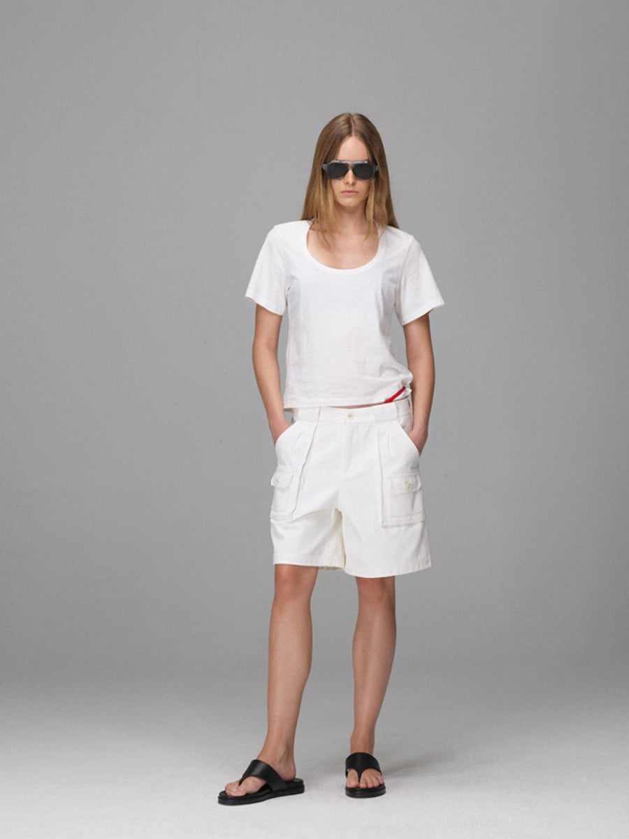 Linen Cotton U Neck Loose Fit Short Sleeve Tee