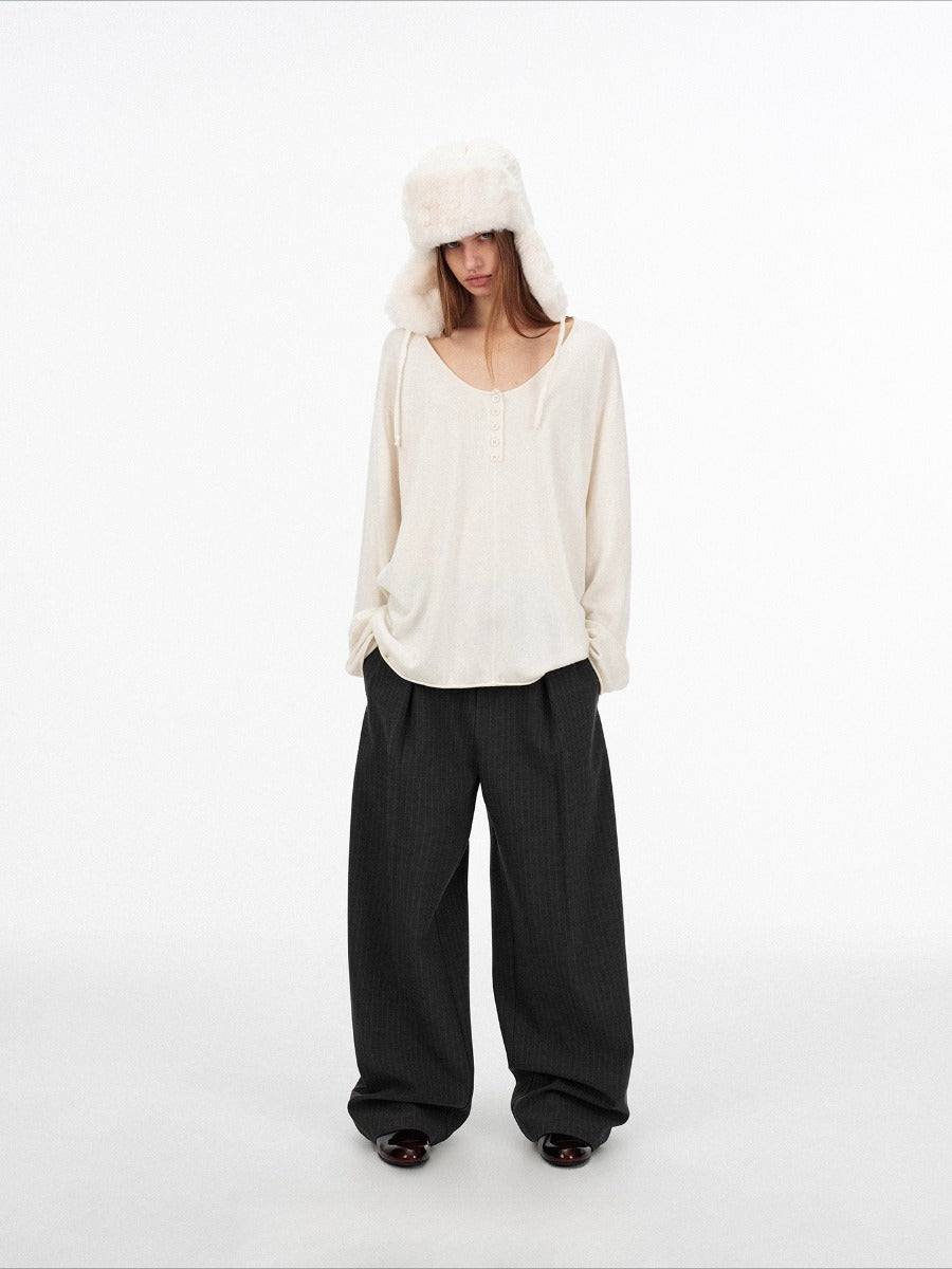 Low-rise Striped Loose Suit Pants「NEW」