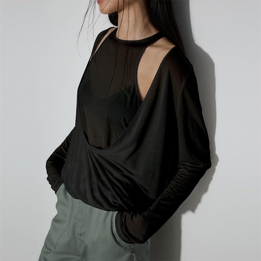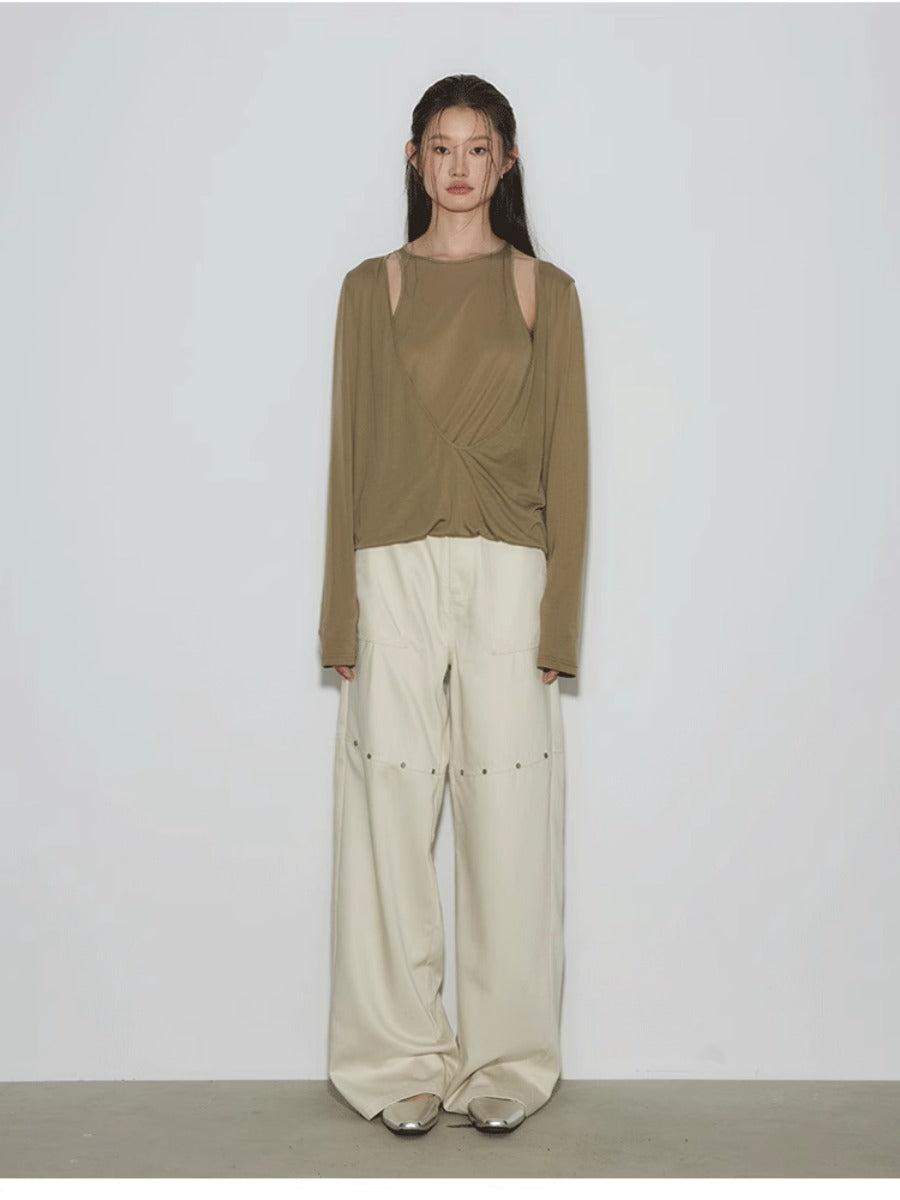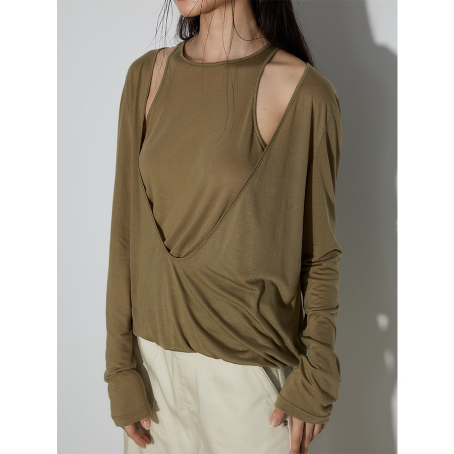 Lyocell Fake Two-piece Long-sleeved Shirt「NEW」