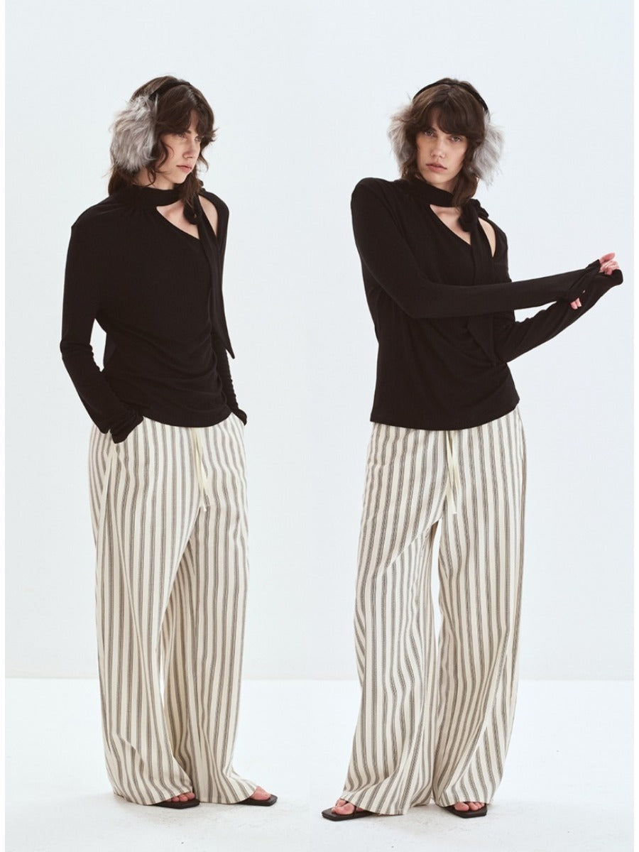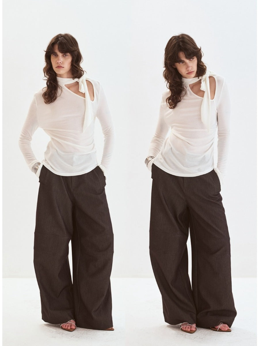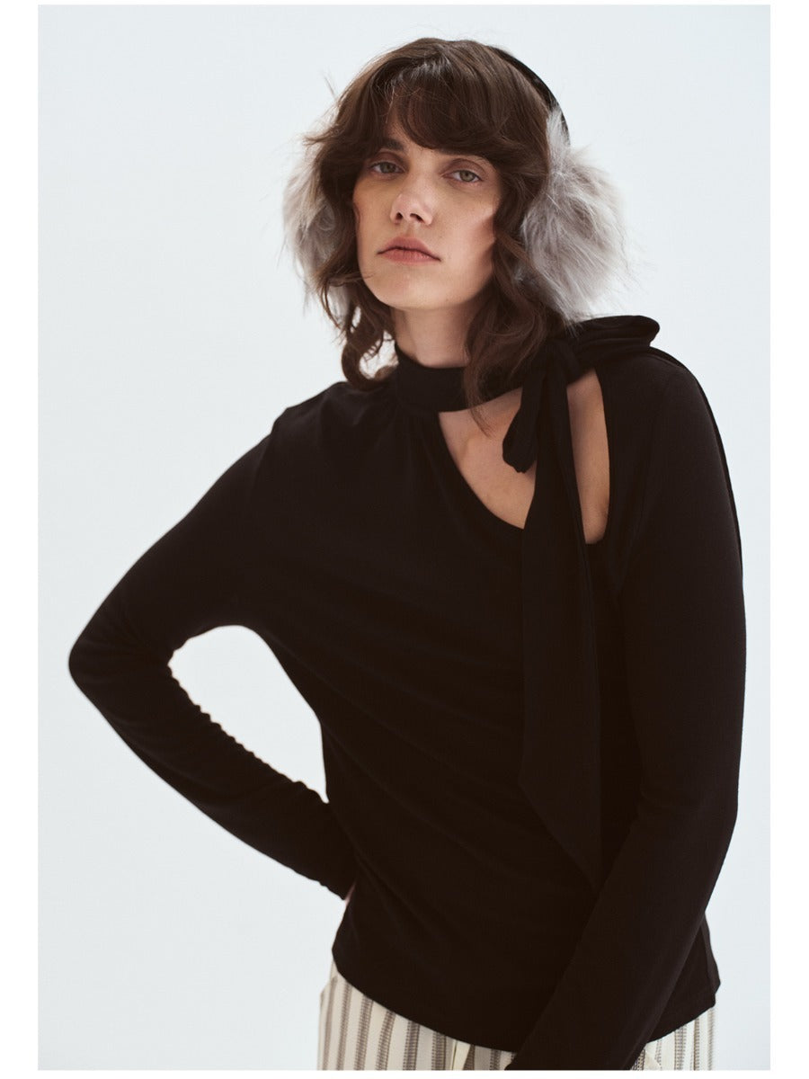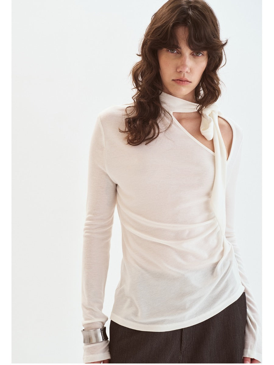 Off-shoulder Pleated Ribbon Knit Top「NEW」