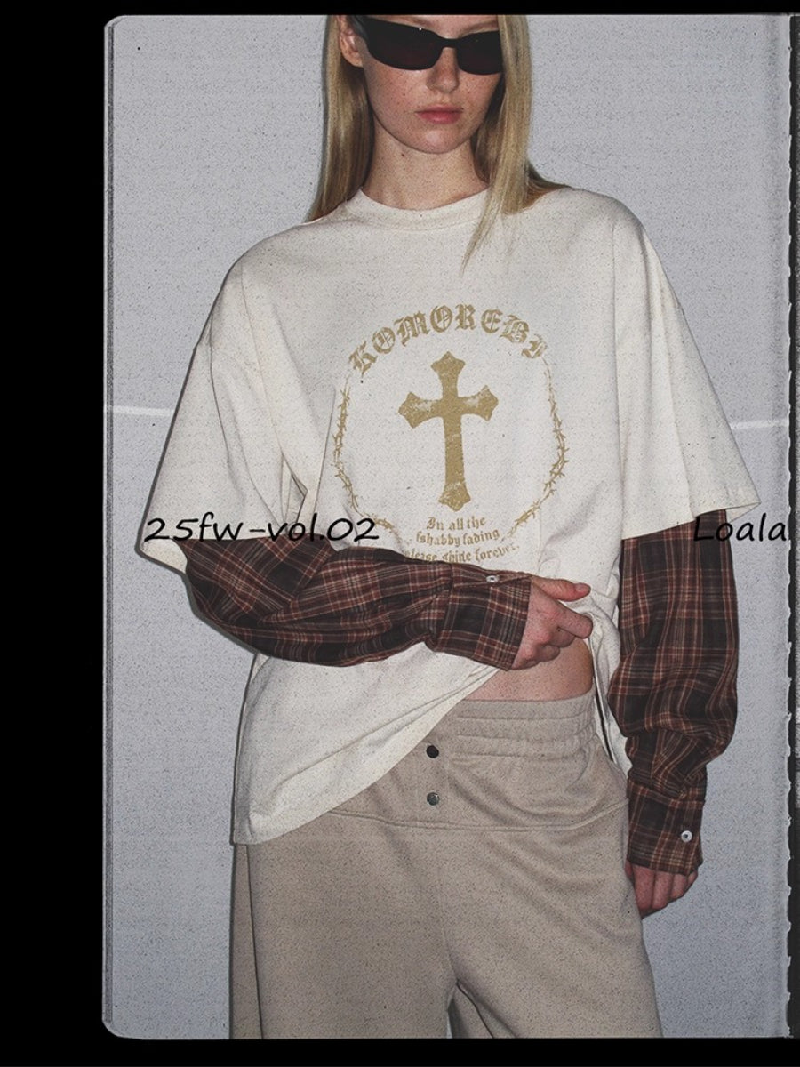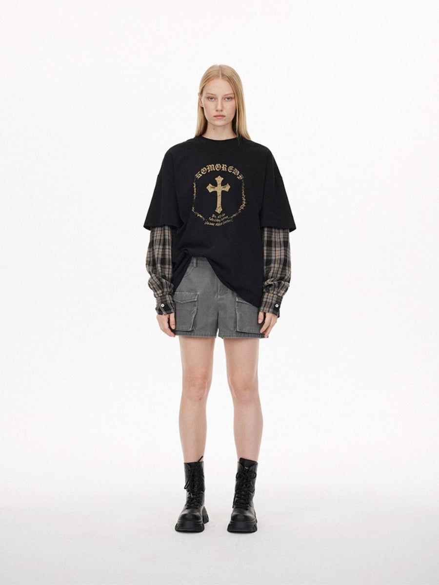 Oversized Layered Graphic Long Sleeve T-Shirt