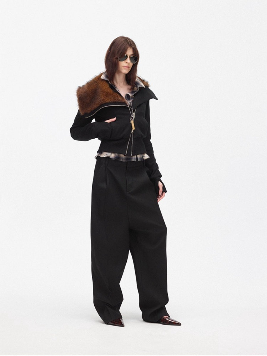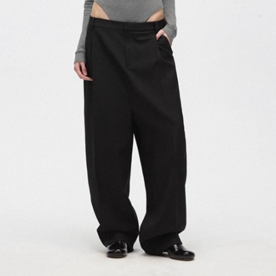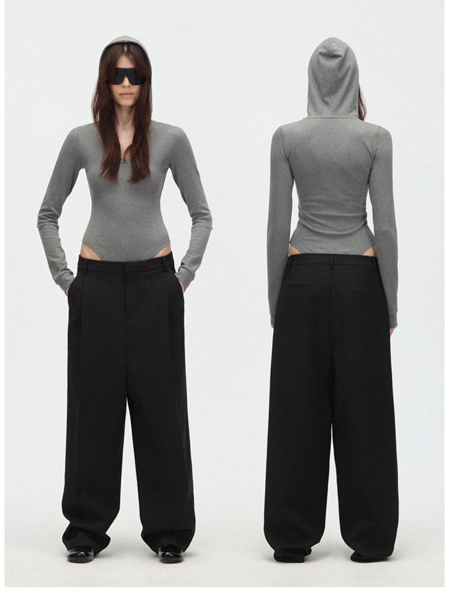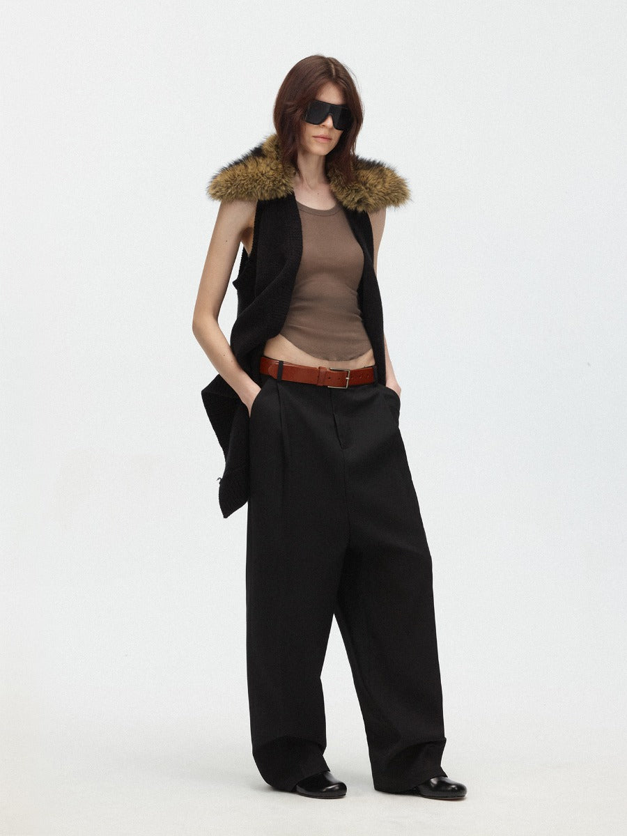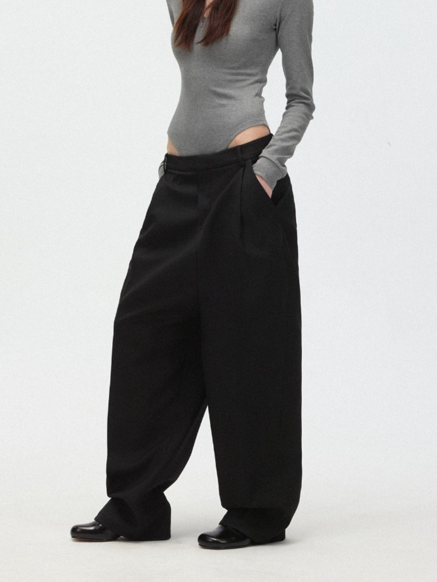 Pleated Drop Crotch Wide Leg Straight Suit Pants