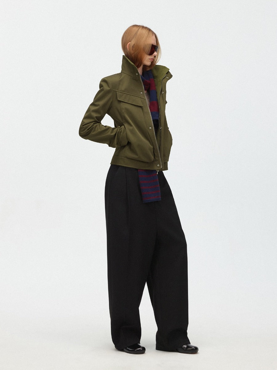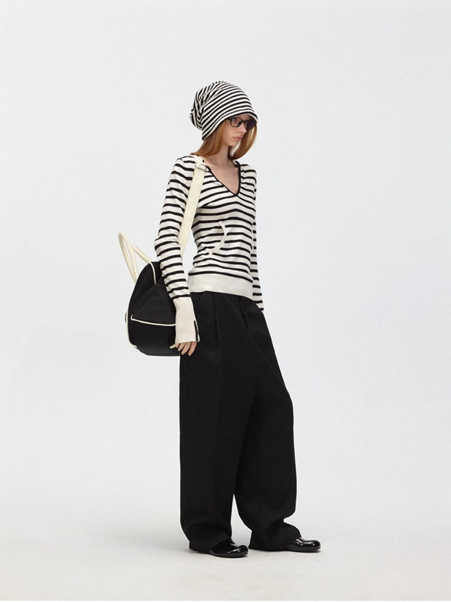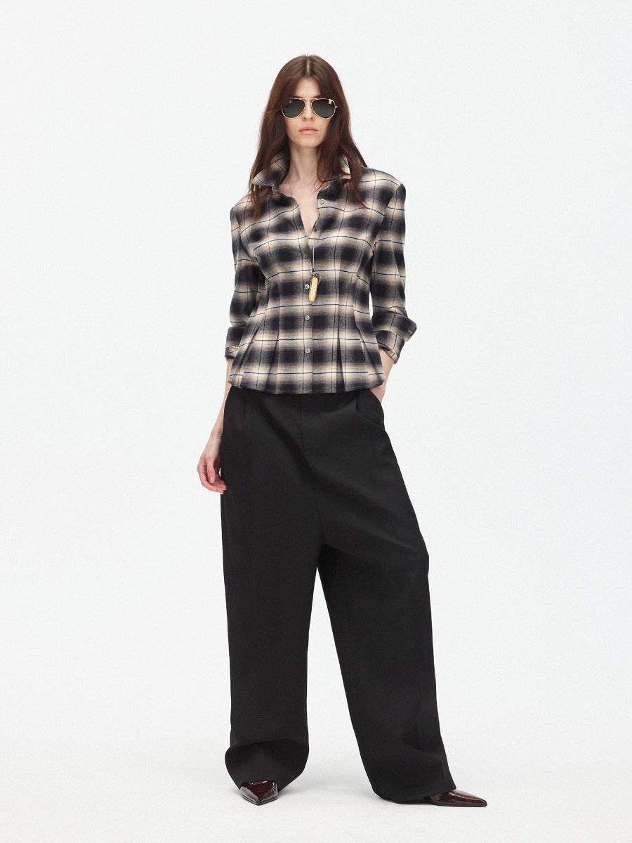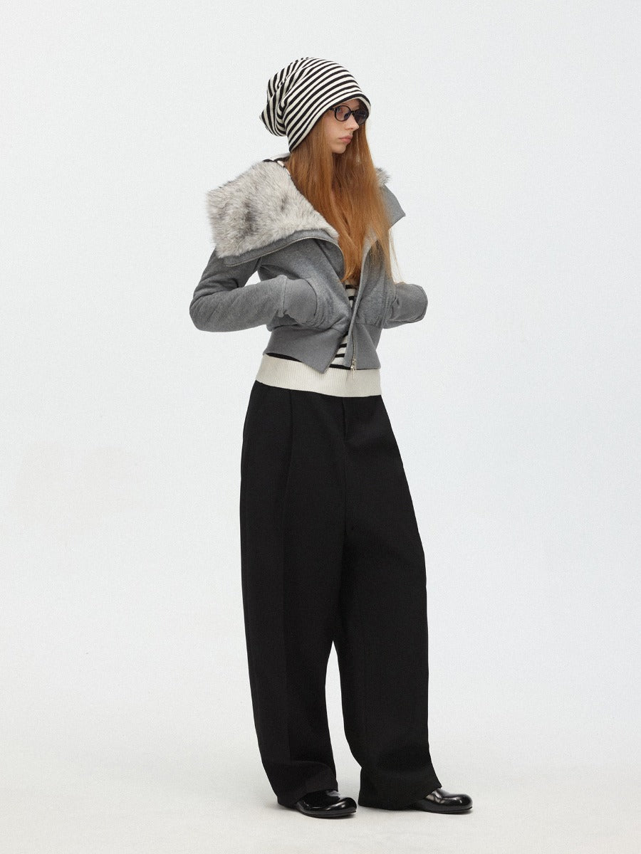 Pleated Drop Crotch Wide Leg Straight Suit Pants