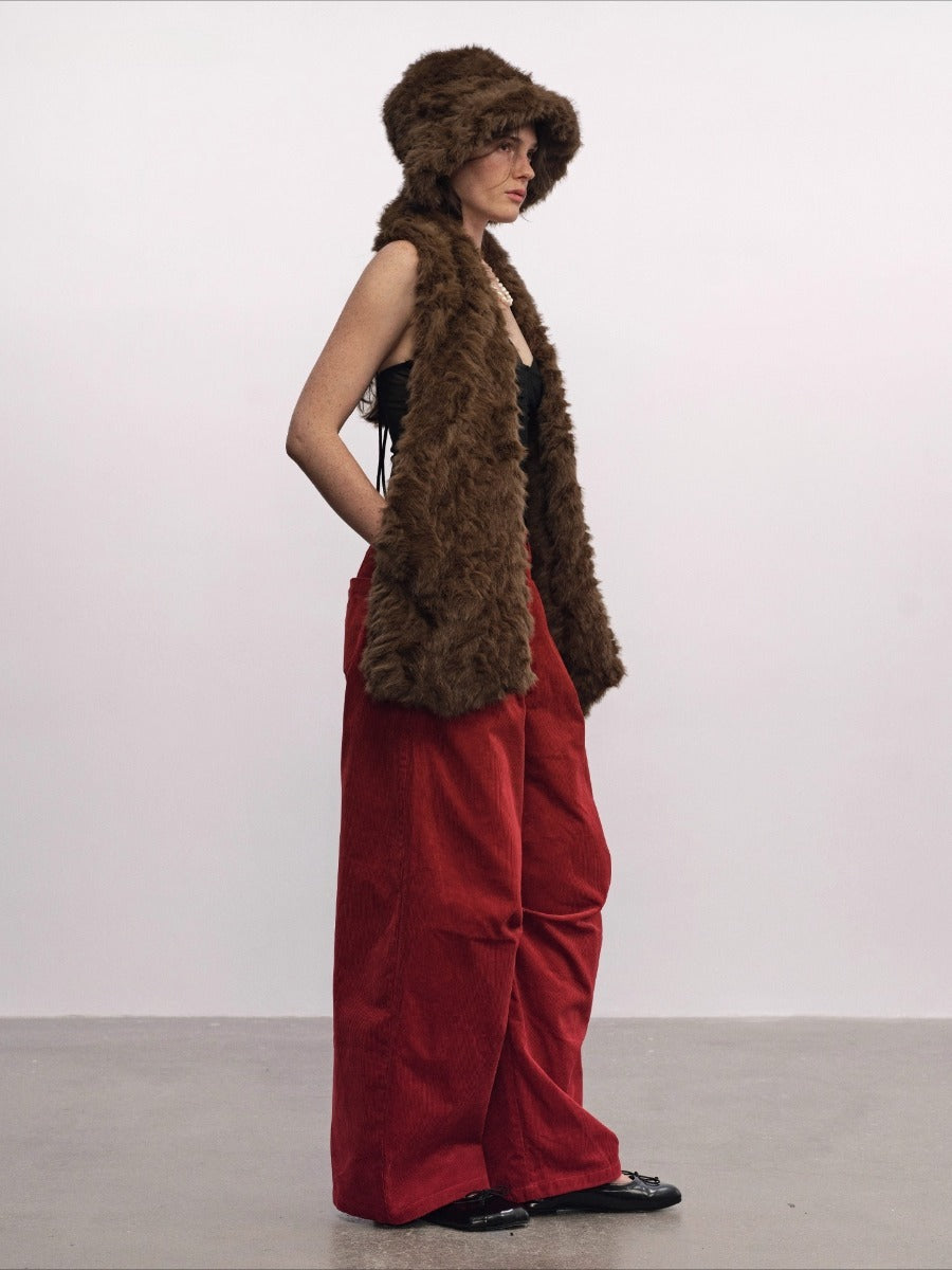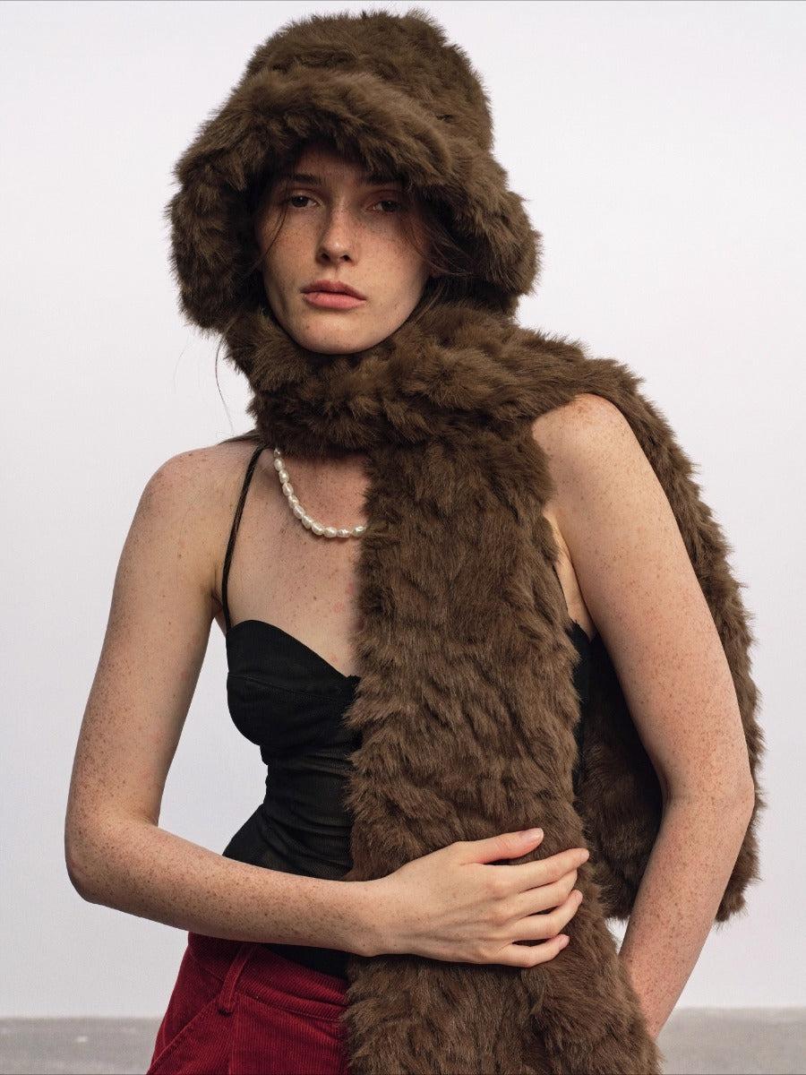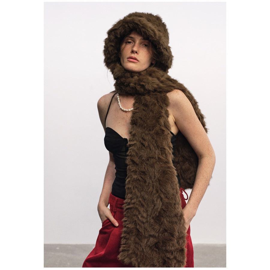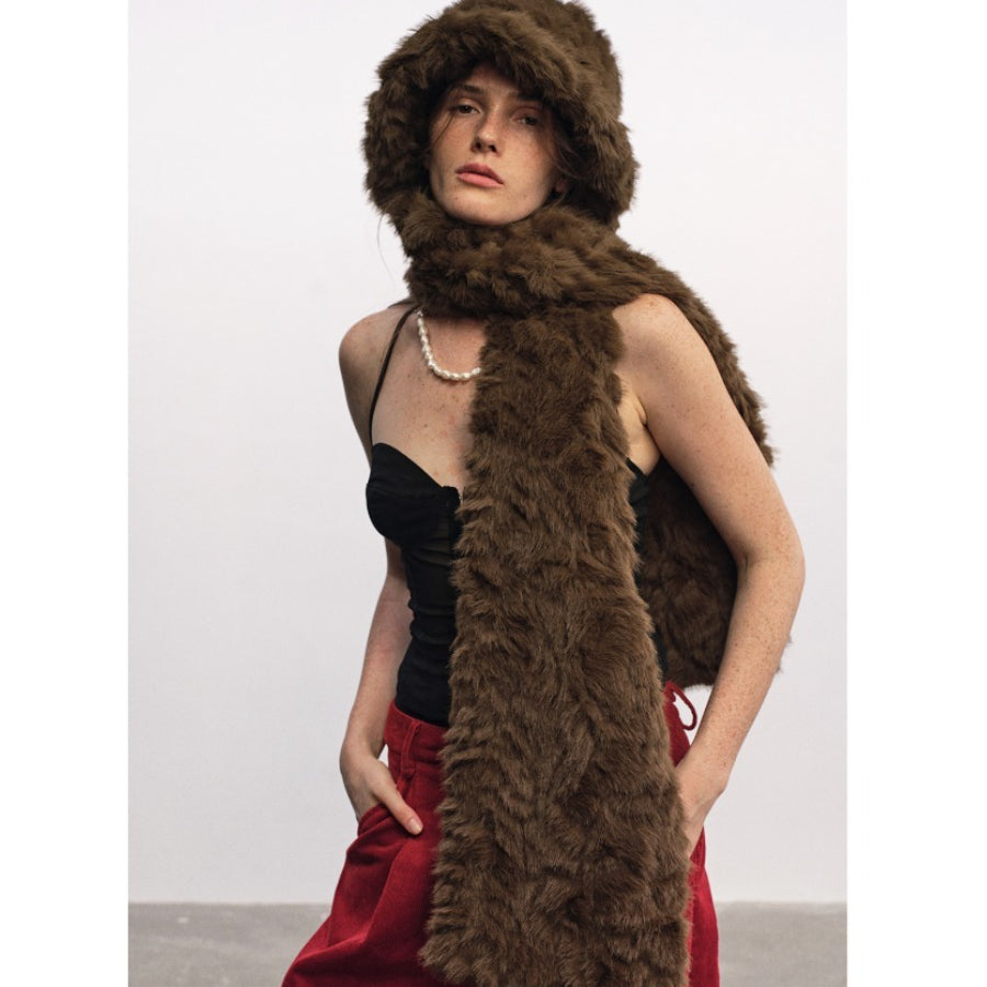 Pocketed Faux Fur Long Warm Scarf「NEW」
