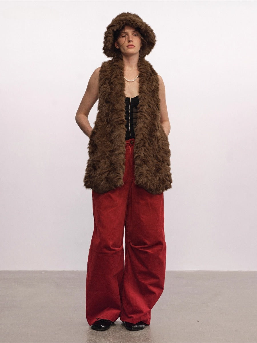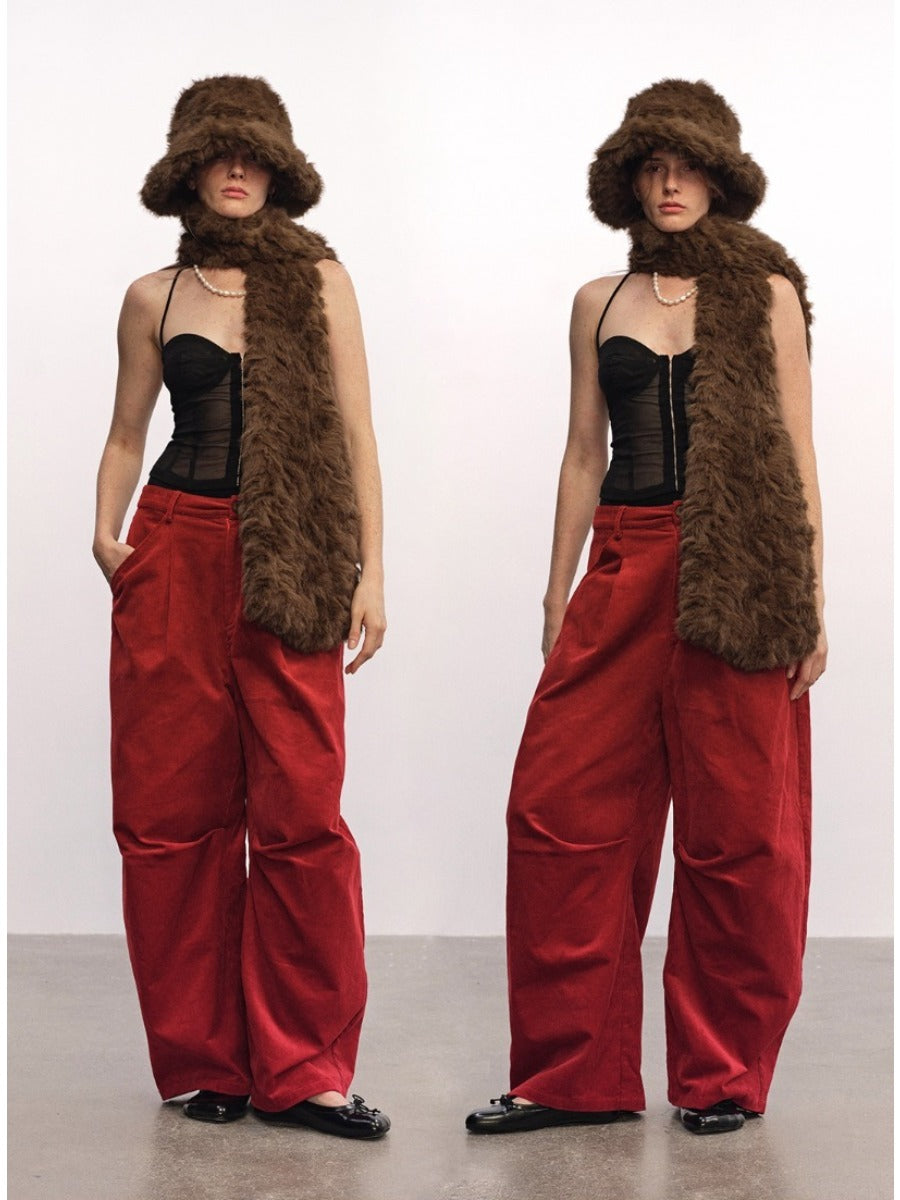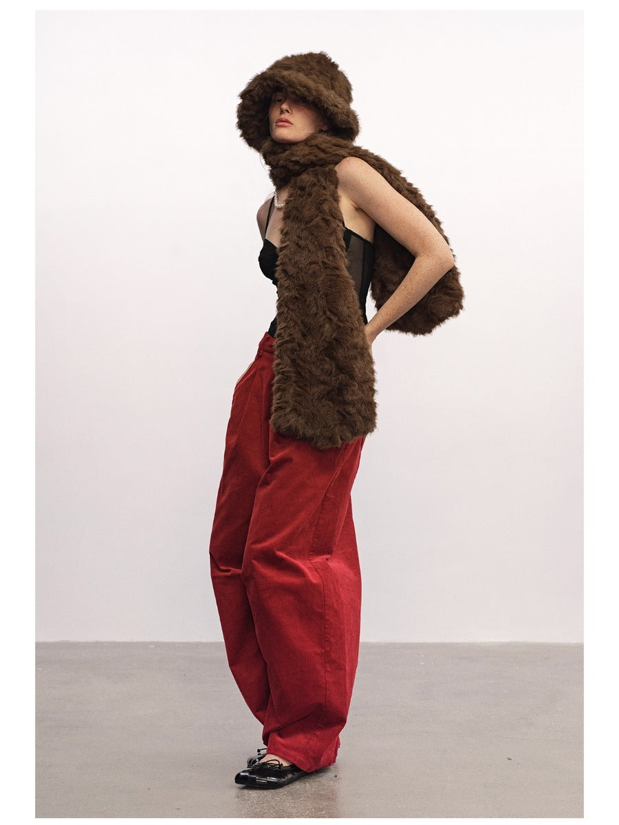 Pocketed Faux Fur Long Warm Scarf「NEW」
