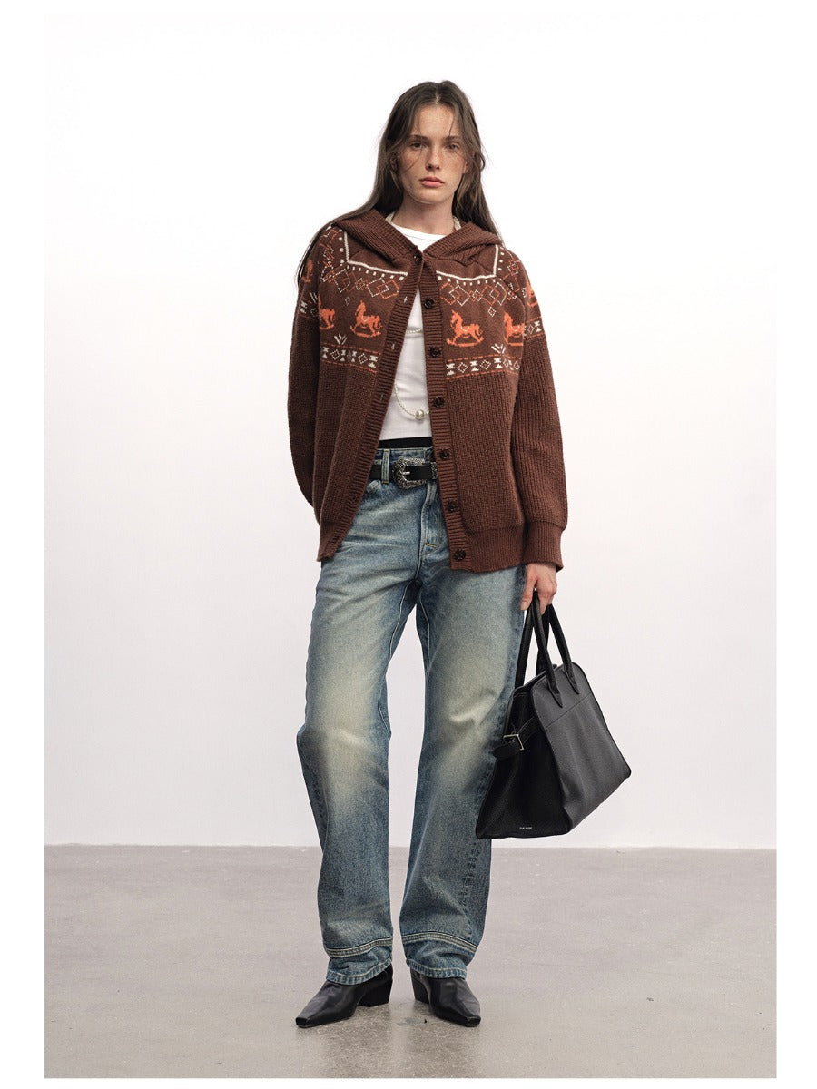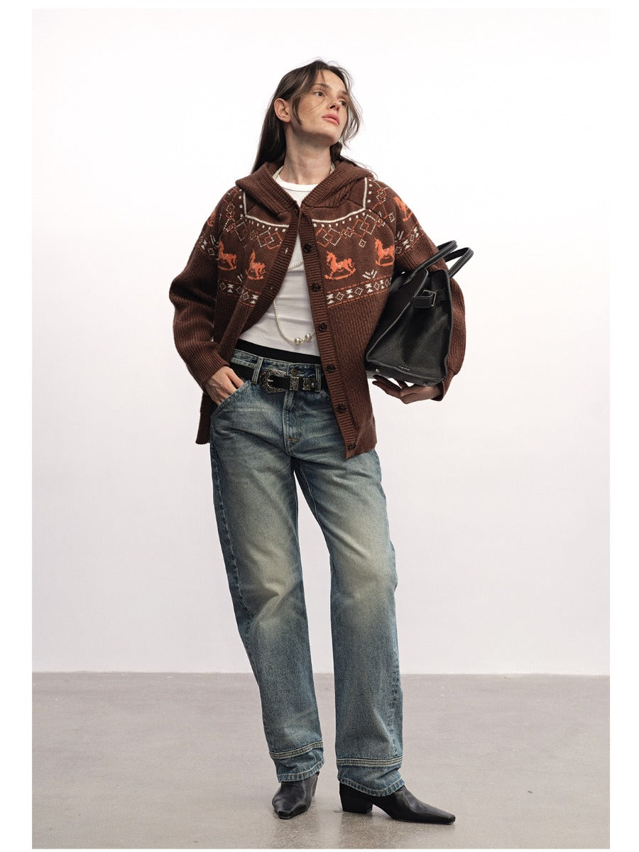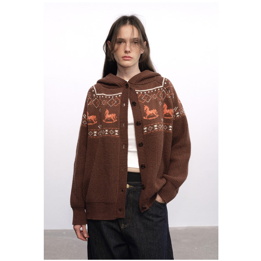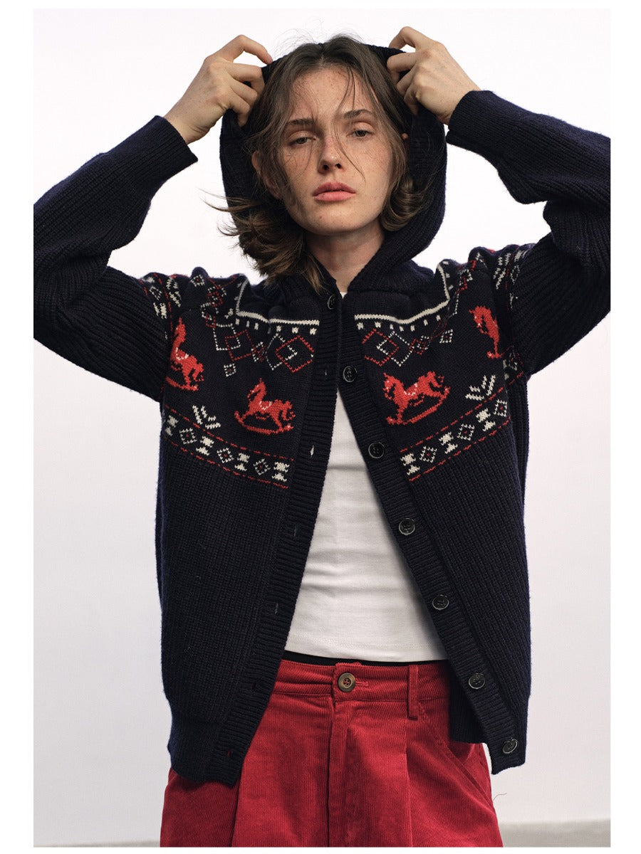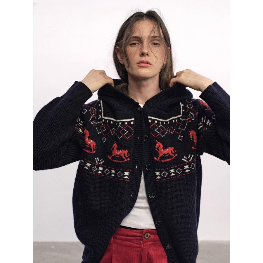 Pony Print Fair Isle Wool Hooded Cardigan「NEW」