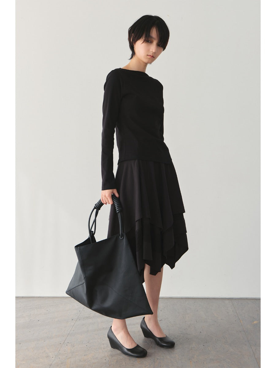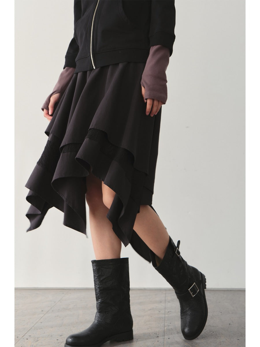 Retro Irregular-hem Lace Stitching Midi Skirt「NEW」