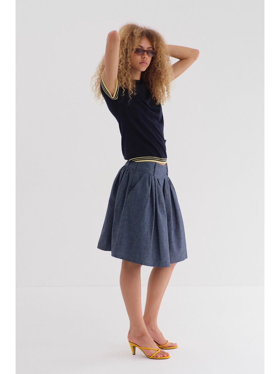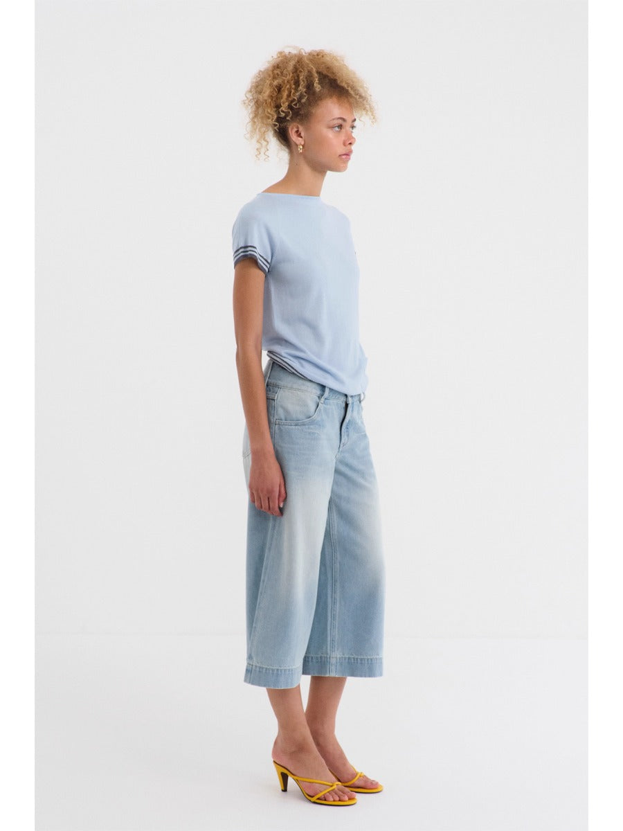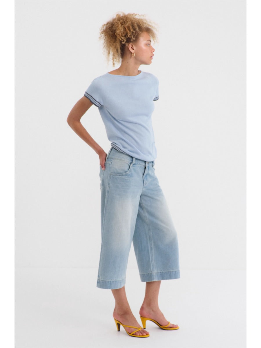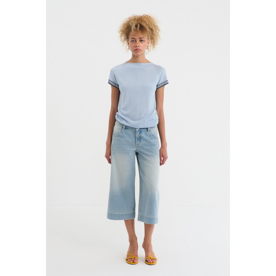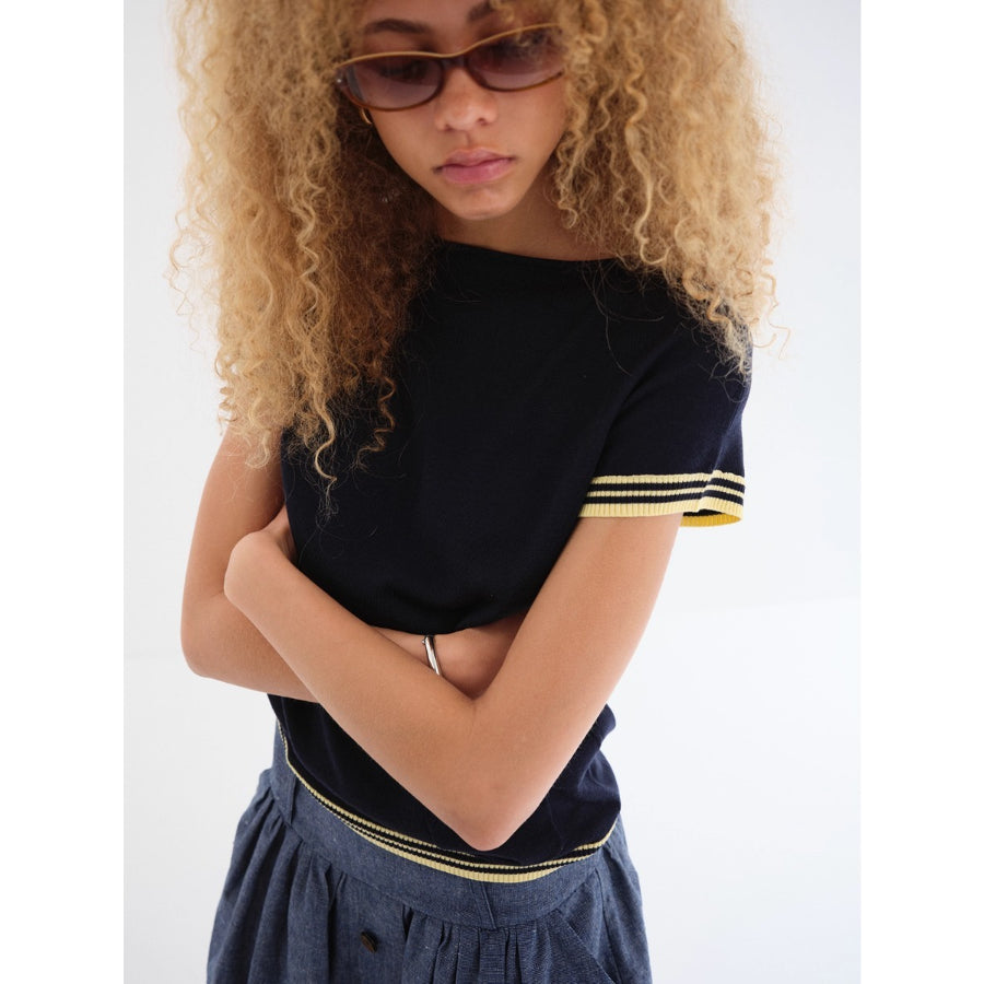 Retro Two-tone Anti-pilling Striped Knitted Short-sleeves