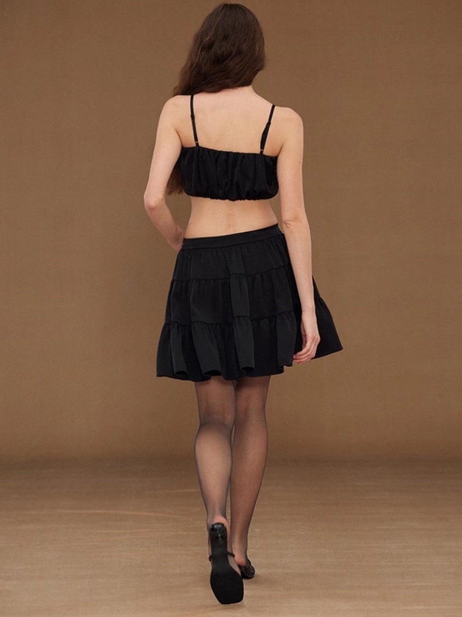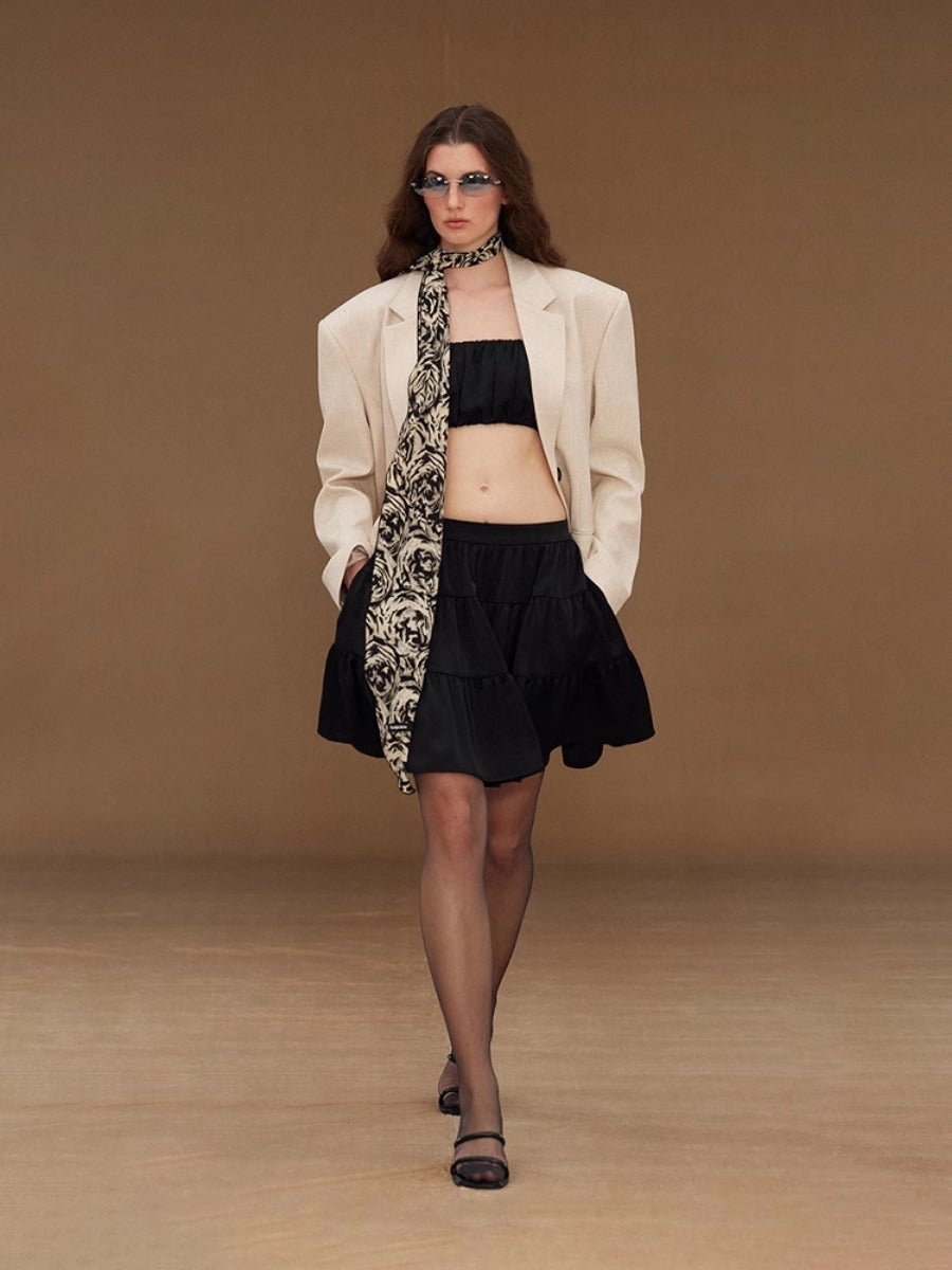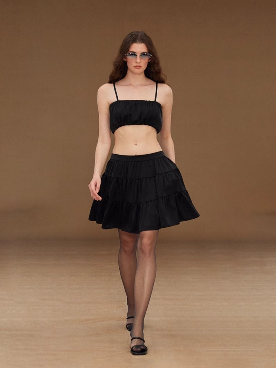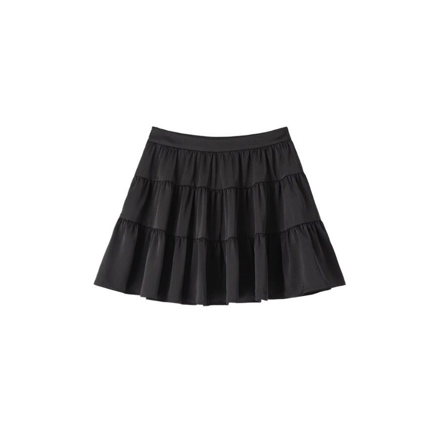 Satin Pleated Cake Umbrella Skirt