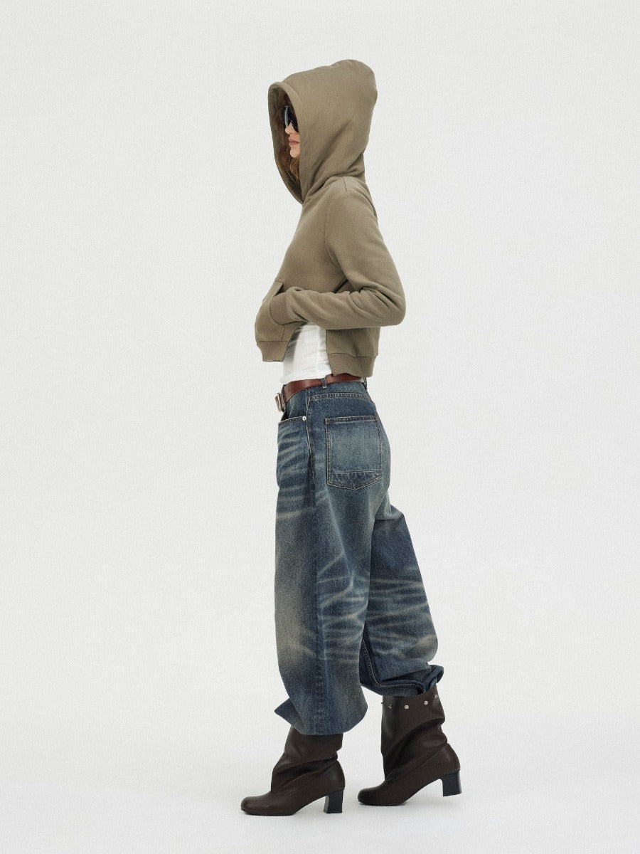 Short Side-zip Fleece-lined Hooded Sweatshirt「NEW」