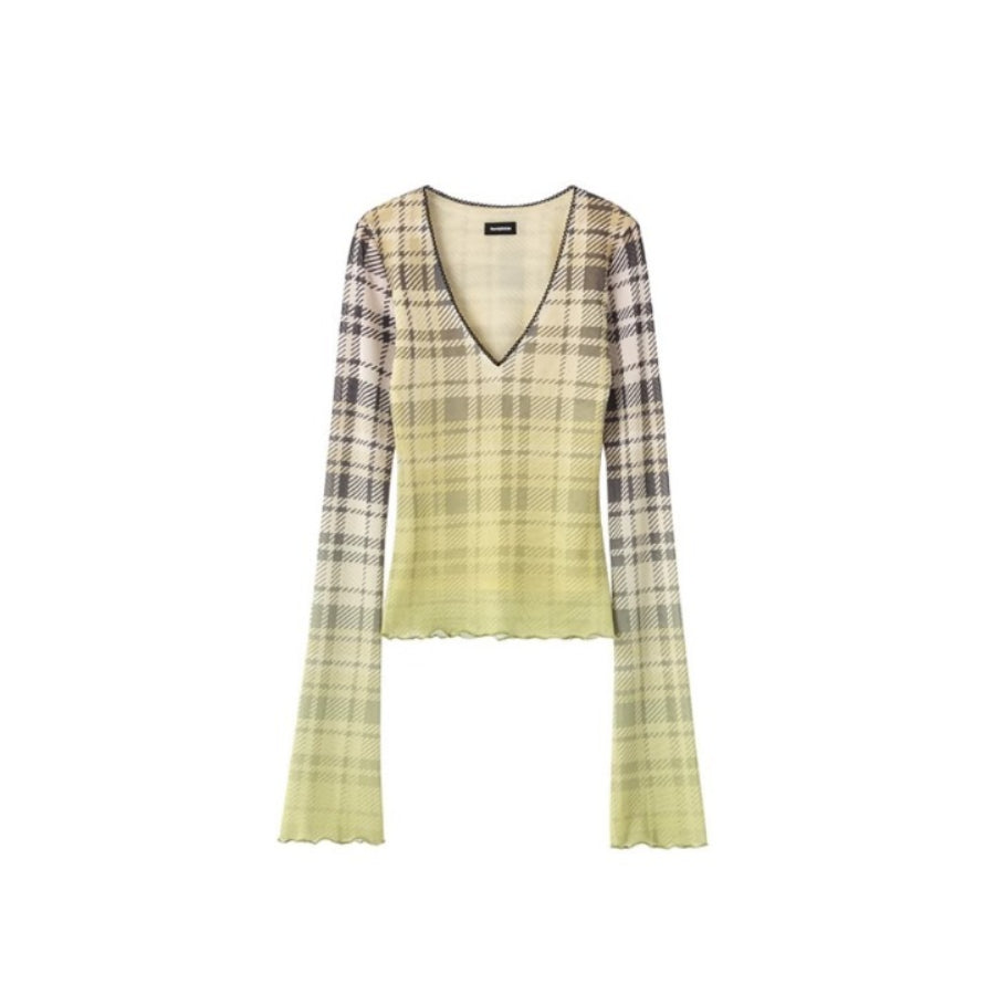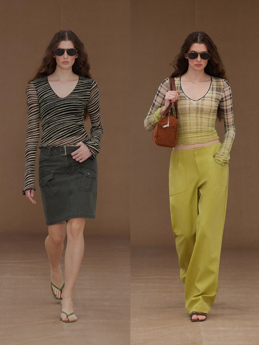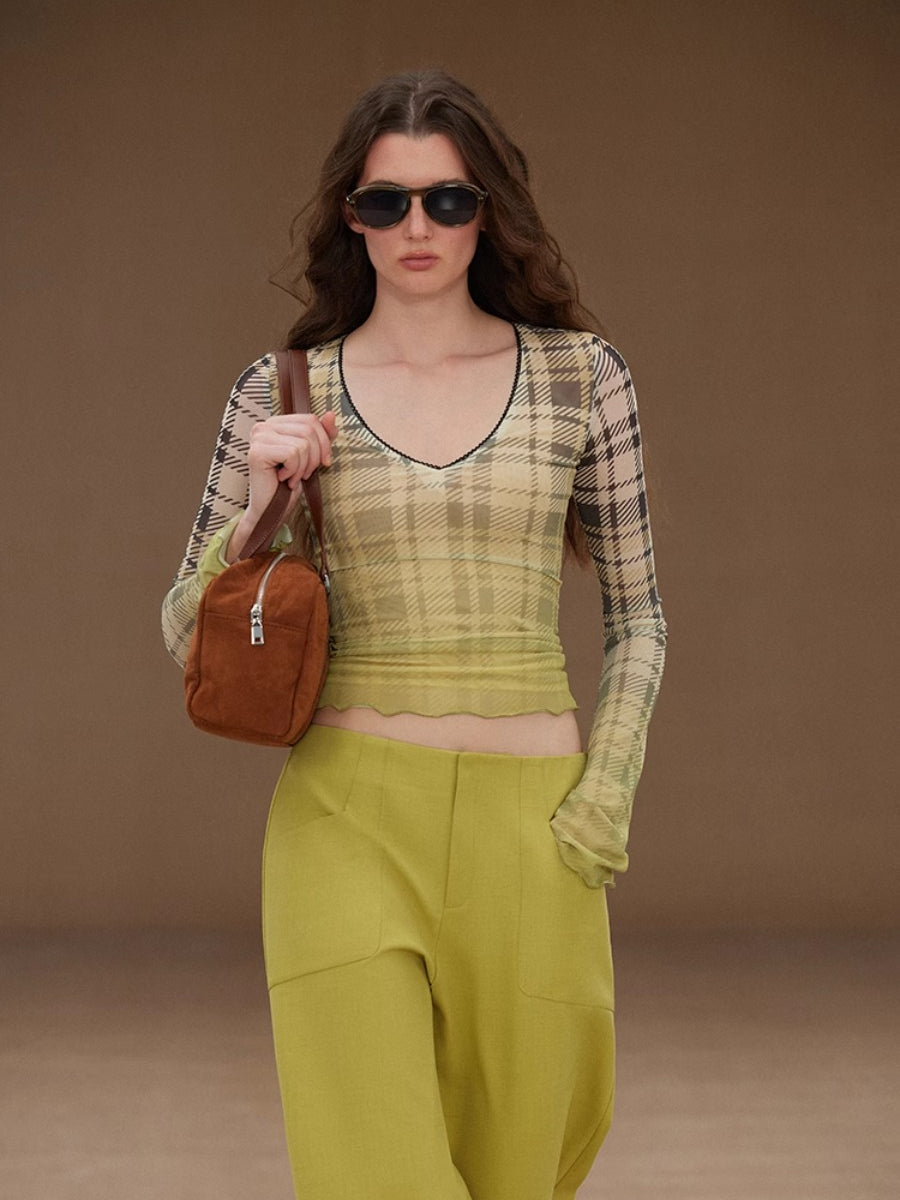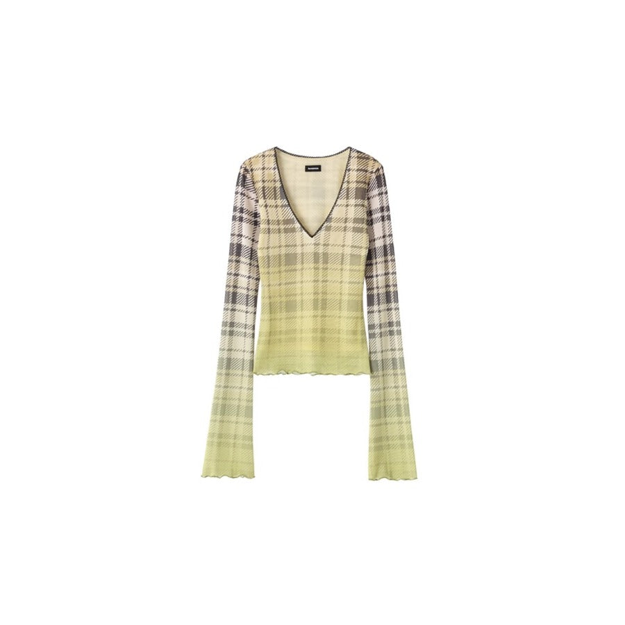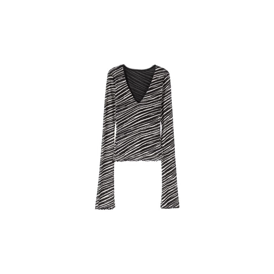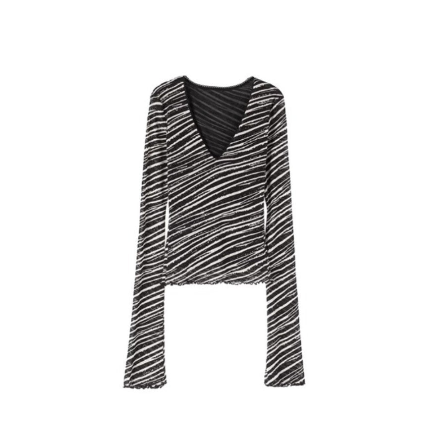 Slim Mesh V Neck Long Sleeve Tee