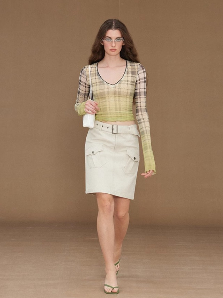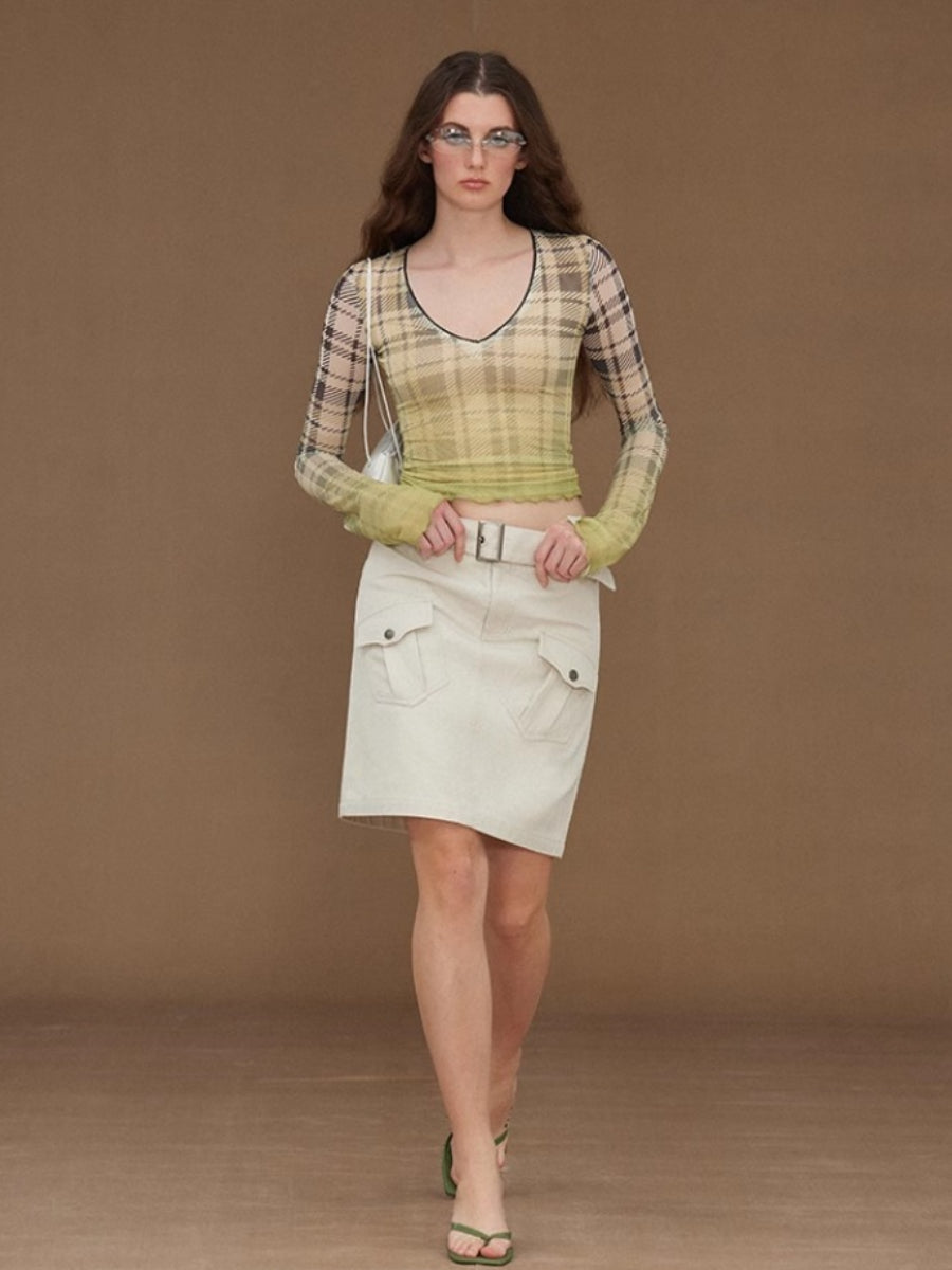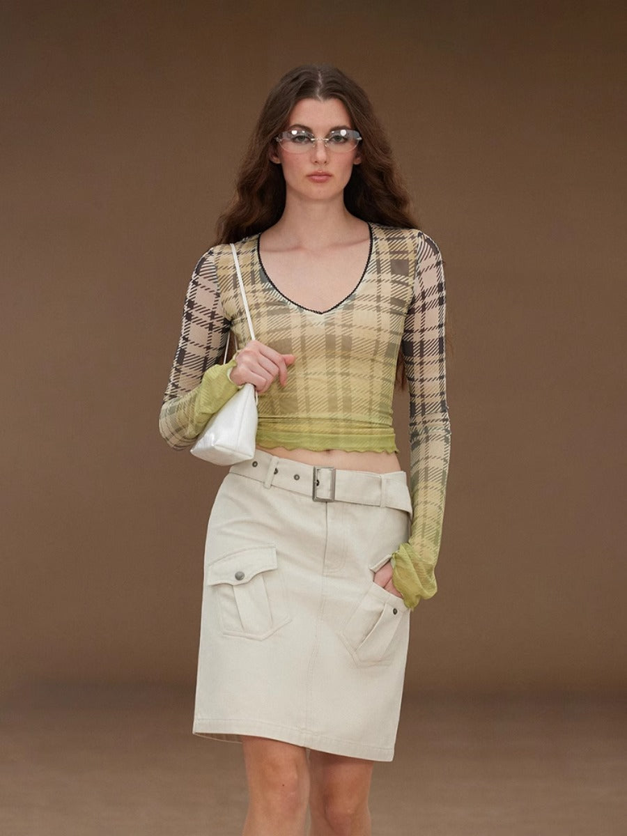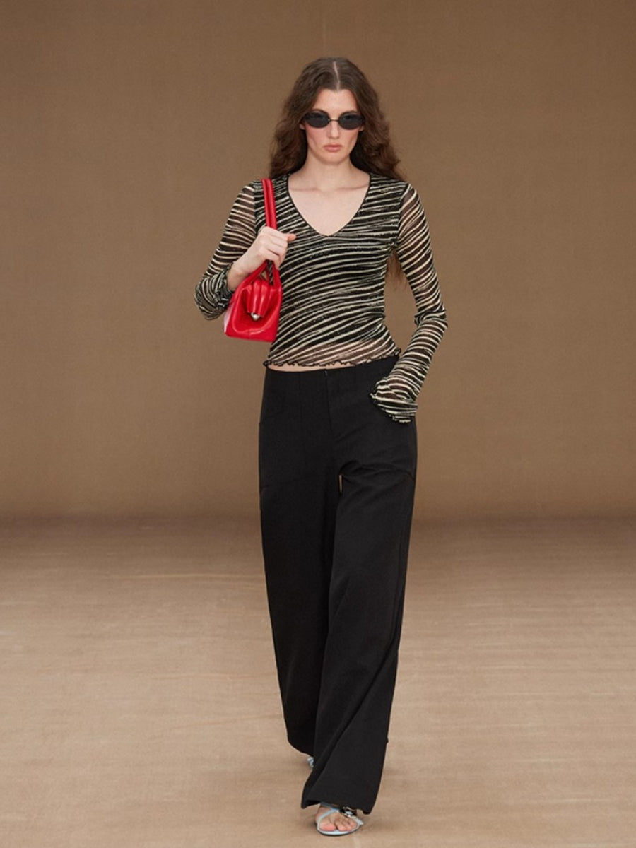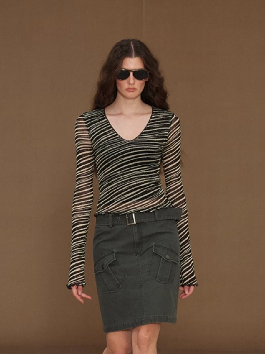 Slim Mesh V Neck Long Sleeve Tee