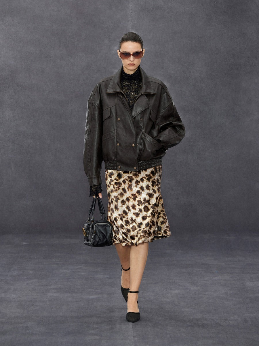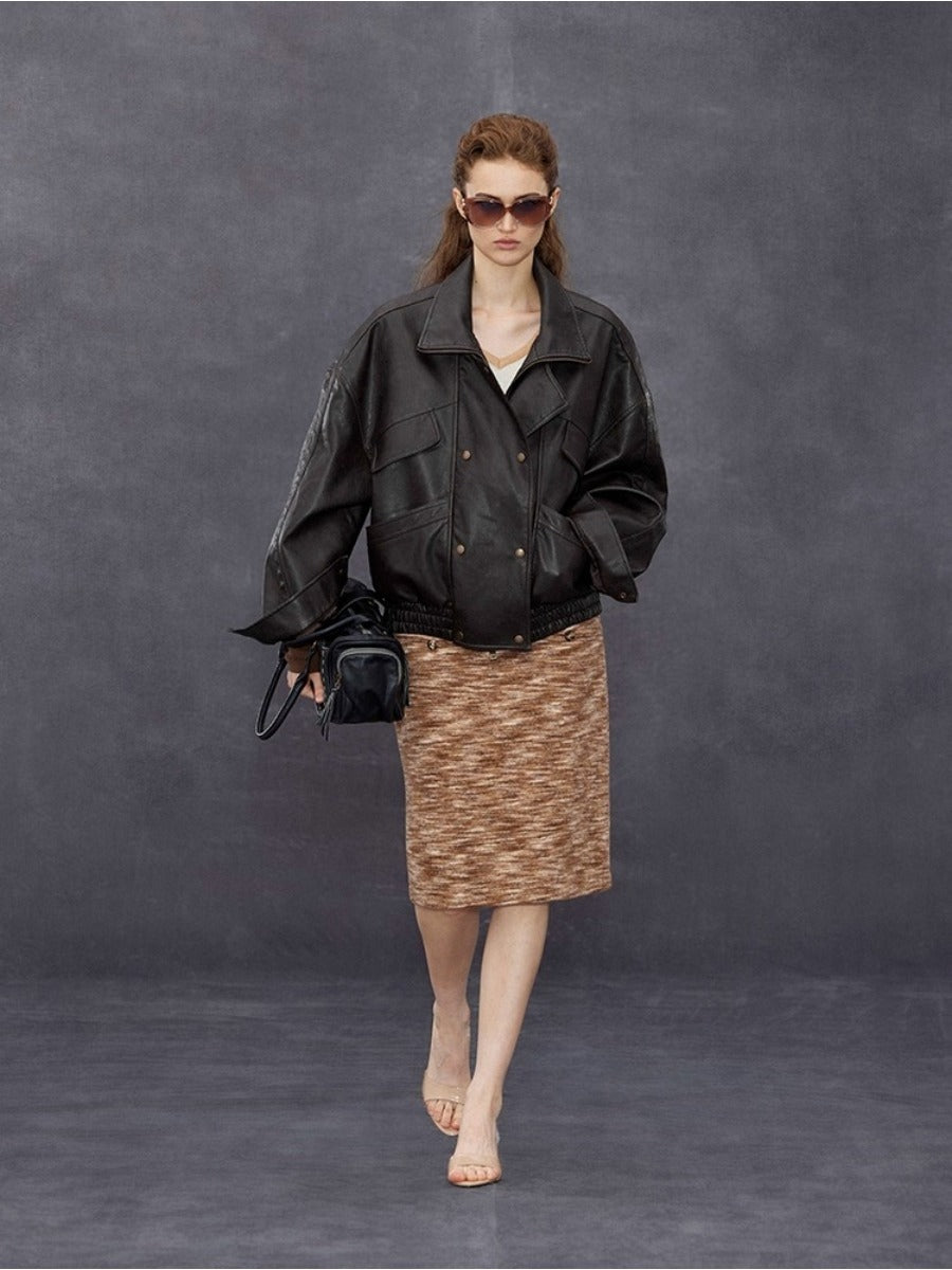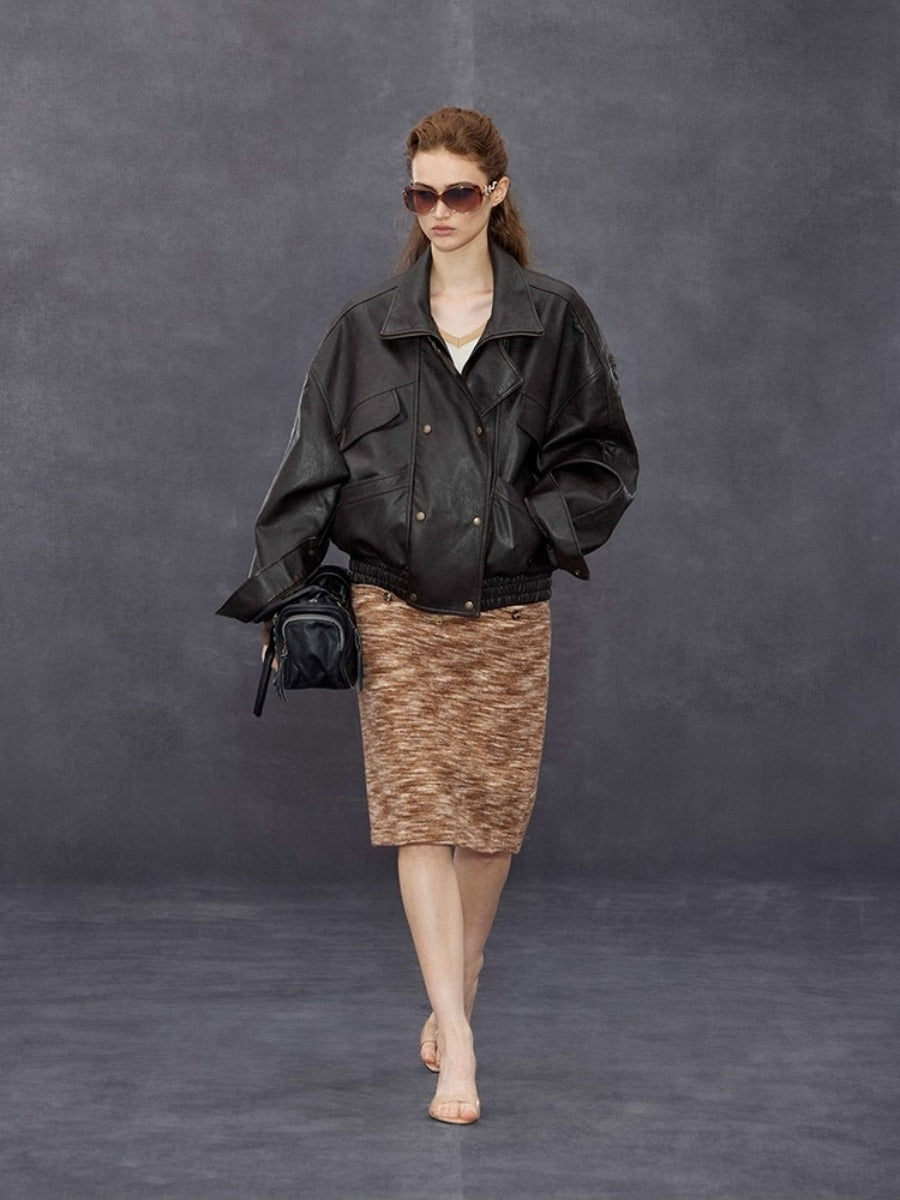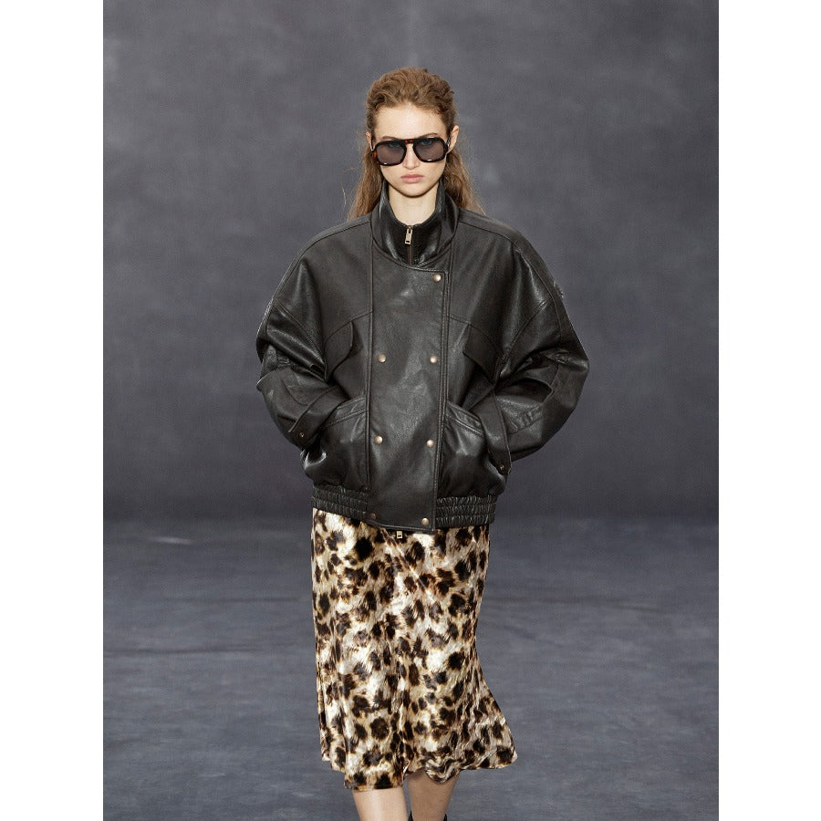 Stand-collar Double-breasted Leather Jacket