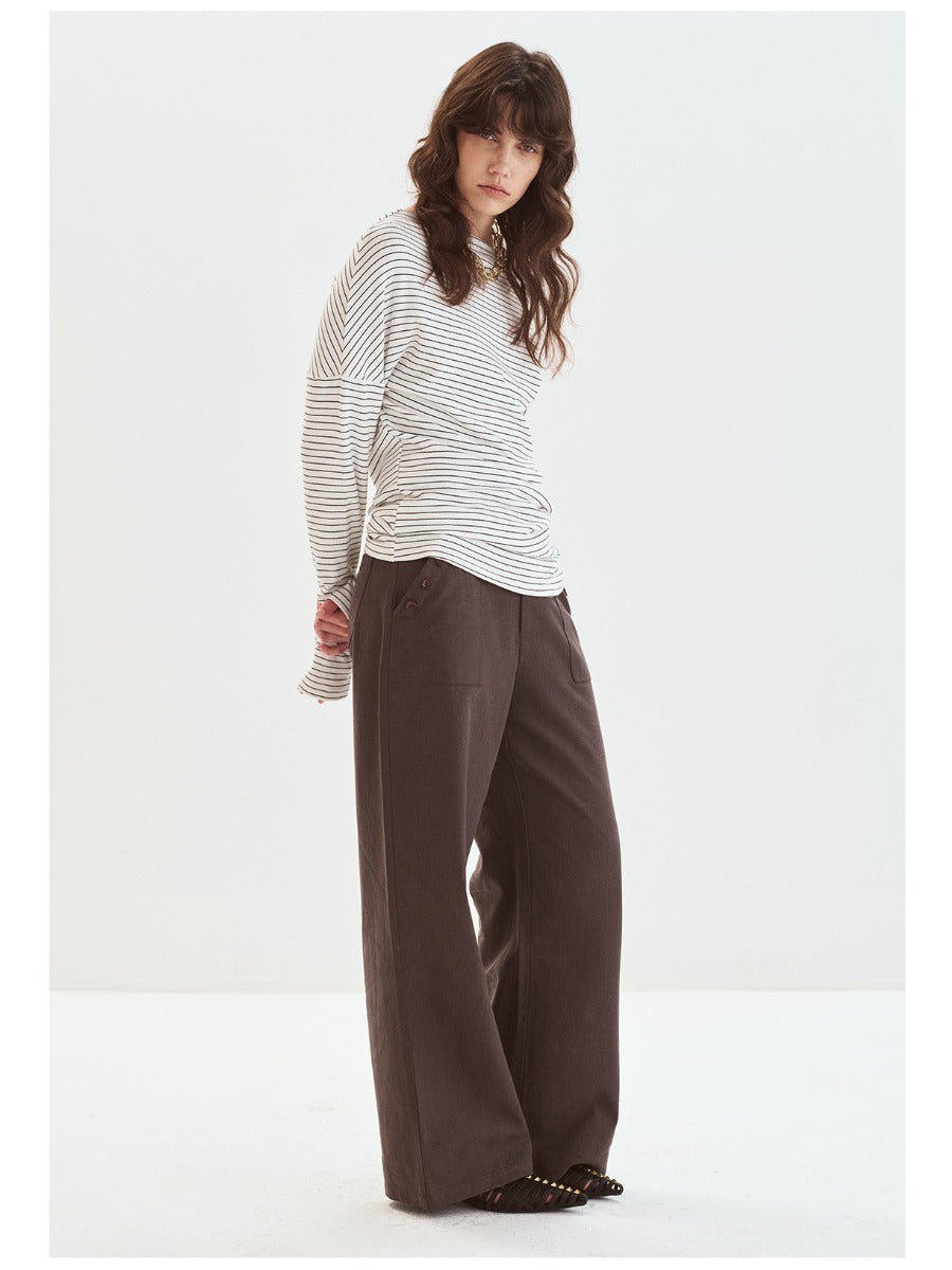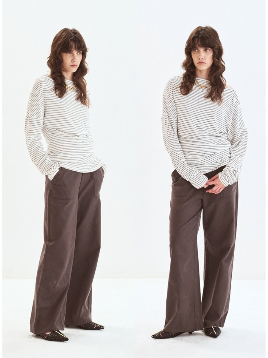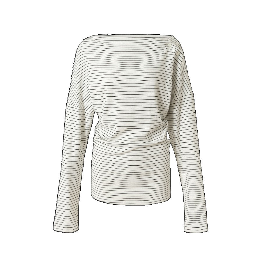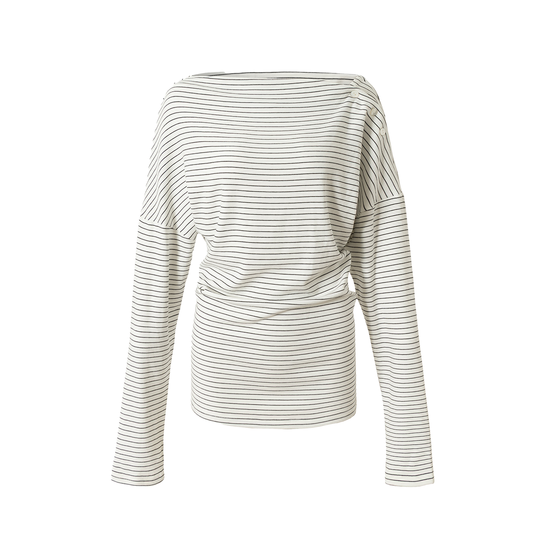 Striped Off Shoulder Shell Button Knit Top「NEW」