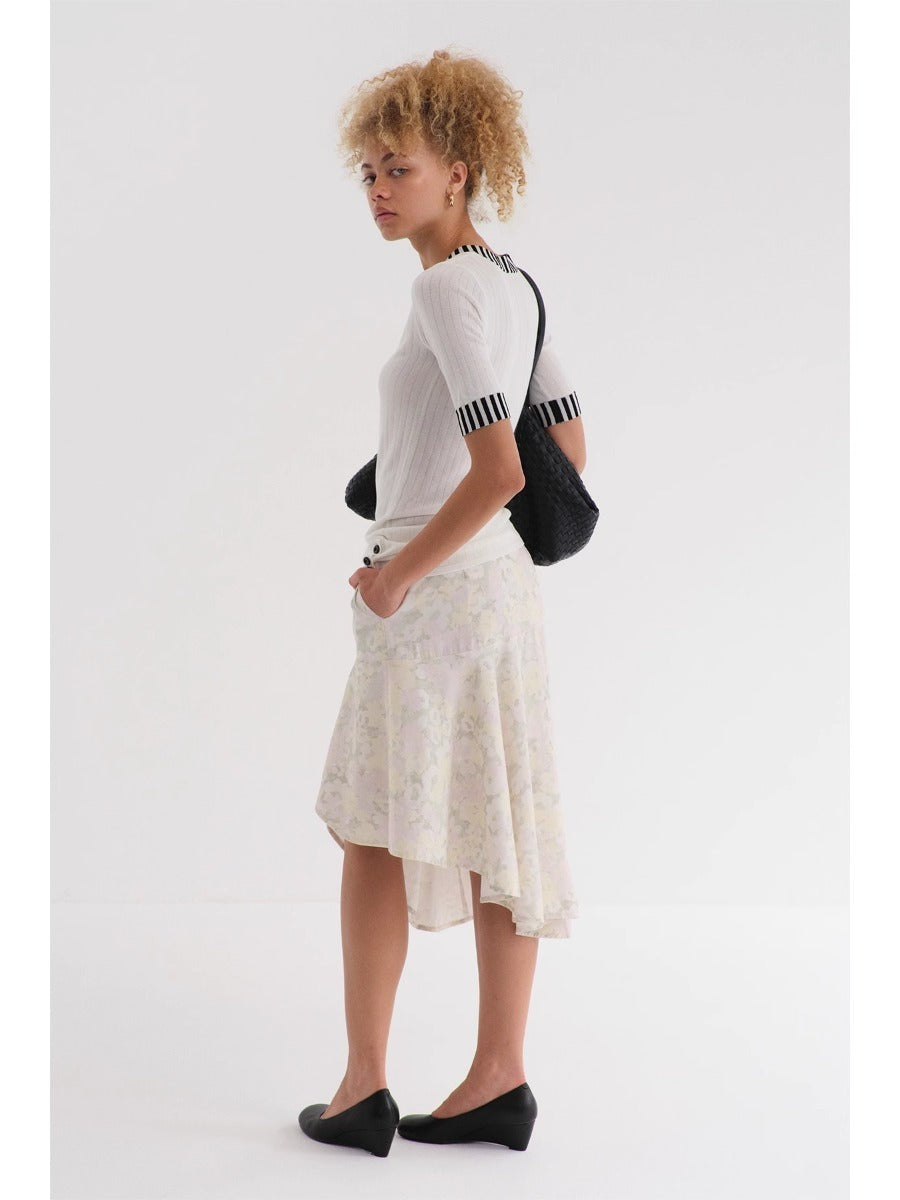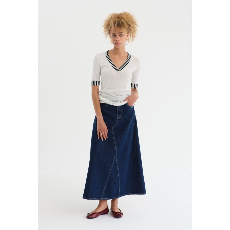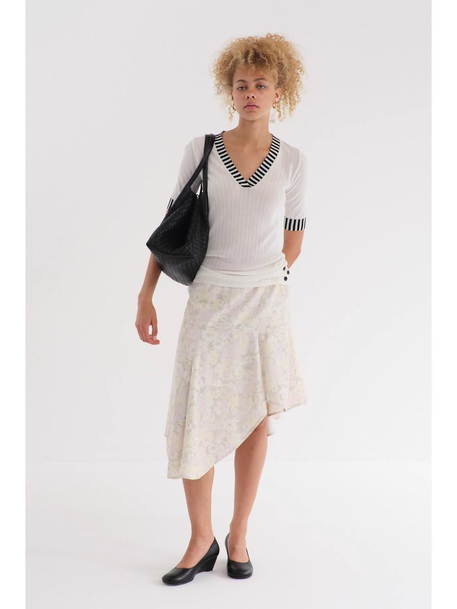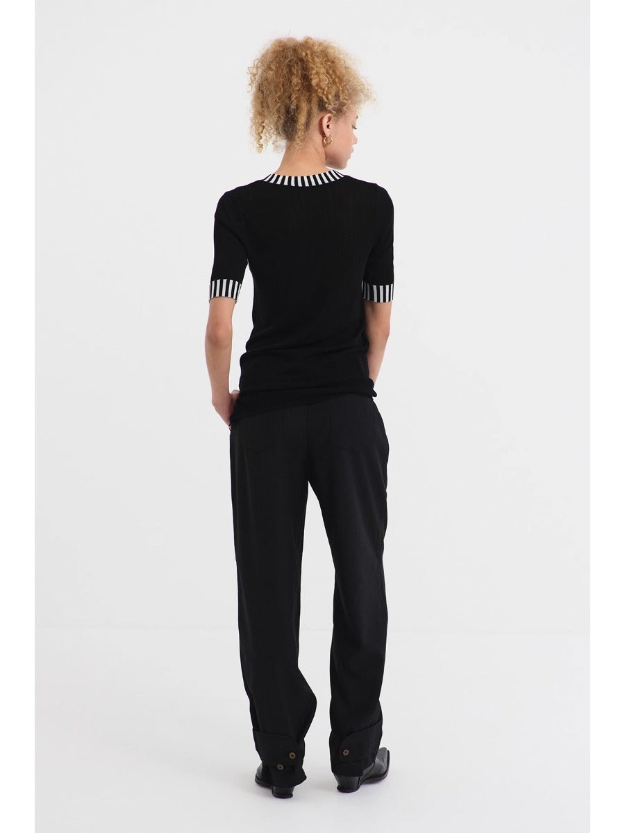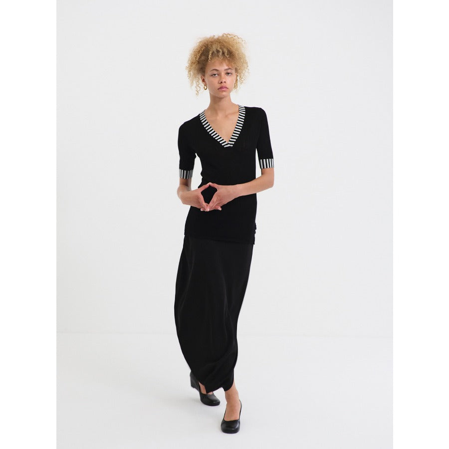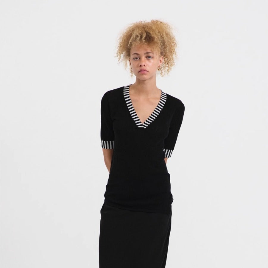 Striped V-neck Short-sleeved Side-opening Knitwear