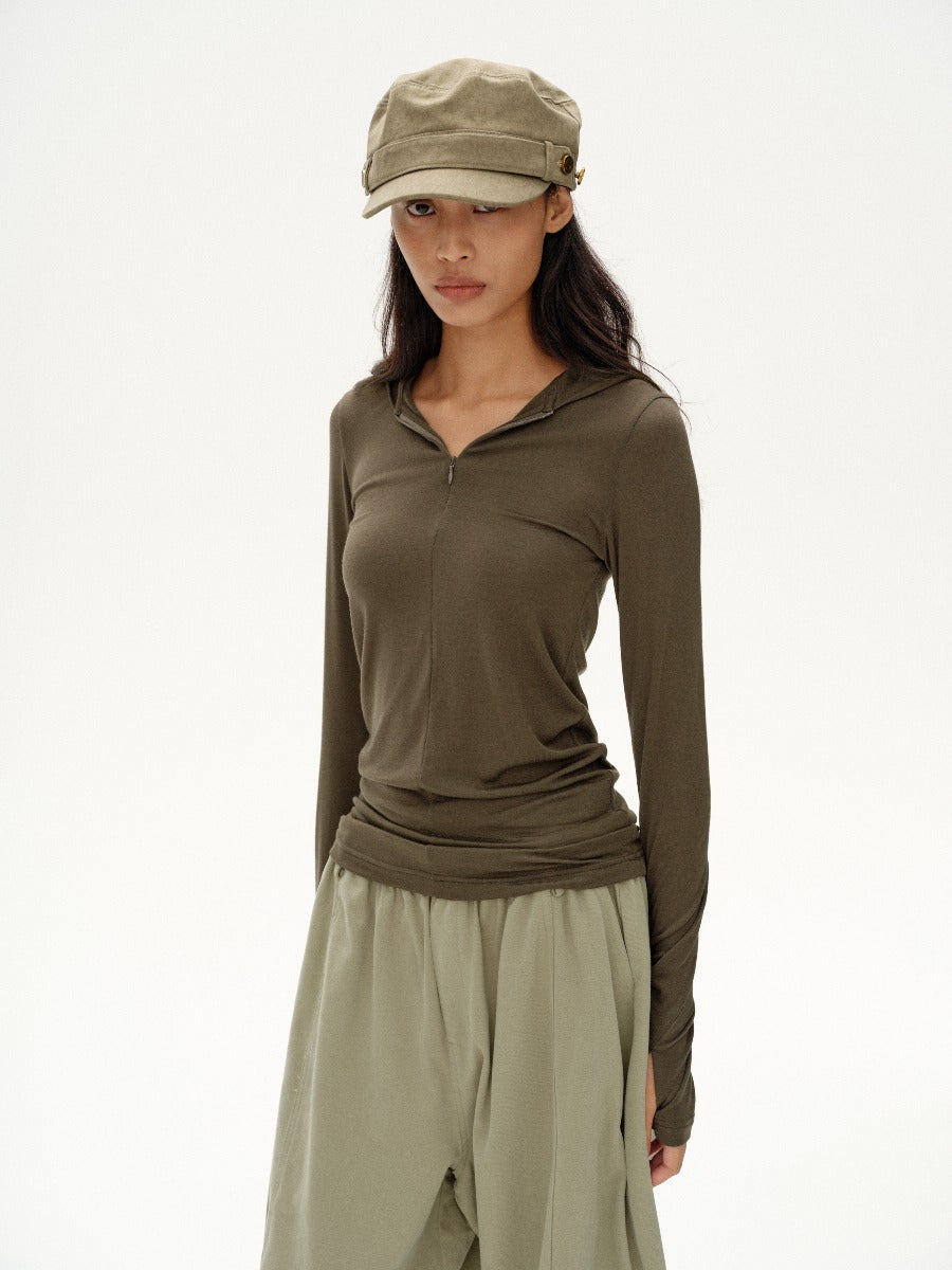 Tencel Wool Zip Up Hooded Knitwear「NEW」