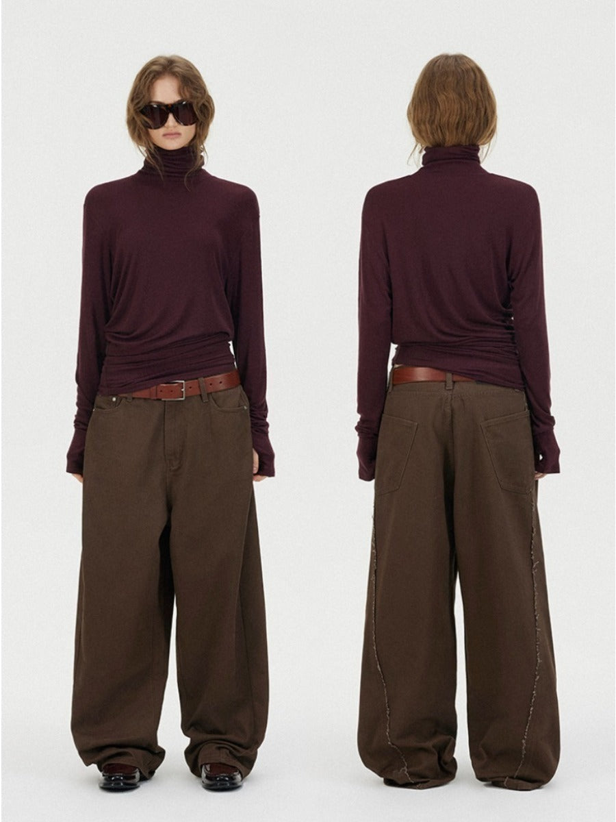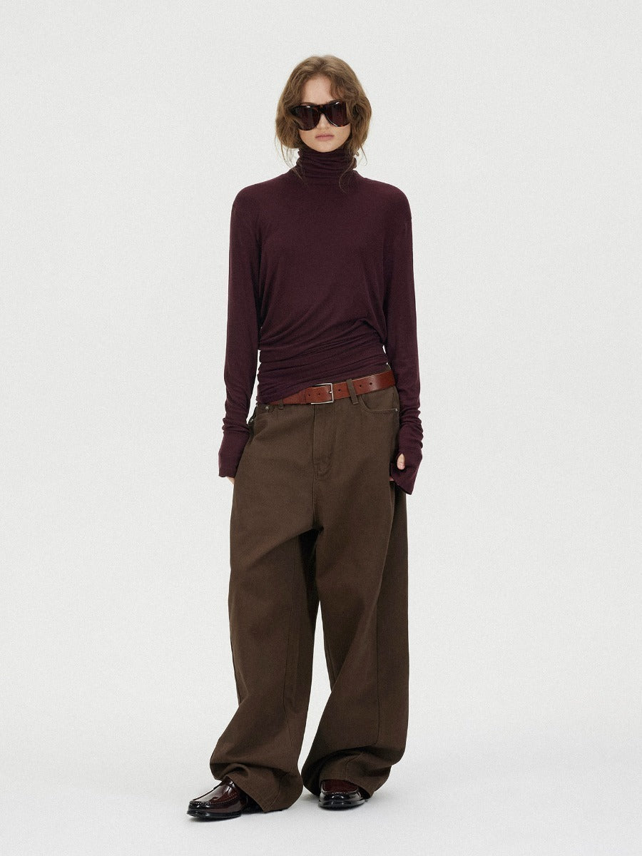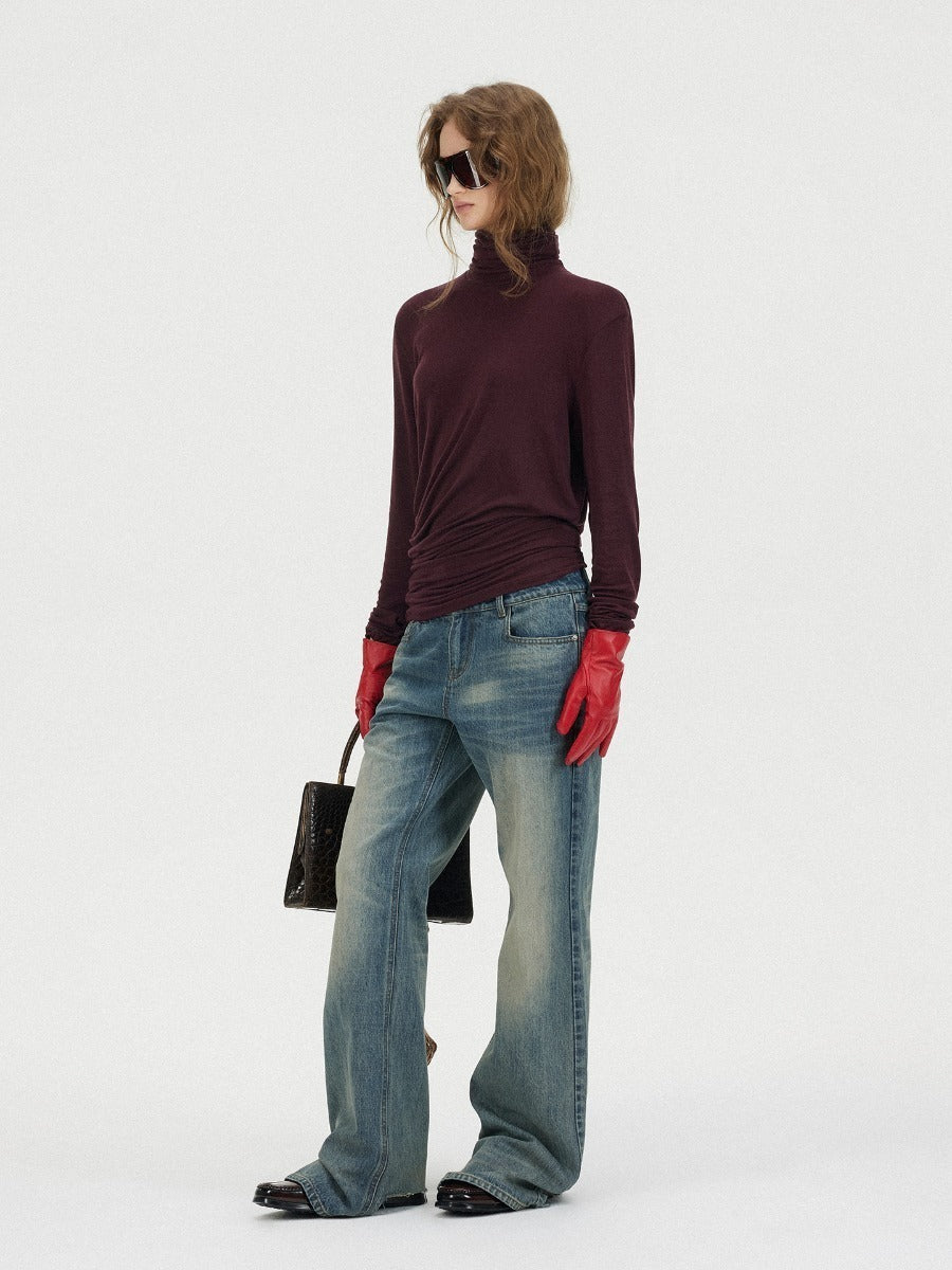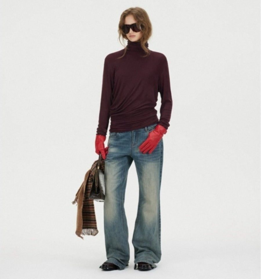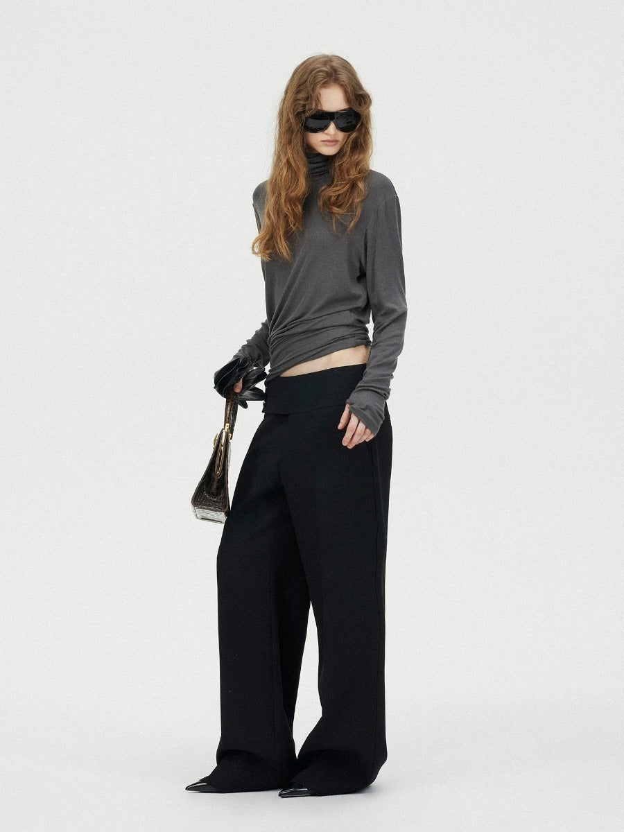 Turtleneck Layered Tencel Wool Knitted Top「NEW」