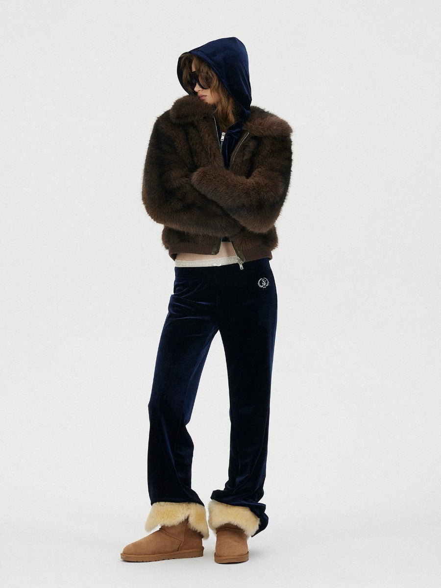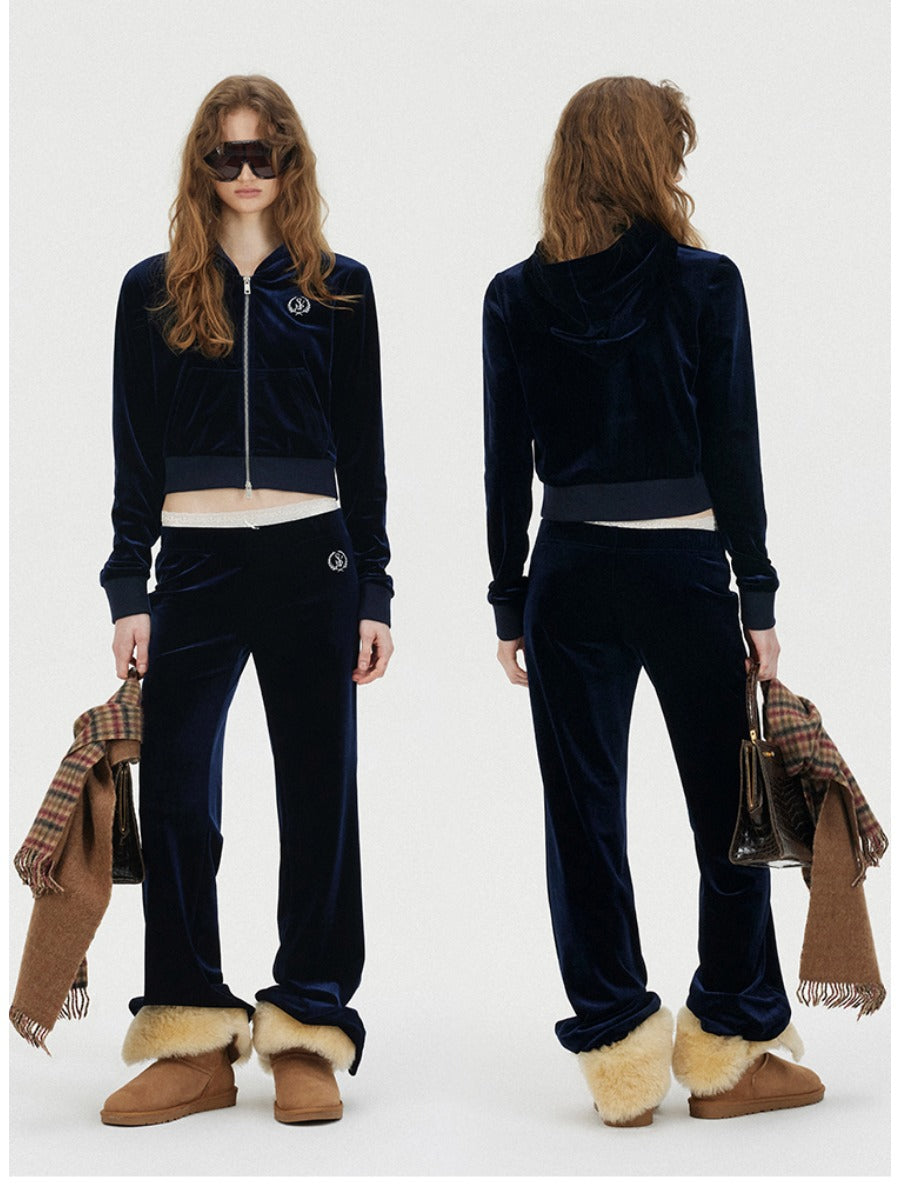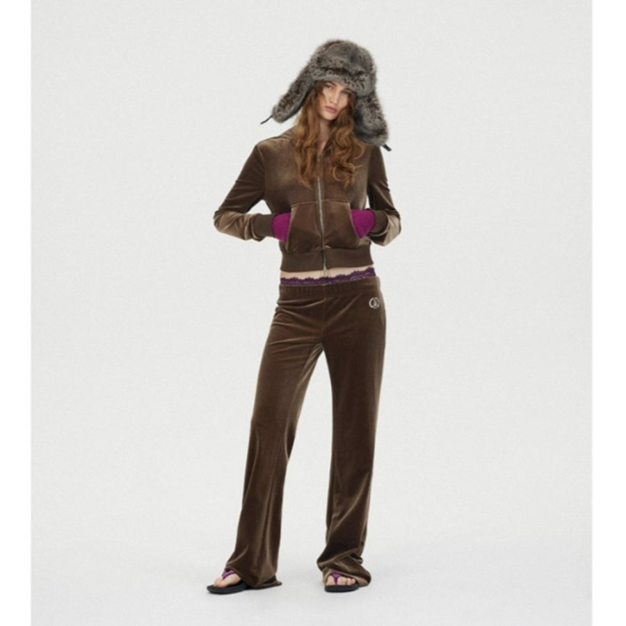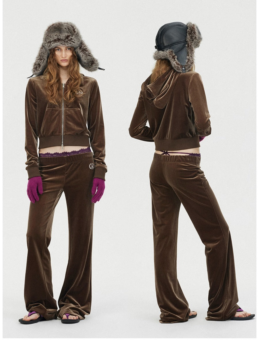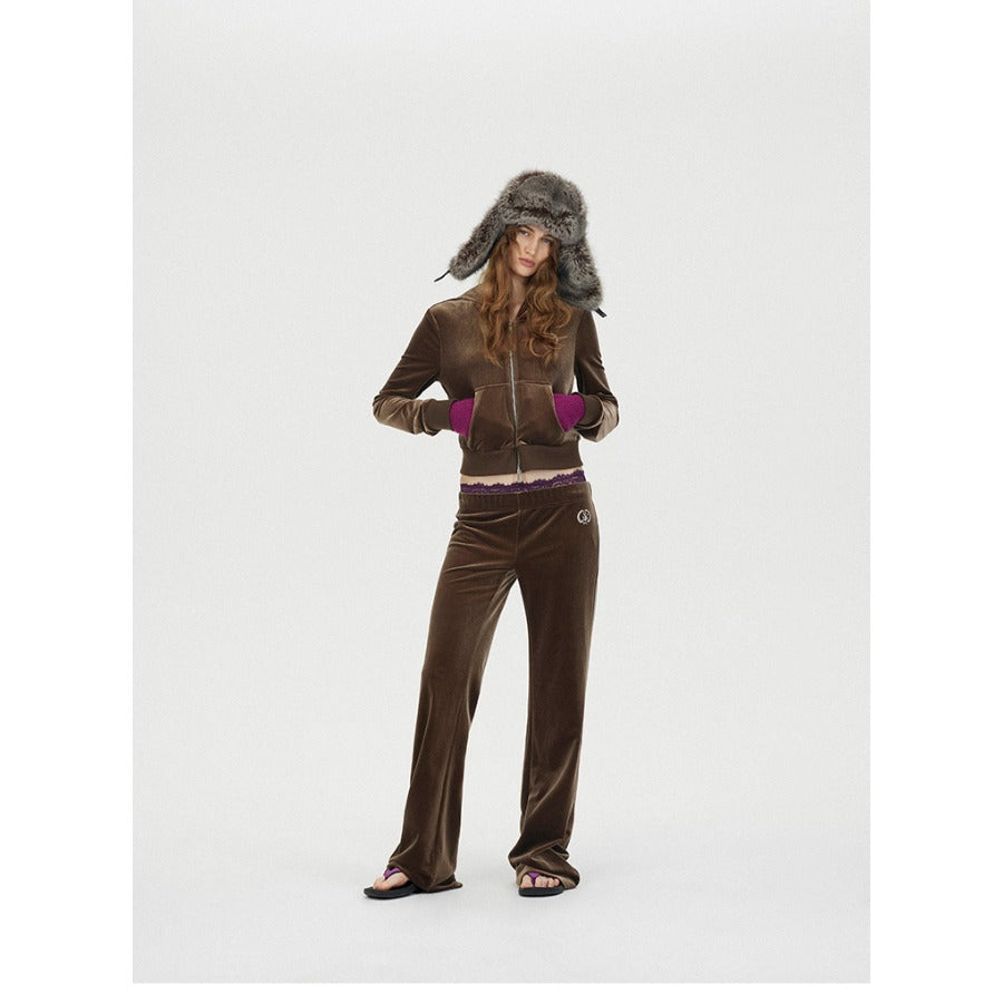 Velvet Embroidered Flared Low-Rise Pants「NEW」