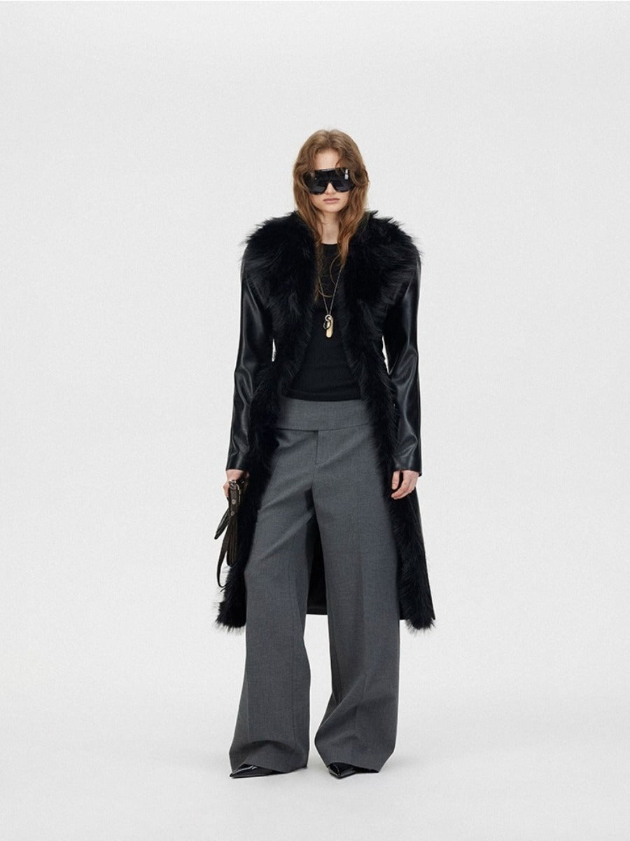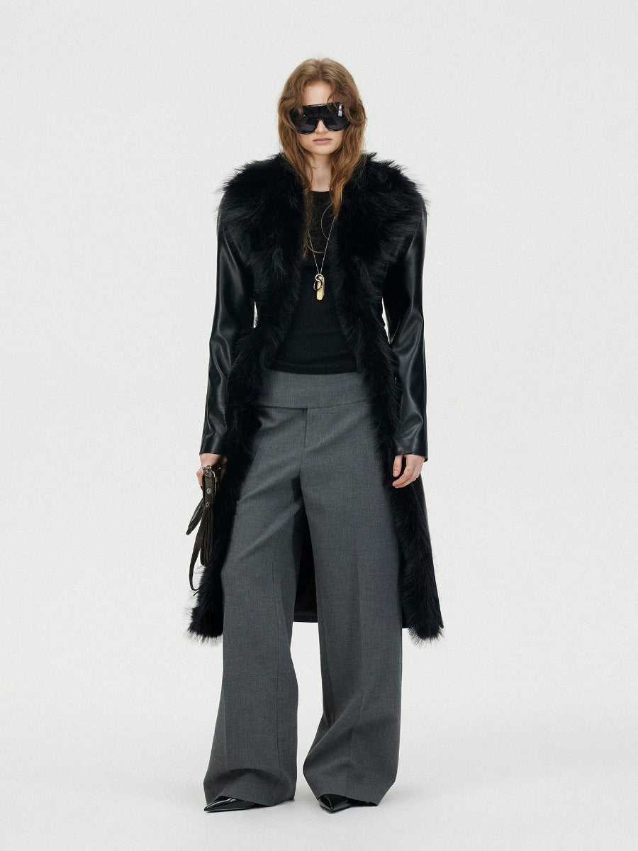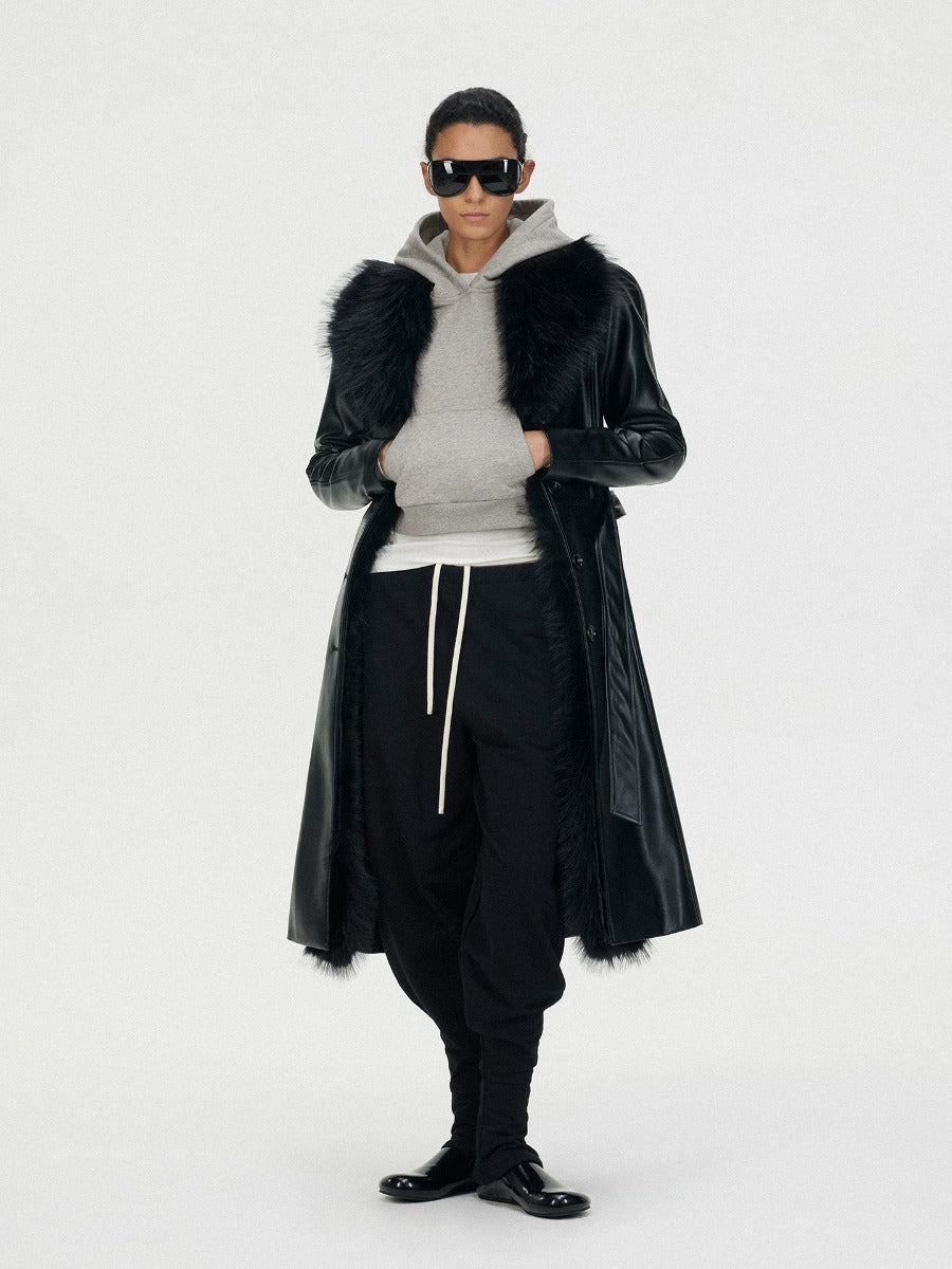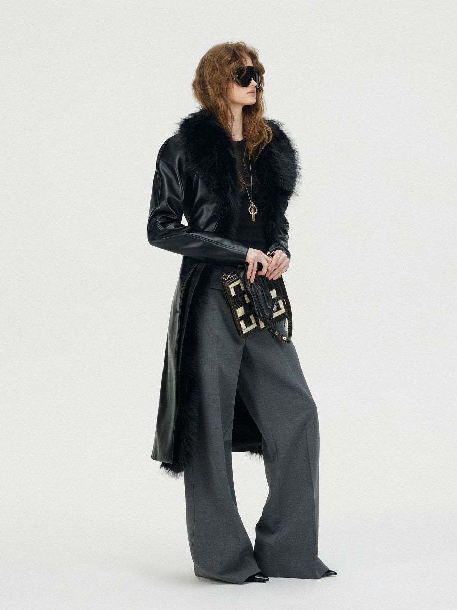Waisted Eco-friendly Leather Trench Coat with Detachable Fur Collar「NEW」