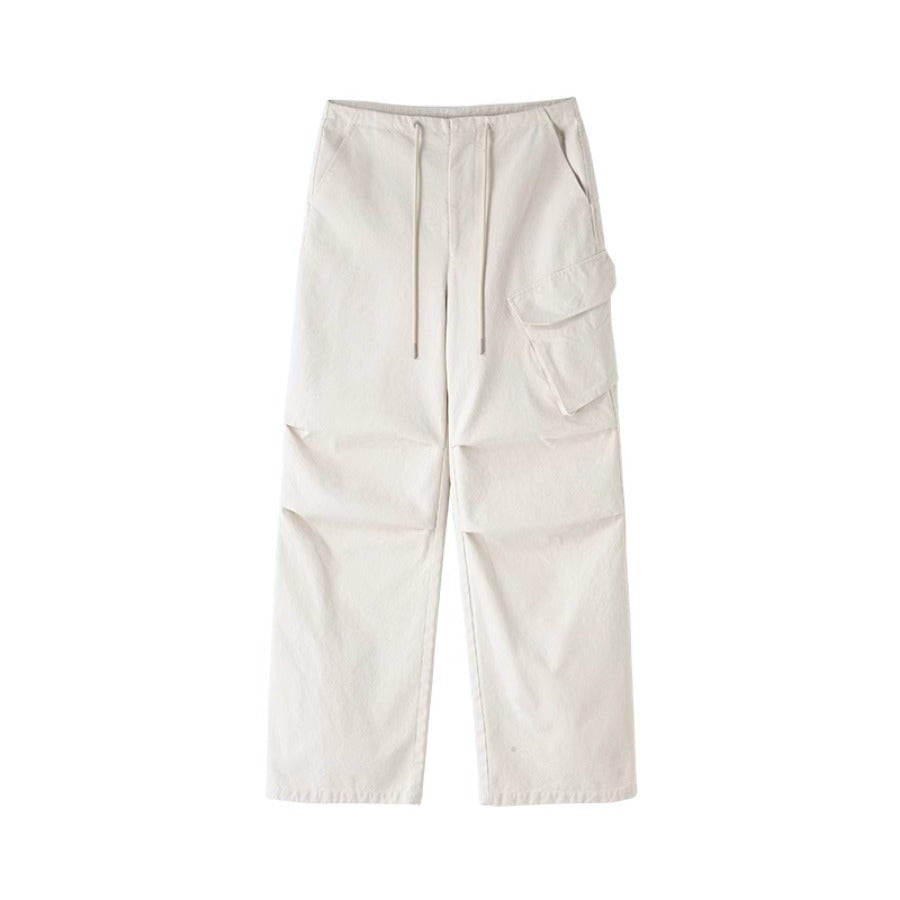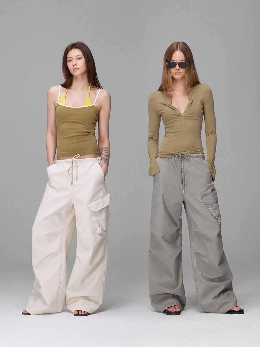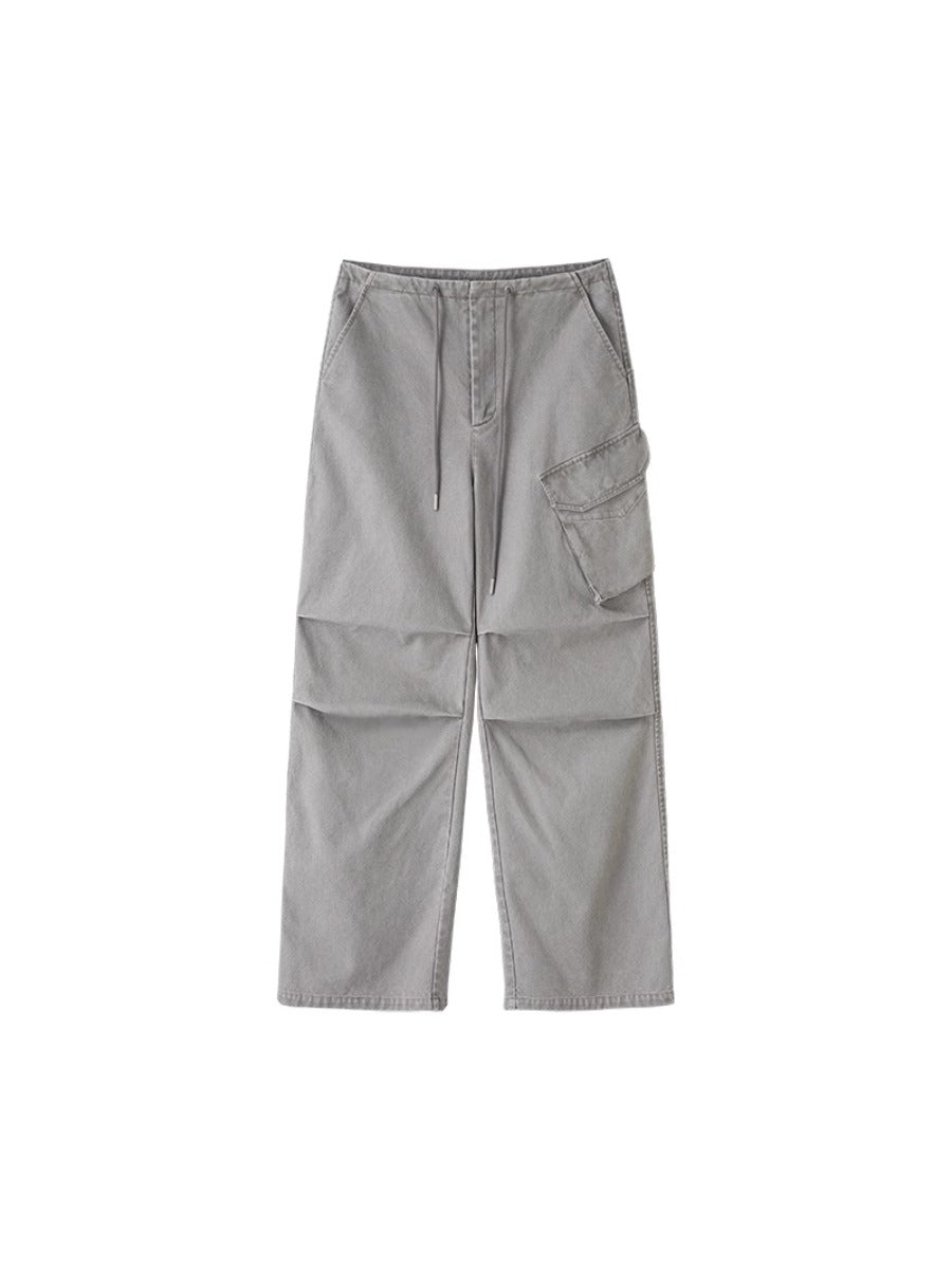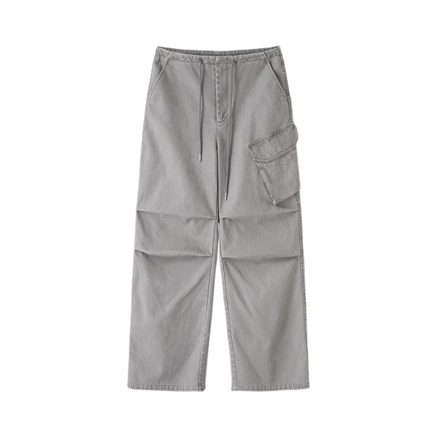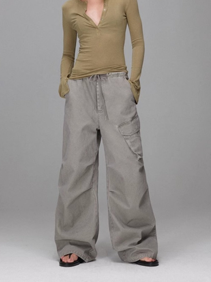 Washed Drawstring Loose Mid Rise Straight Leg Cargo Pants