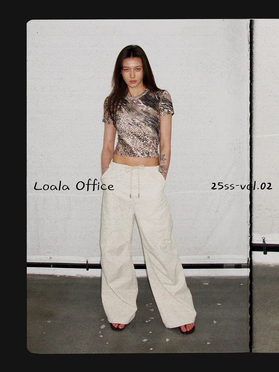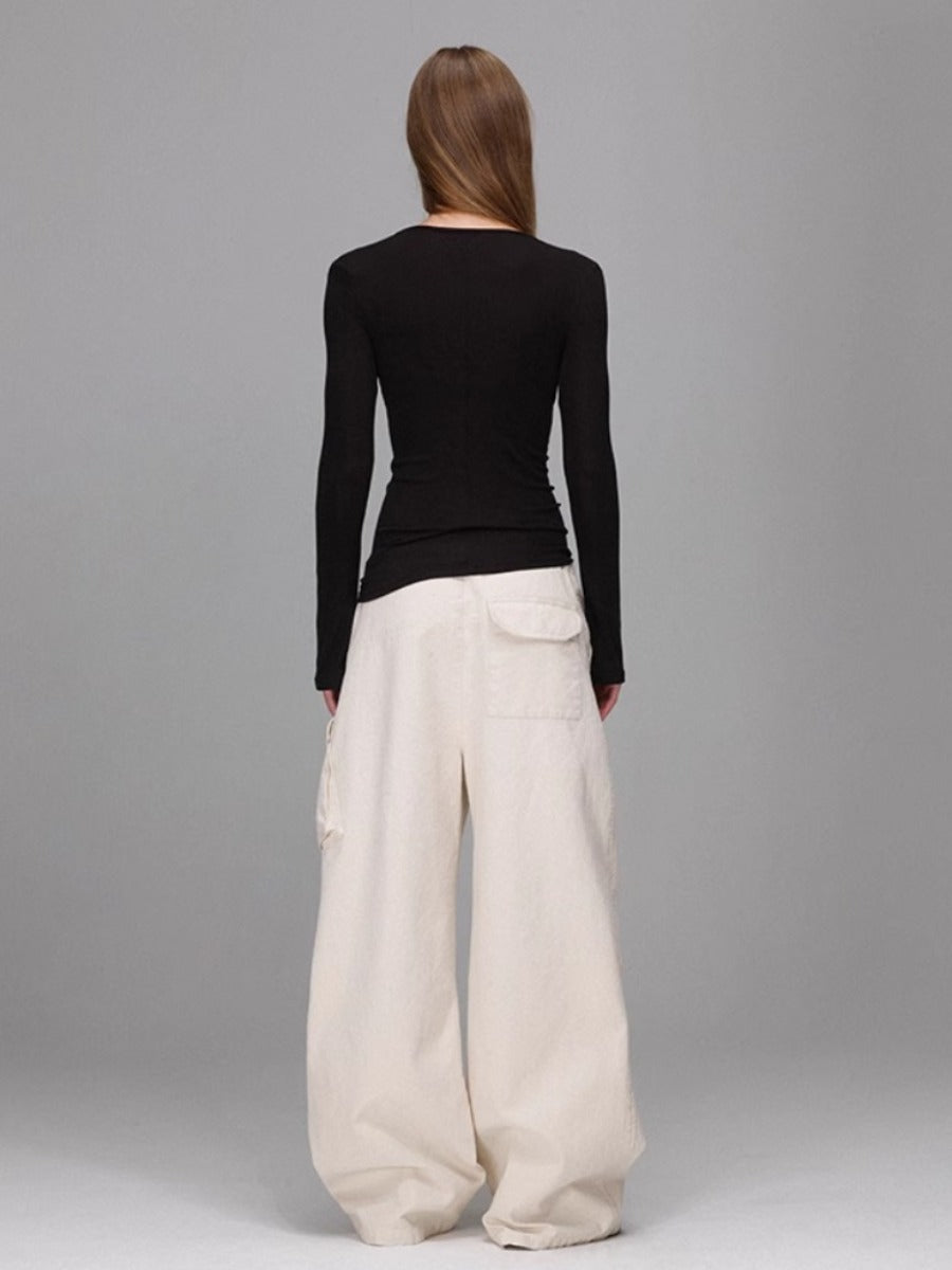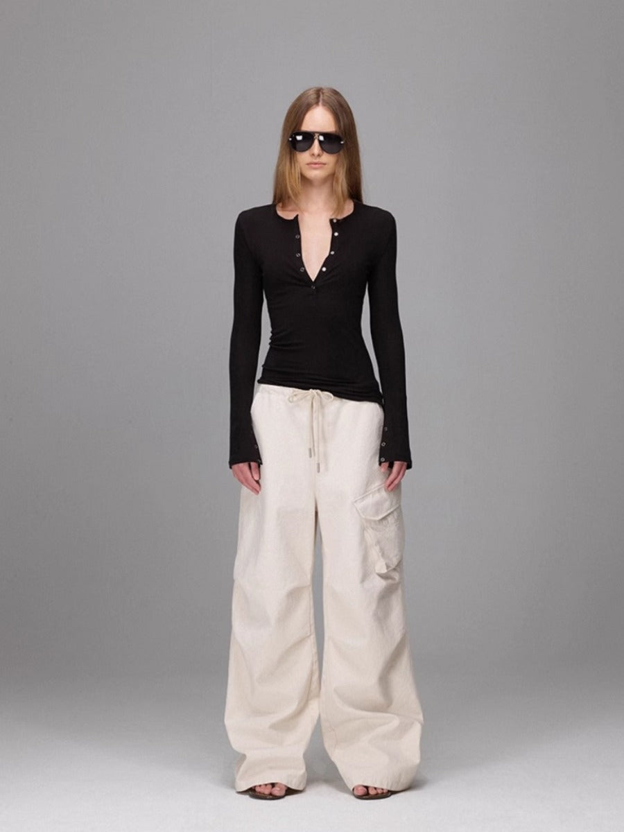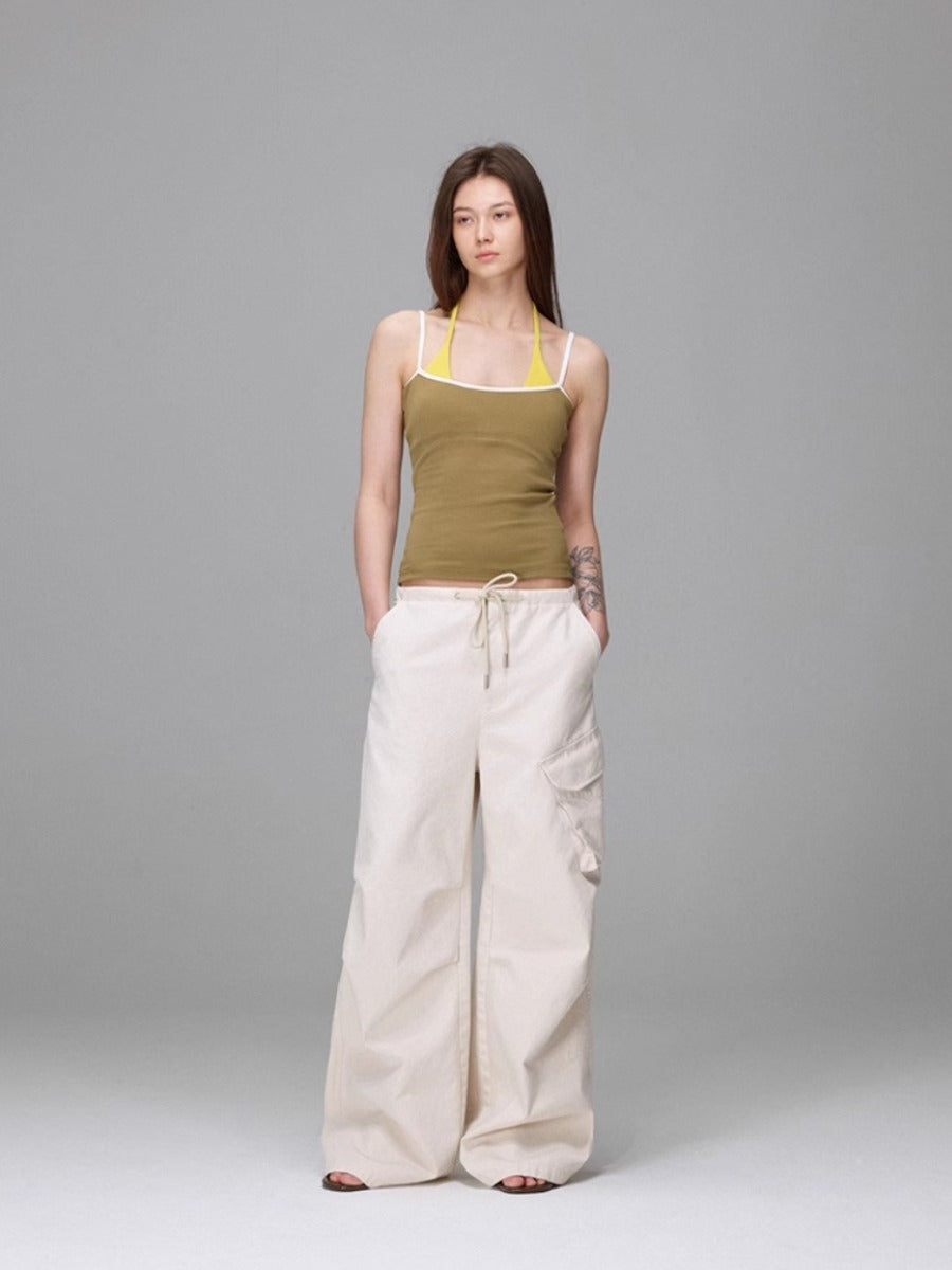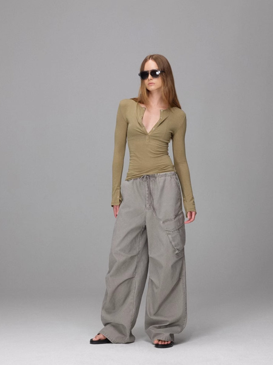 Washed Drawstring Loose Mid Rise Straight Leg Cargo Pants