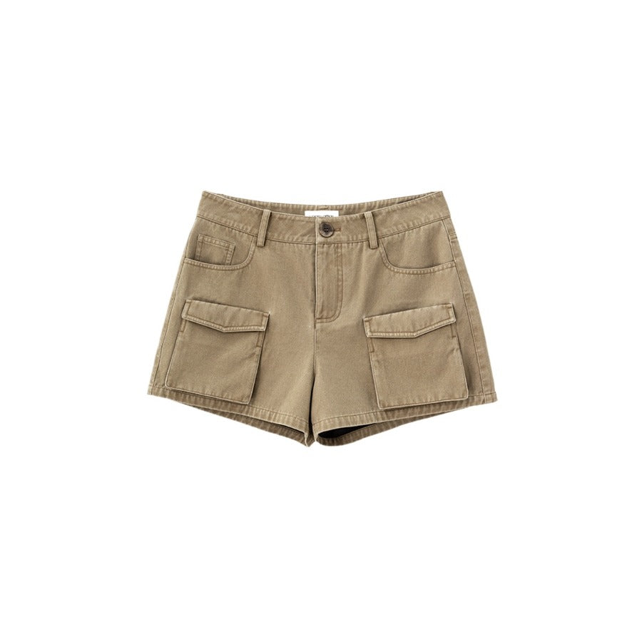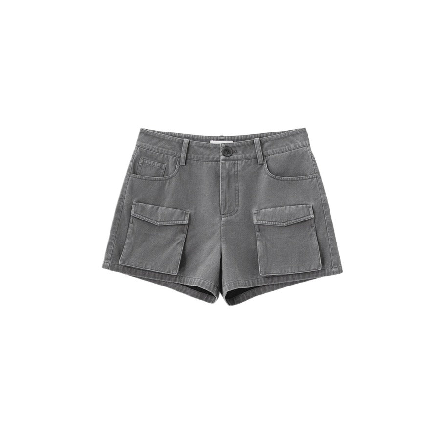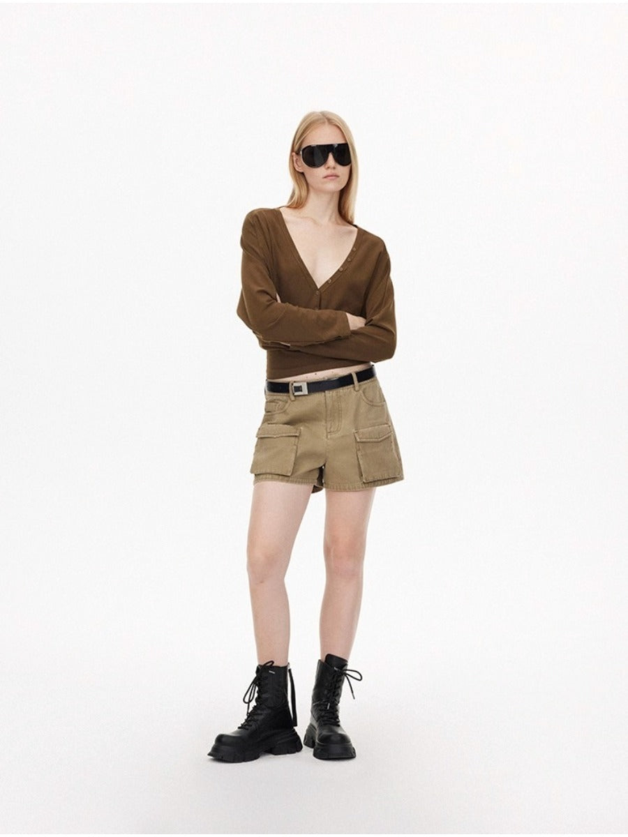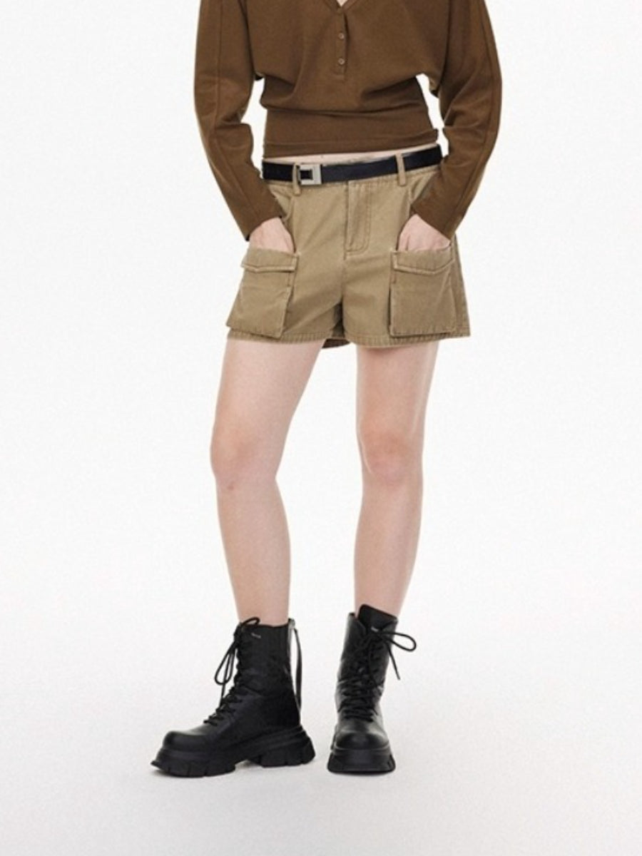 Washed Effect Multi Pocket Cargo Shorts
