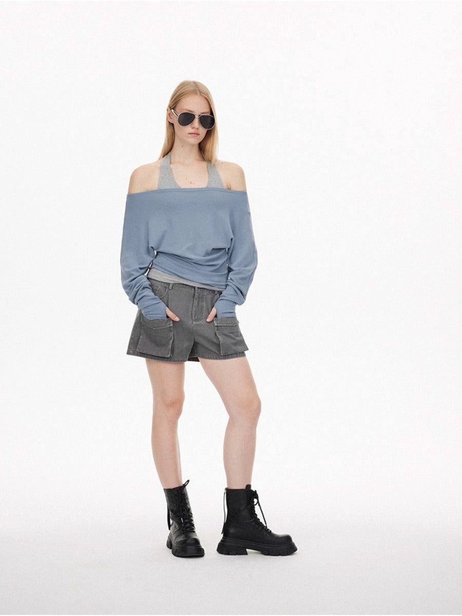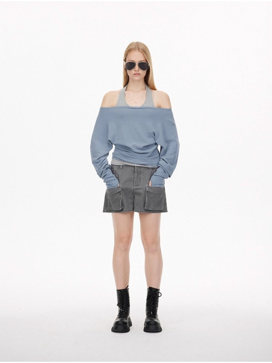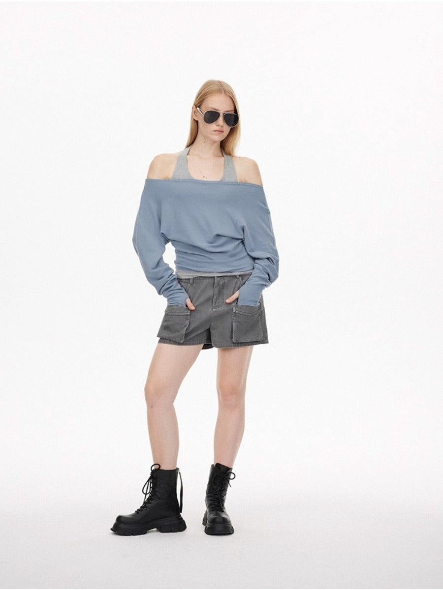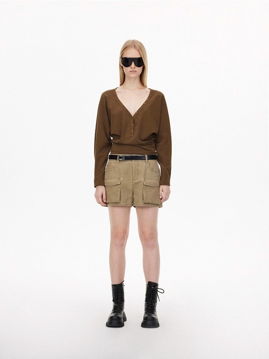 Washed Effect Multi Pocket Cargo Shorts
