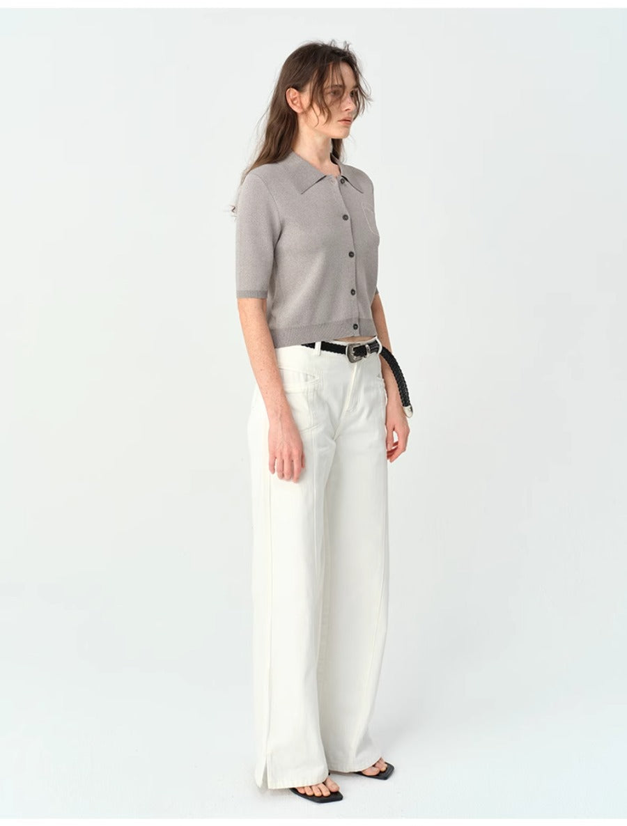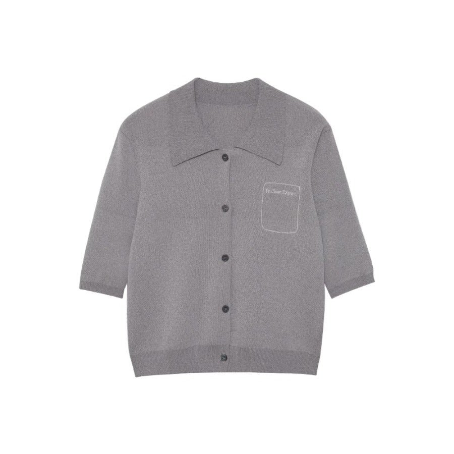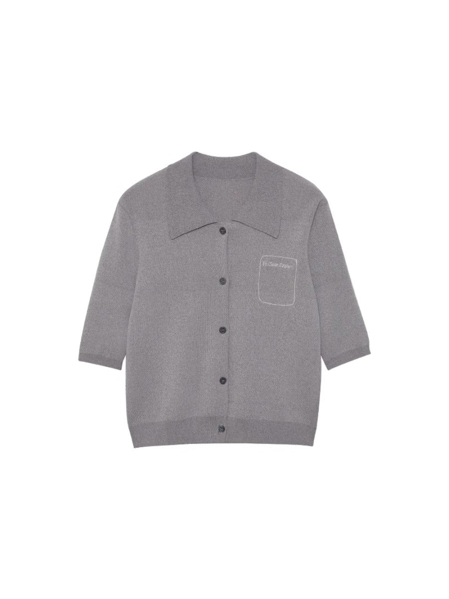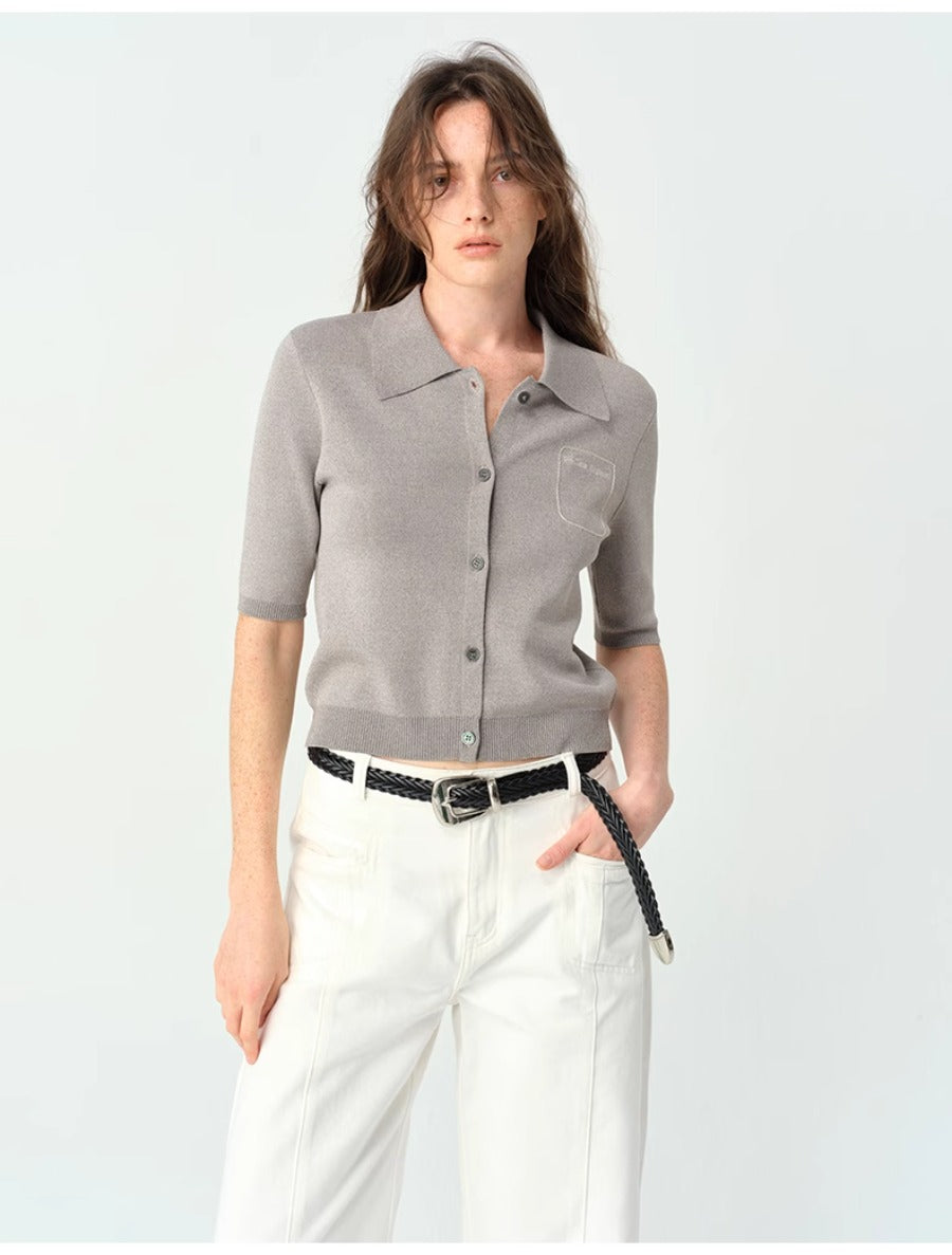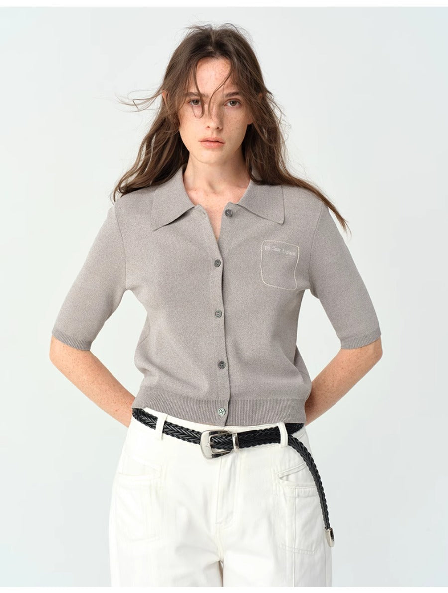 Grey Short-sleeve Knitted POLO Shirt